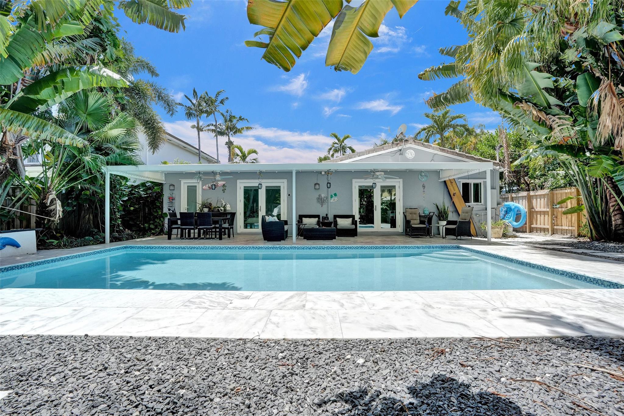 Welcome to your Florida Keys resort-style backyard oasis right here in Ft Lauderdale in the desirable Poinsettia Heights neighborhood, just minutes from the beach, downtown, Las Olas, fine restaurants, shopping and entertainment. This gorgeous home features 3 bedrooms + Bonus room/office/den, 2 baths, 1 car garage, IMPACT WINDOWS & DOORS and a recently renovated fully fenced private backyard featuring NEW OVERSIZED POOL with NEW POOL HEATER, Italian Marble floors and sprawling 37-foot covered patio ideal for entertaining. Brand new waterproof laminate floors, wood-burning fireplace, elegant updated kitchen with tall maple wood cabinets, granite countertops and stainless steel appliances, family room, renovated master bathroom, closet cabinetry. AirBnb allowed. PVC Piping.