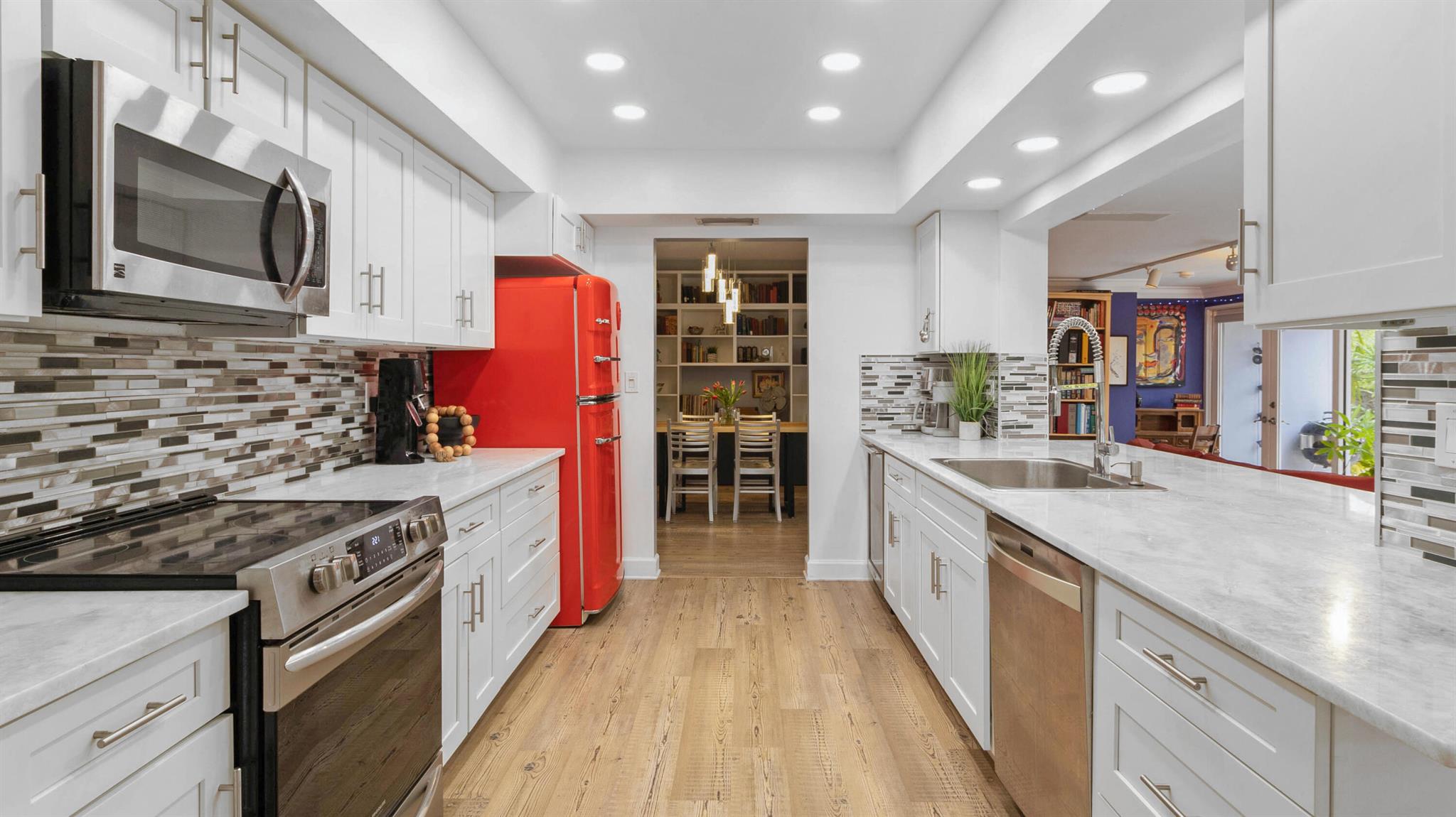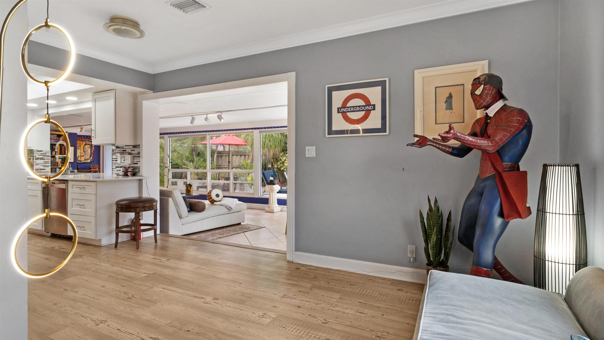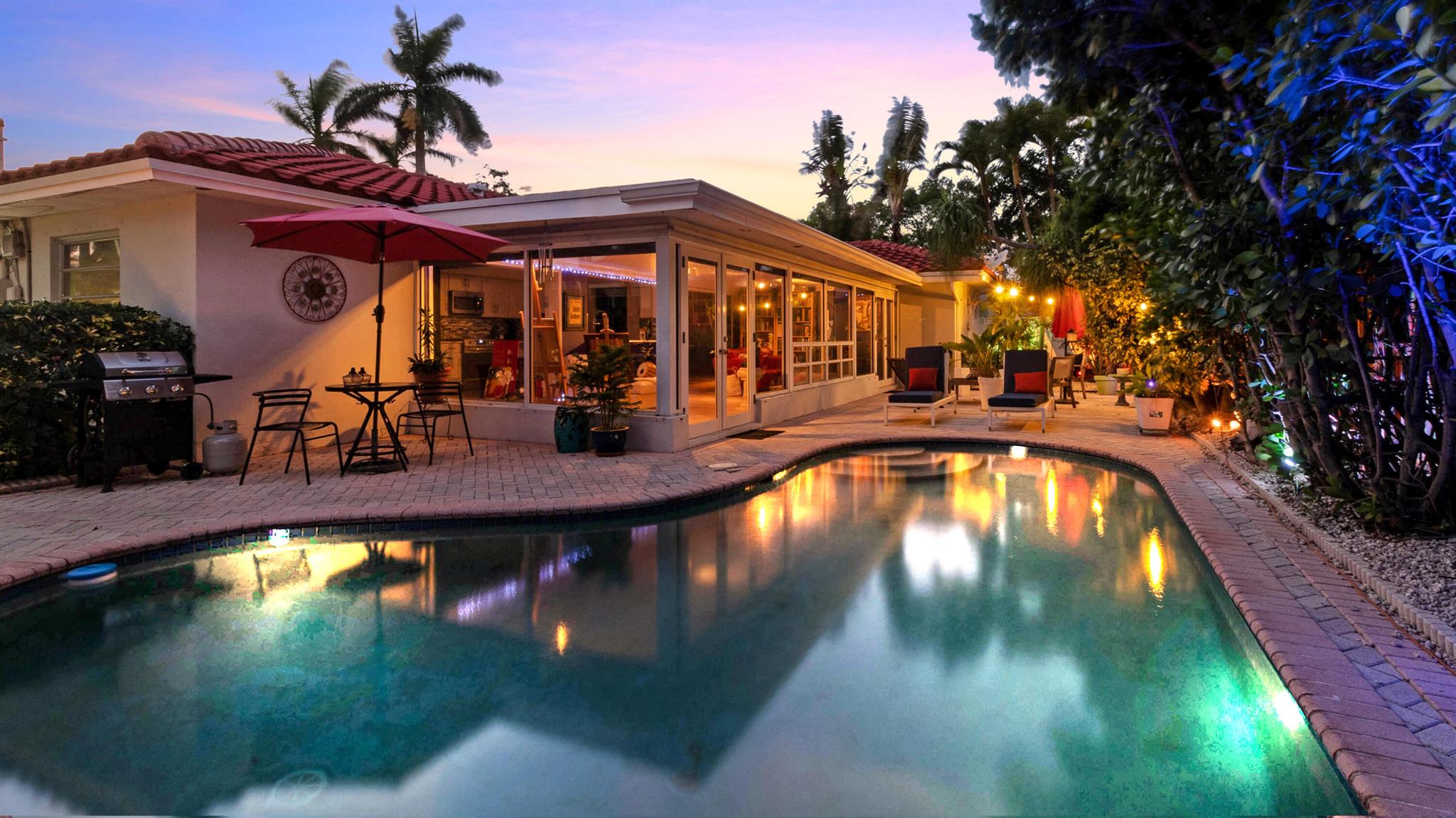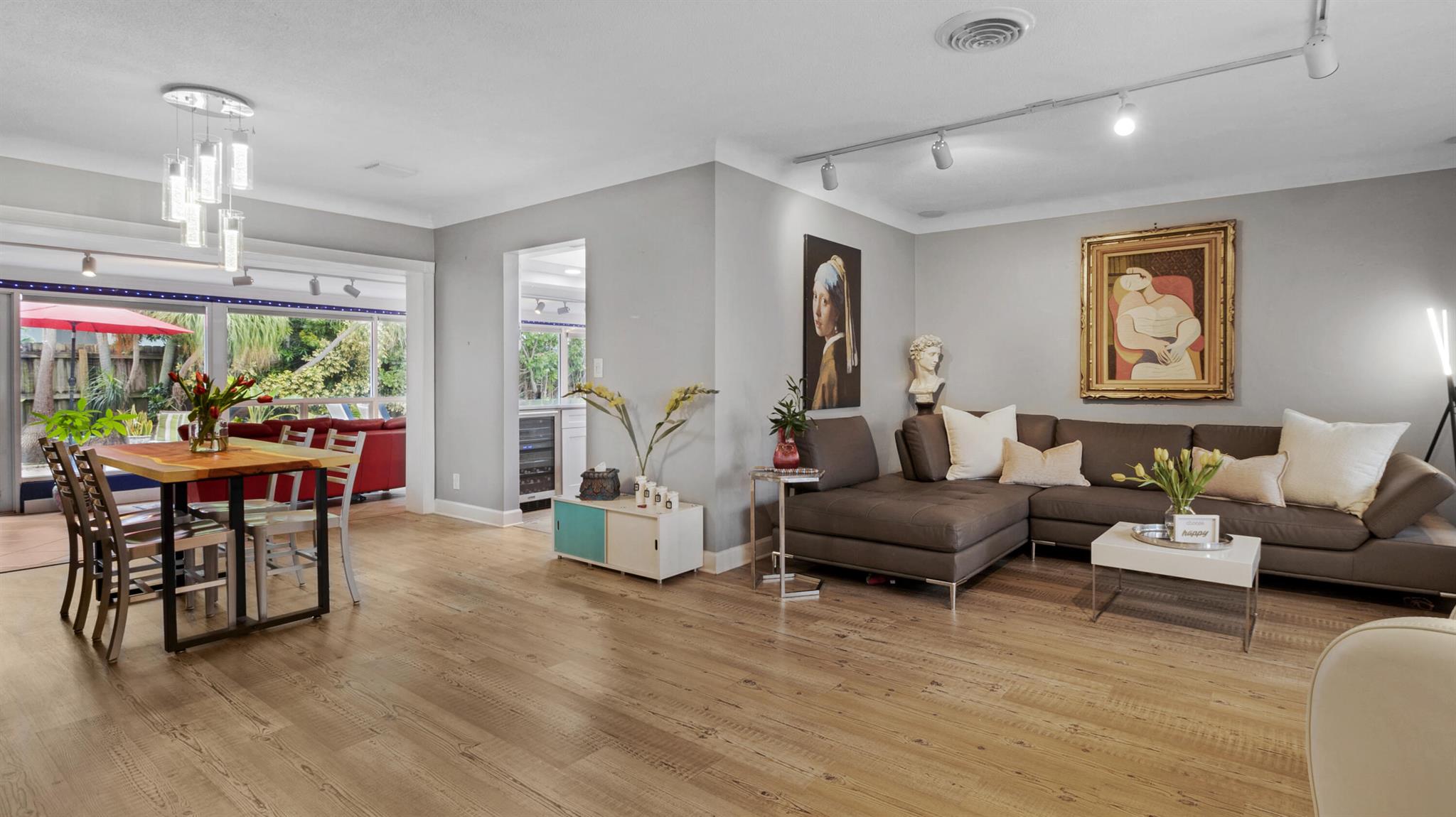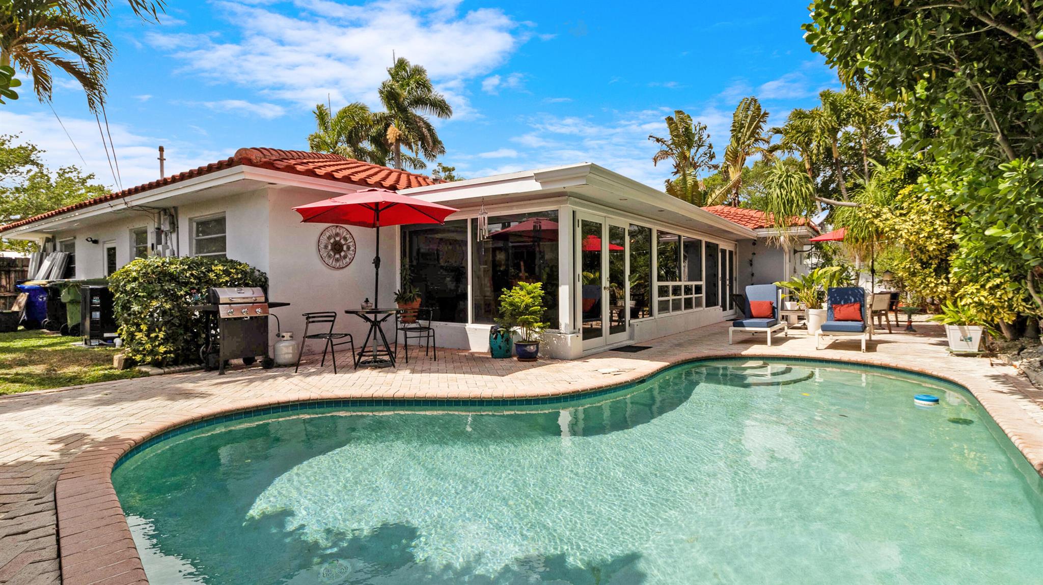 Welcome to this beautifully designed 3BD/2BA home in the highly sought-after IMPERIAL POINT! Inside, you're greeted by LUXURY VINAL FLOORING across an OPEN FLOOR PLAN of over 2,000 TOTAL SQFT -- where modern elegance meets eclectic charm. Coming soon: 100% IMPACT WINDOWS for added peace of mind & storm protection! The kitchen dazzles with QUARTZ COUNTERTOPS, SS APPLIANCES, a WINE FRIDGE, & a splash of vintage charisma thanks to a colorful primary fridge. You'll love the BRAND NEW DISHWASHER & RANGE (coming soon), making meal prep and cleanup a breeze. Get ready to entertain! The FL SUNROOM stuns w/ MEXICAN TILE FLOORS & FLOOR-TO-CEILING WINDOWS, showcasing RESORT-STYLE VIEWS of your private outdoor oasis.