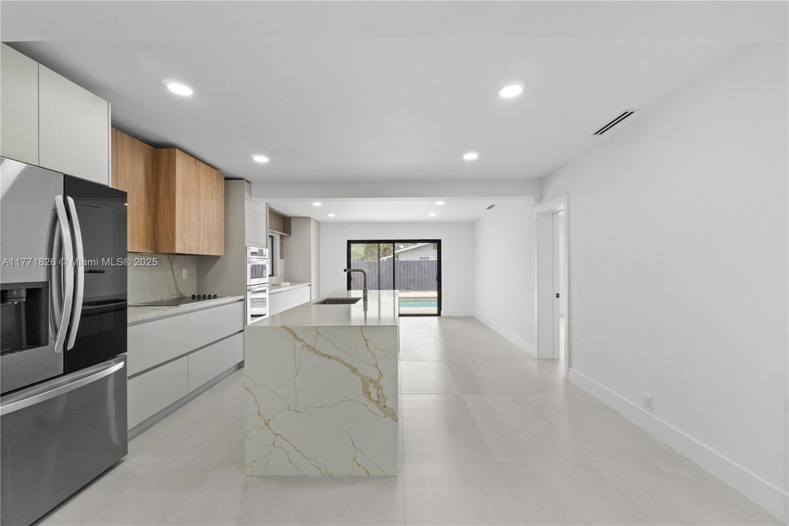Beautifully remodeled pool home in the heart of Hollywood Hills! This 4 bed, 3.5 bath home with a den features a custom kitchen with oversized island, stainless steel appliances, wall oven, and bar. Enjoy new plumbing, electrical, roof, impact windows and doors, plus a new A/C. Spacious primary suite with walk-in closet and modern bath. Backyard oasis with large pool, tiki bar, and privacy wall--perfect for entertaining. Includes laundry room, sprinkler system, and leaf filter gutters. Minutes from the beach, business', shopping, and place of worship! No expense spared!