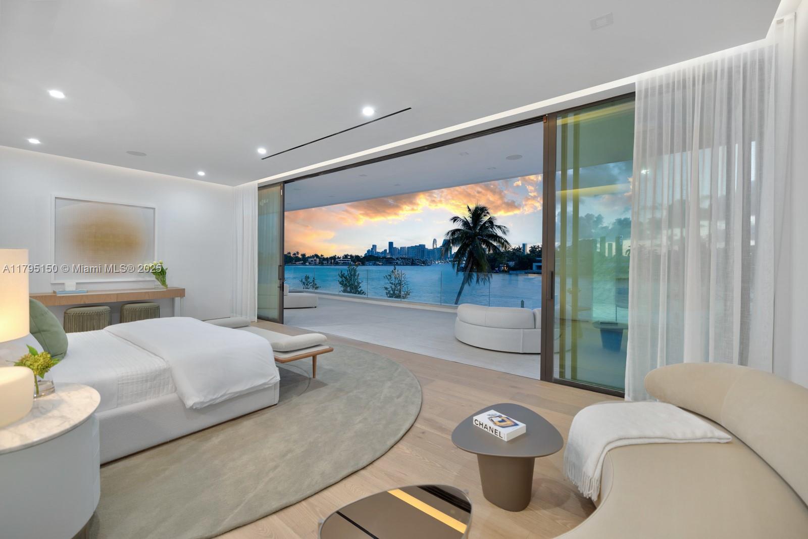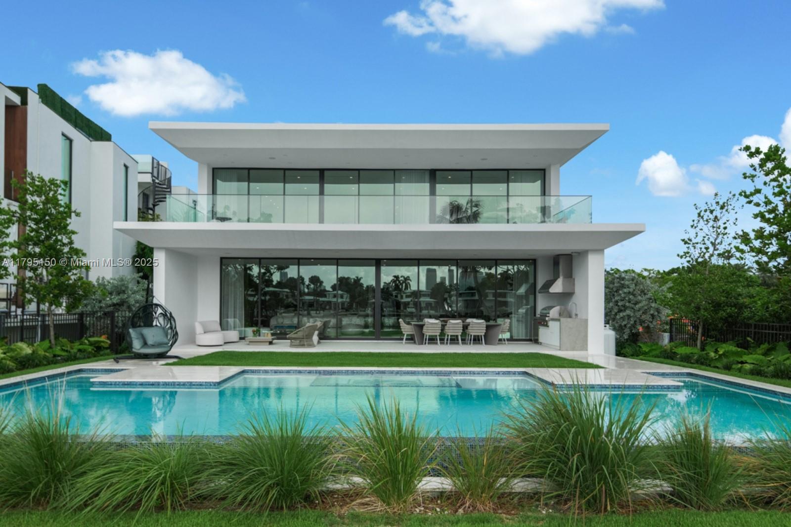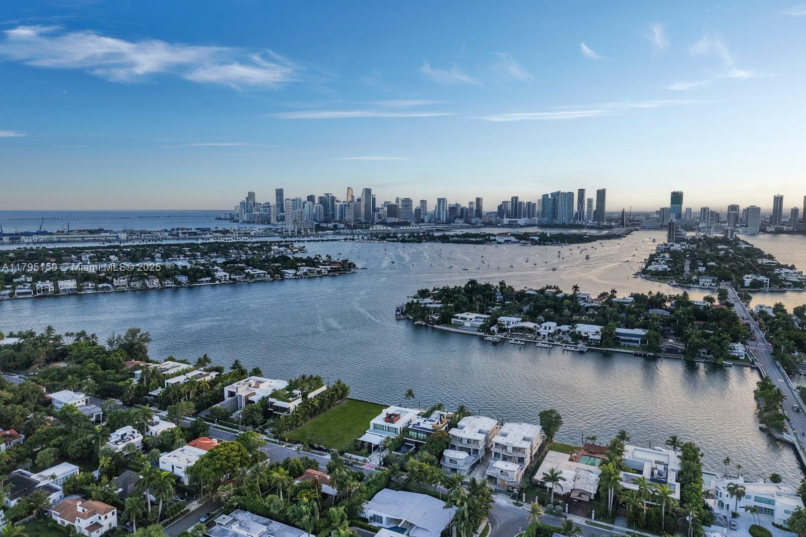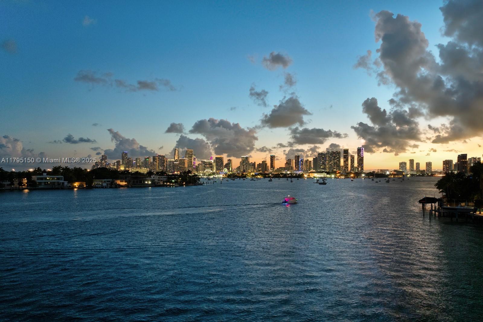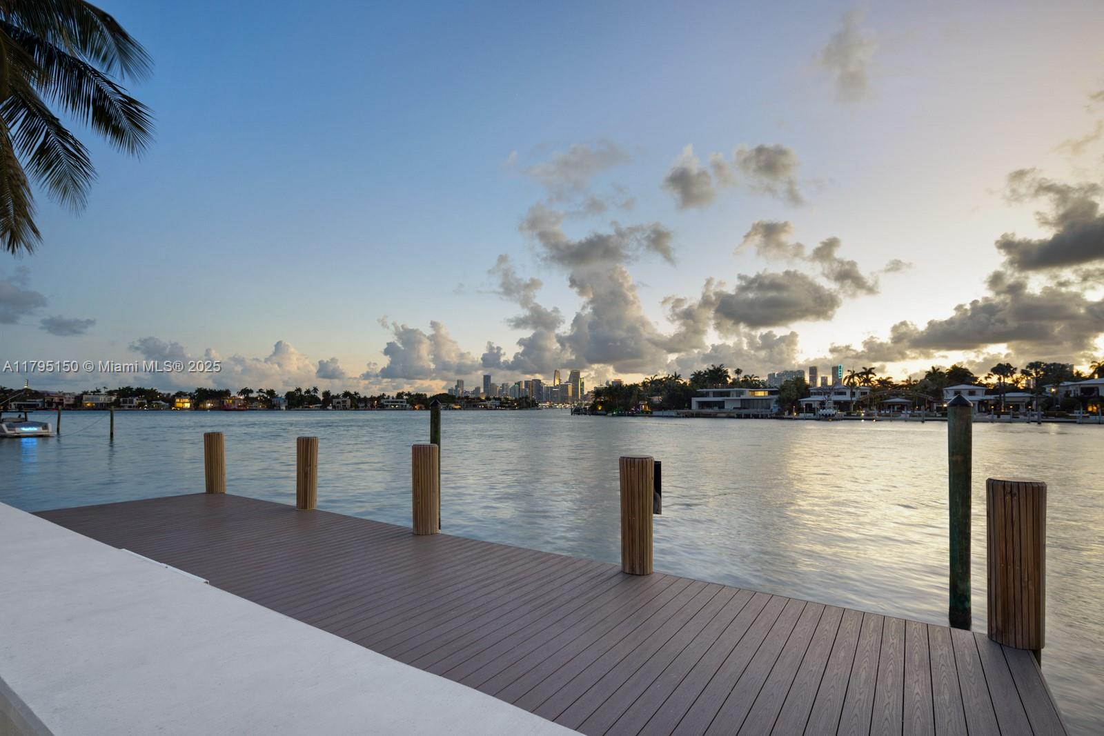 Step Inside With Me! For those who chase skylines, this Venetian Islands abode is ideal. Primely located on desirable Dilido Island's Southern section, this West-facing modern newly built home offers captivating Downtown Skyline views. A particularly wide main level features a perfectly placed grand waterfront salon, an impressive media lounge, a show kitchen enhanced by warm oak cabinetry and and eat-in island + functional butler's pantry. The expansive primary suite highlights stunning sunsets from a 14’ deep terrace while also offering white oak flooring, generous closets, a contemporary bath with dual vanities and rain shower. The outdoors are experienced at a sleek pool setting, outdoor grill, new dock, and seawall. Additional stand-outs: elevator, rooftop, 2-car gallery & generator.