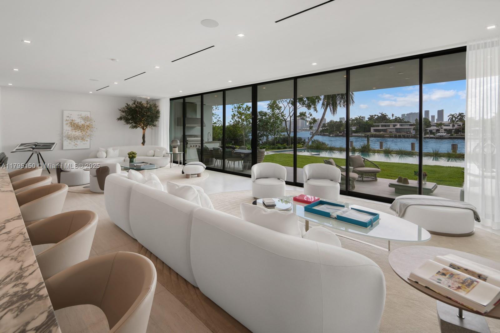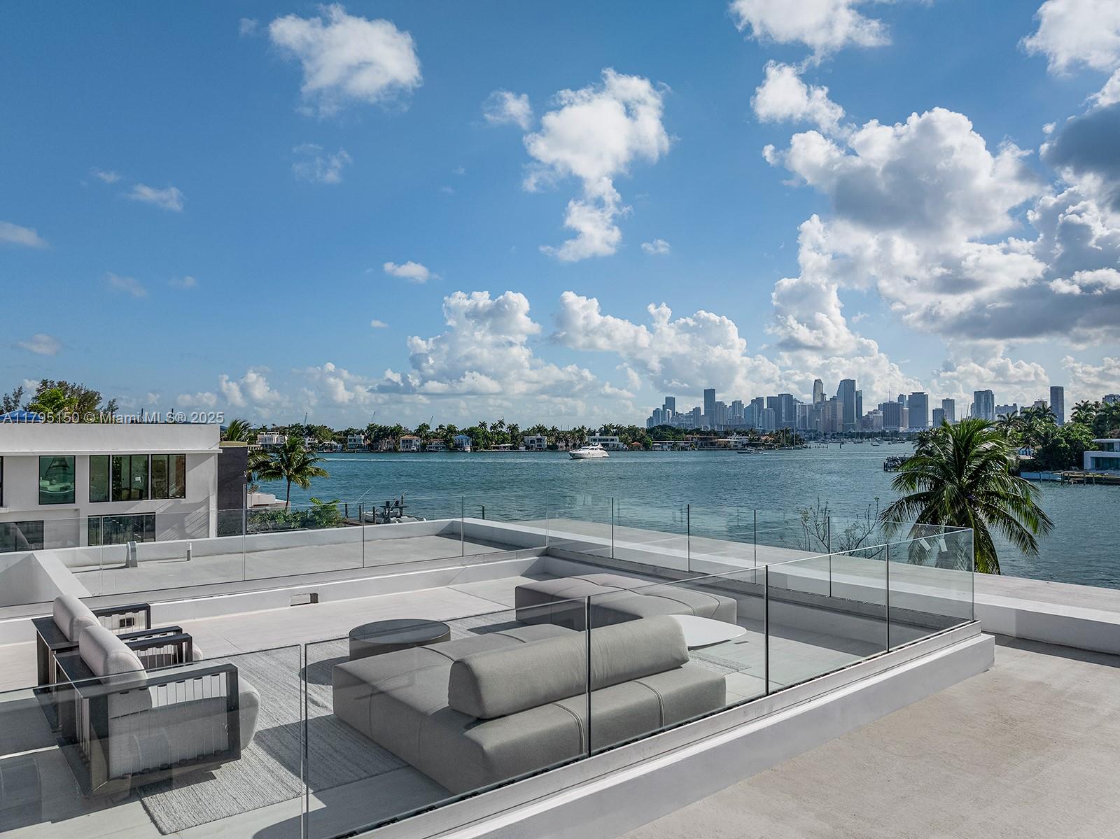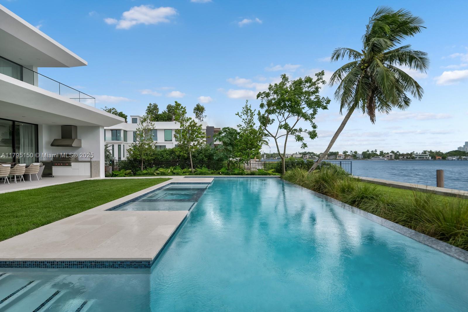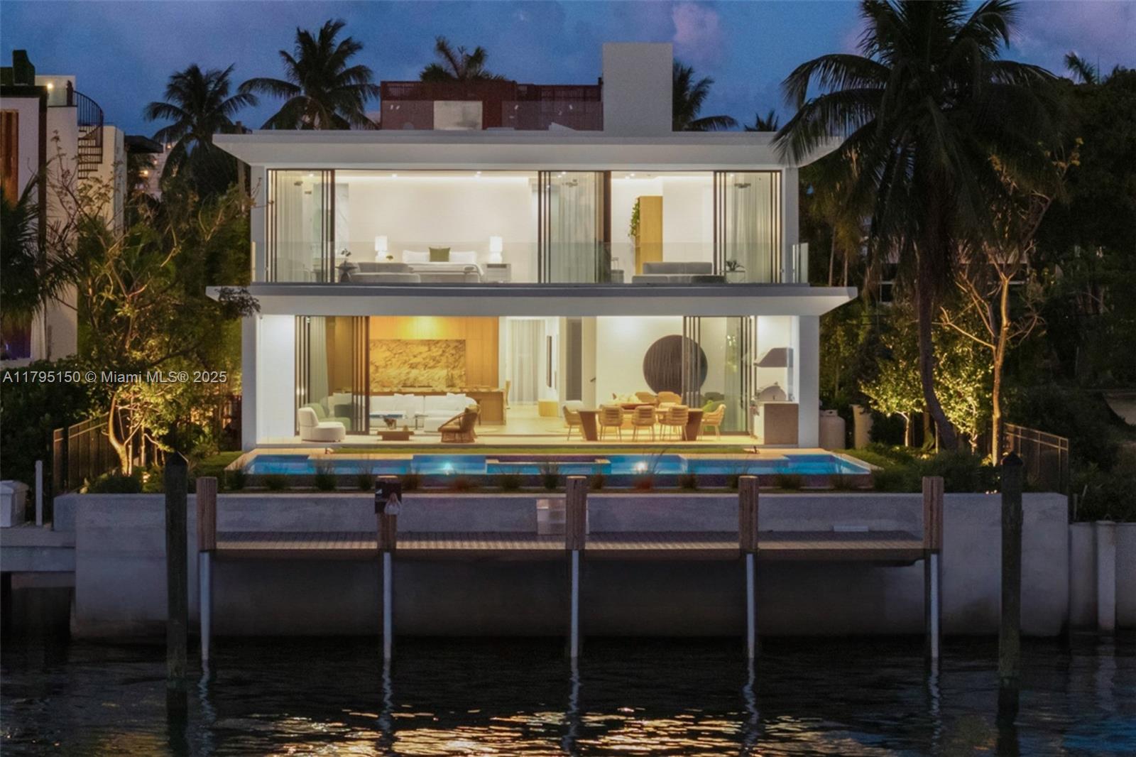 Step Inside With Me! For those who chase skylines, this Venetian Islands abode is ideal. Primely located on desirable Dilido Island's Southern section, this West-facing modern newly built home offers captivating Downtown Skyline views. A particularly wide main level features a perfectly placed grand waterfront salon, an impressive media lounge, a show kitchen enhanced by warm oak cabinetry and and eat-in island + functional butler's pantry. The expansive primary suite highlights stunning sunsets from a 14’ deep terrace while also offering white oak flooring, generous closets, a contemporary bath with dual vanities and rain shower. The outdoors are experienced at a sleek pool setting, outdoor grill, new dock, and seawall. Additional stand-outs: elevator, rooftop, 2-car gallery & generator.