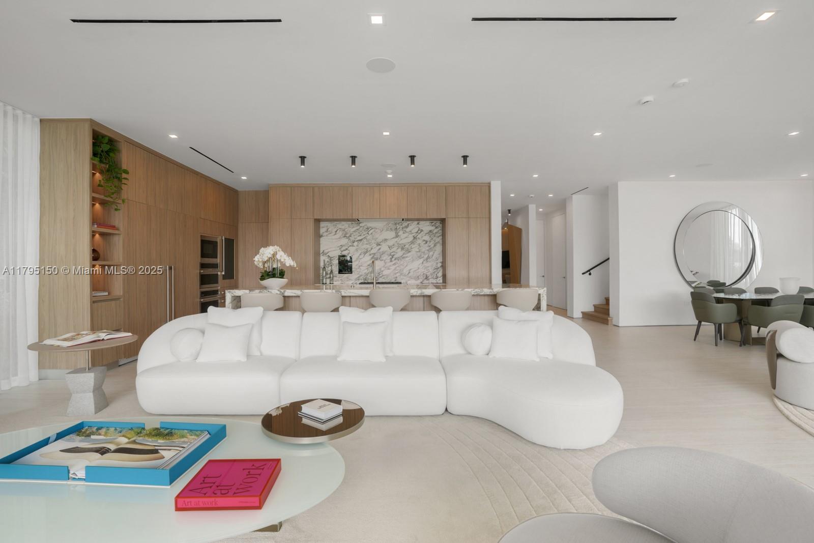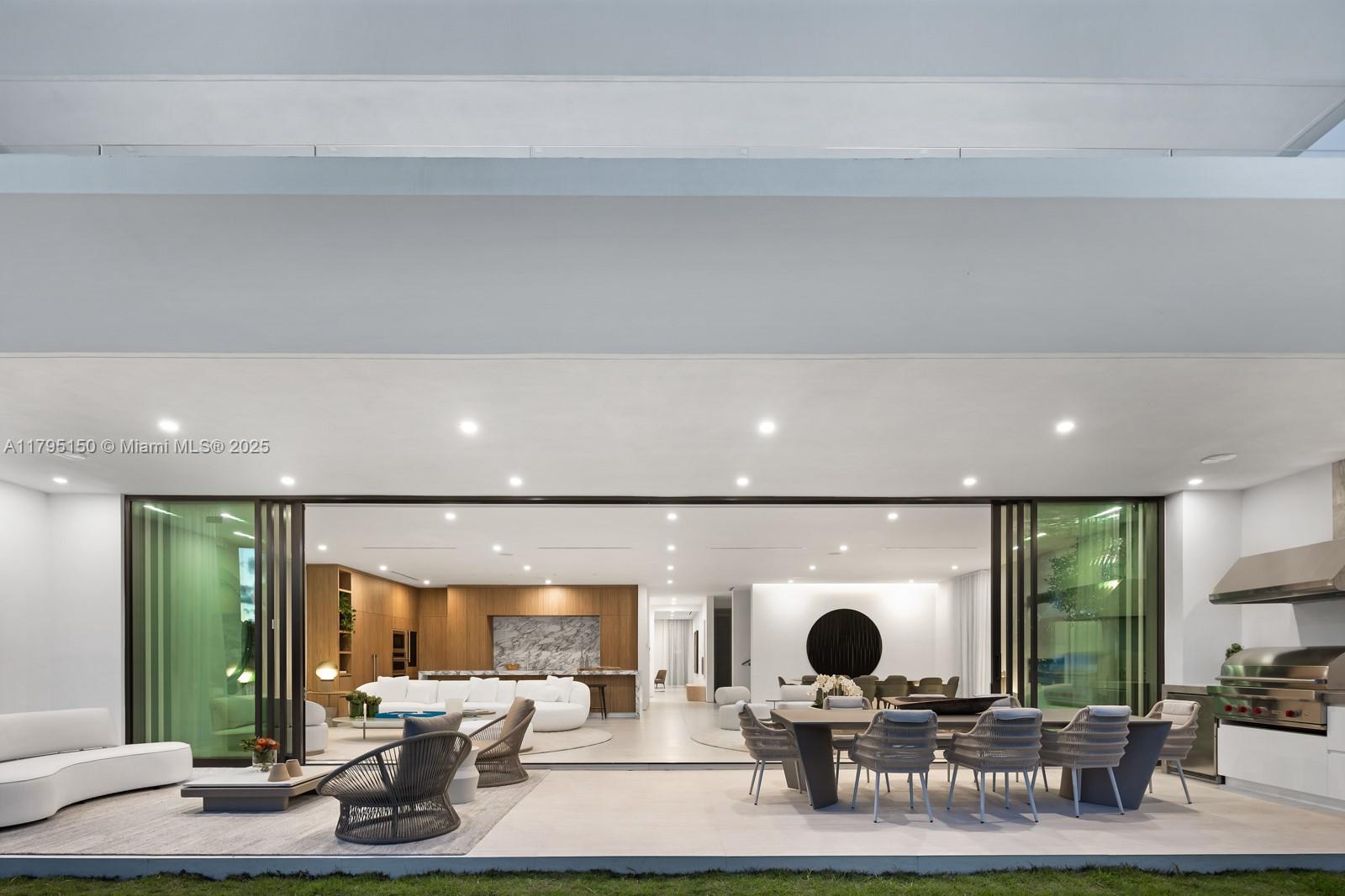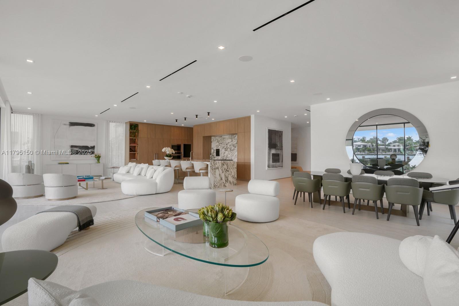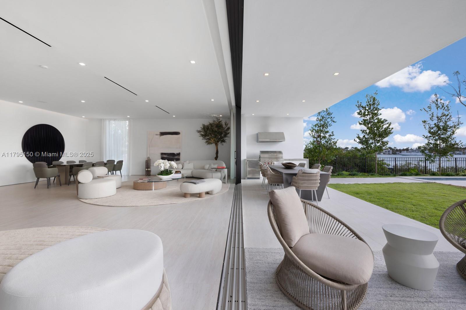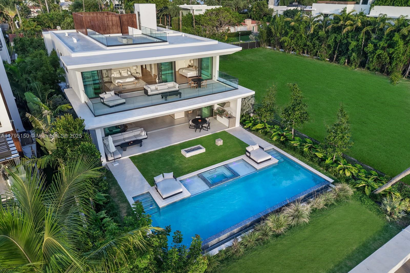 Step Inside With Me! For those who chase skylines, this Venetian Islands abode is ideal. Primely located on desirable Dilido Island's Southern section, this West-facing modern newly built home offers captivating Downtown Skyline views. A particularly wide main level features a perfectly placed grand waterfront salon, an impressive media lounge, a show kitchen enhanced by warm oak cabinetry and and eat-in island + functional butler's pantry. The expansive primary suite highlights stunning sunsets from a 14’ deep terrace while also offering white oak flooring, generous closets, a contemporary bath with dual vanities and rain shower. The outdoors are experienced at a sleek pool setting, outdoor grill, new dock, and seawall. Additional stand-outs: elevator, rooftop, 2-car gallery & generator.