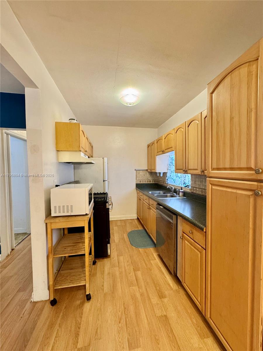 Explore the potential of your ideal family home in this appealing corner property. This house sits on a large corner lot with a 2-bedroom, one bath home with + a 2-car detached garage. This house has a fenced-in Yard with mango & avocado trees, large enough for an R/V camper or boat, etc. The location is truly advantageous, near Greynolds Park golf course, FIU, Aventura Mall, picturesque beaches, and two major airports. It's also near excellent schools, Hard Rock Stadium, and provides easy access to I-95 and the new Brightline station. Discover the many possibilities this home has to offer!