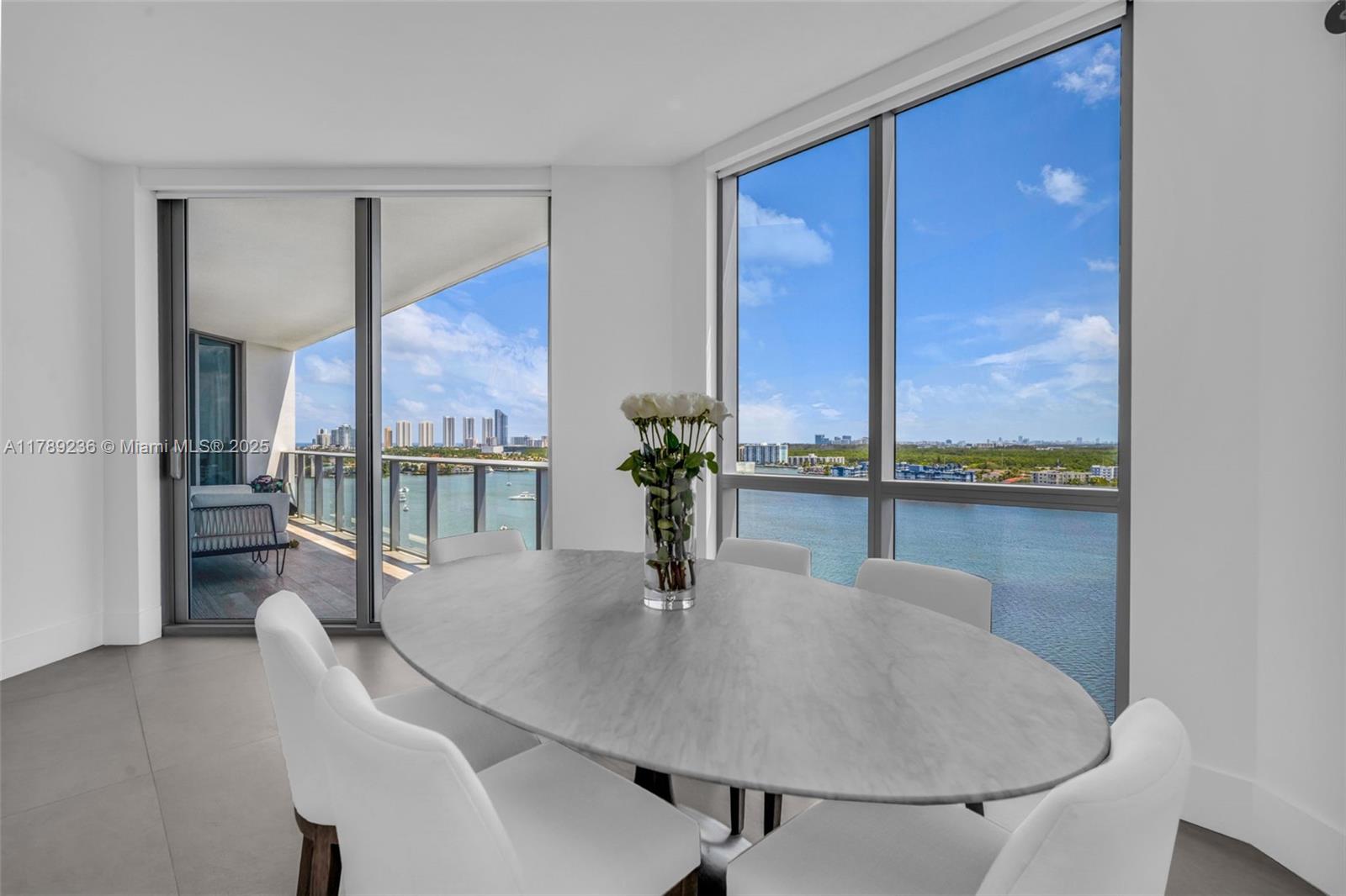Experience luxurious living in this exquisite high-floor residence featuring 4 bedrooms and 4 baths, all while enjoying stunning views of the Intracoastal Waterway and a tranquil nature reserve. The spacious layout includes a European-style kitchen outfitted with top-of-the-line SubZero and Wolf appliances, complemented by smart lighting, electric shades, and an advanced audio-visual system, easily controlled via touchscreen or smart remote. This unit also offers two dedicated parking spaces and additional storage. Residents can indulge in exceptional amenities, including a state-of-the-art fitness center, a relaxing spa, an infinity-edge pool, and access to a private marina. Conveniently located just minutes from Aventura Mall, Sunny Isles Beach and Bal Harbour.