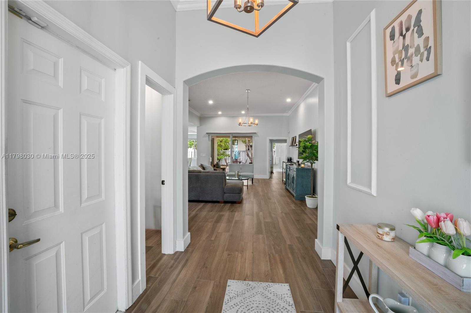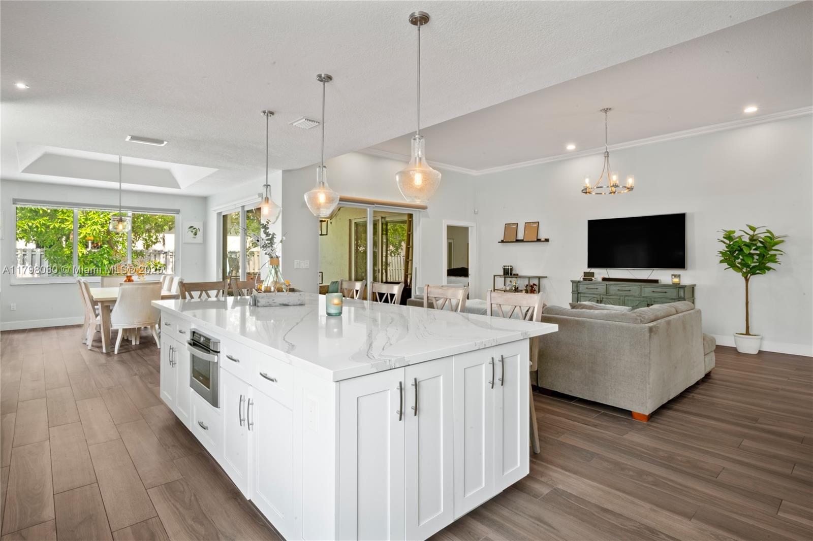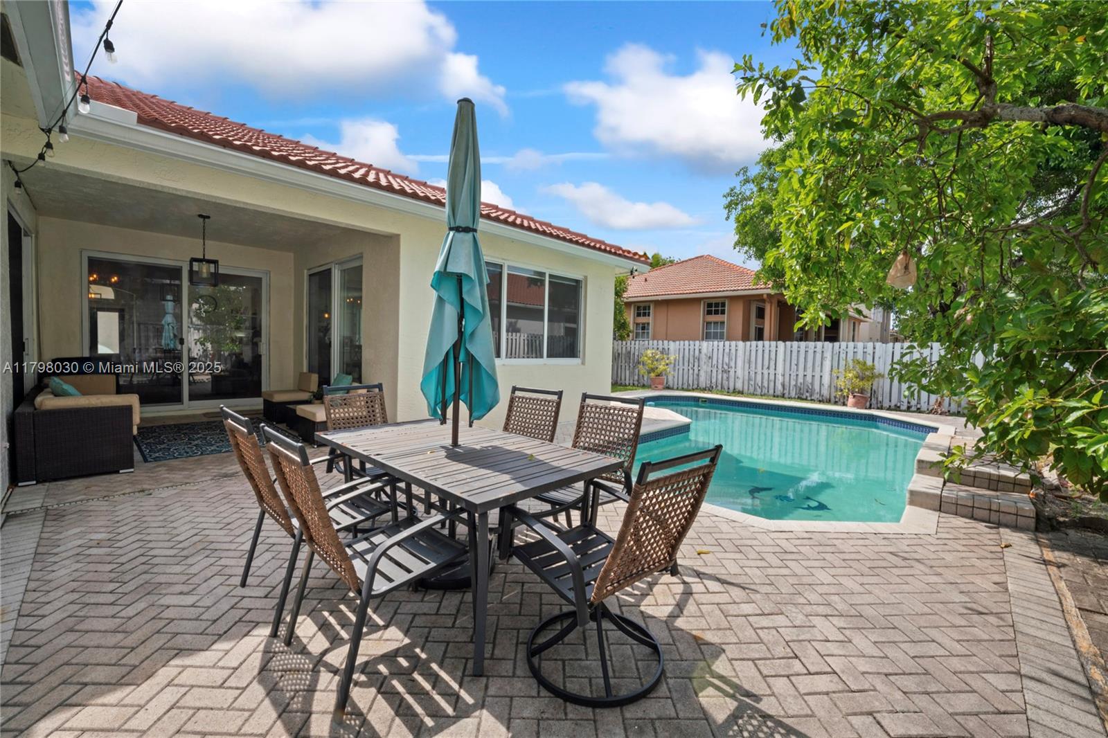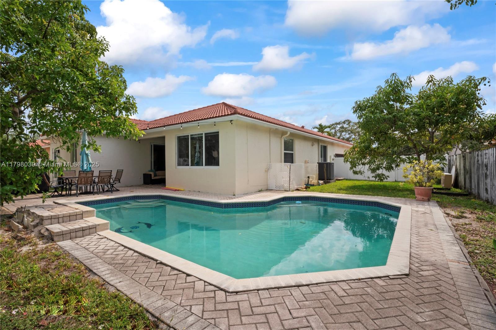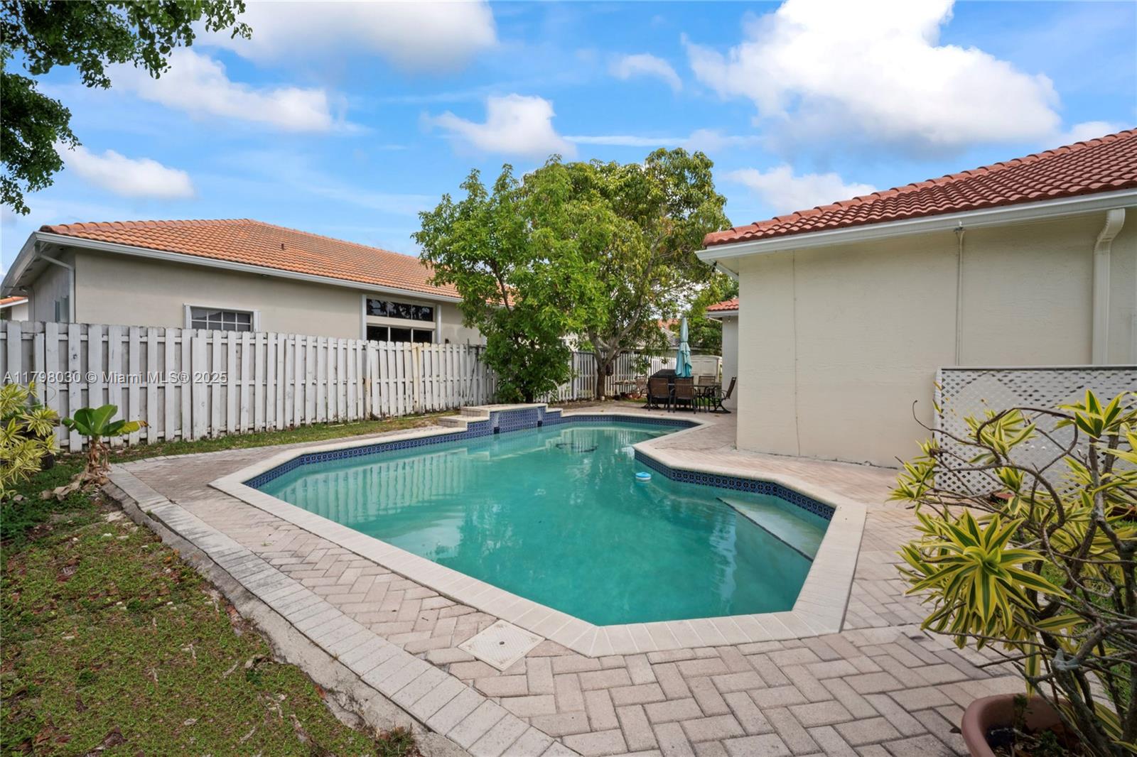 Beautifully renovated pool home featuring 4 bedrooms, 2 full bathrooms, and 2 half bathrooms, including a convenient cabana bath for the pool area. The open-concept layout ideal for entertaining, highlighted by a modern kitchen with a massive quartz island, sleek stainless steel appliances, and an abundance of natural light. The upgraded primary suite offers a luxurious bathroom with an oversized walk-in shower, private toilet room, and custom walk-in closet system. Hurricane-impact windows and doors, a new roof, and attic storage. The backyard is a tropical oasis with a large private pool, spacious patio, lush landscaping, and fruit trees. Ideally located with easy access to I-75, Pines Boulevard, and Miramar Parkway. A gated community with a clubhouse, sports courts, playground.