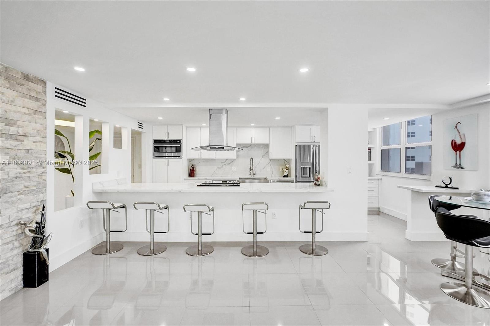 $879,000, Amazing Value in the Aquarius Community! FULLY REMODELED, this beautiful 2-bed, 2-bath villa-style corner unit is 1,768 sq.ft. and move-in ready. Enjoy direct walk-out access to the sunset pool deck and gym from your wraparound balcony--no elevator needed! Custom kitchen and baths, porcelain tile, impact windows, smart A/C thermostat, and motorized shades. Fully furnished. Garage parking, 2 pools, on-site restaurant, oceanfront BBQ area, gym, and more. Assessments paid in full. A rare opportunity to own one of the most desirable layouts in Aquarius--private, luxurious, and uniquely walkable, just steps from Hollywood Beach. You dont like elevator, this one is for you.