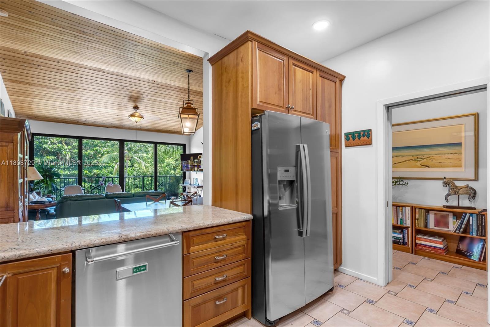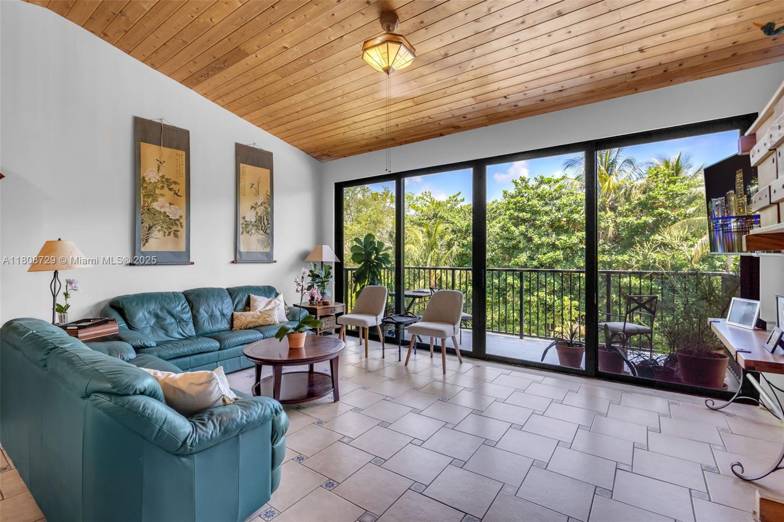 Extra high ceilings bring natural light to this highest story, spacious 3/2 split model apartment, overlooking the trees of Crandon Park. This unit is characterized by its ample bedrooms, able to accommodate large families or large furniture. Walking closet in master bedroom, ample closets in the other bedrooms. Both bathrooms were remodeled in 2016. Just replaced kitchen range, refrigerator and microwave. It has newly installed impact windows, front and balcony impact doors. This gated community has undergone extensive renovations: new flooring throughout the common areas and new railings in balconies. Features two swimming pools, hot tub, gym, recreation room, bbq and lush vegetation throughput the common areas. Walking distance to the beach through neighborhood private access.