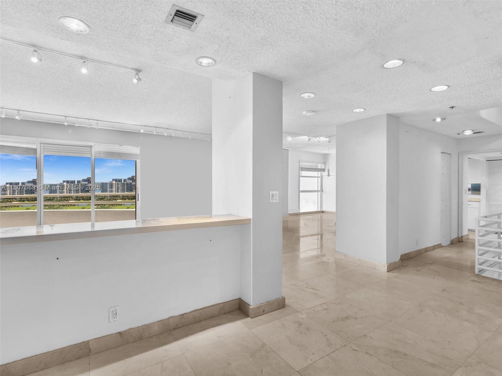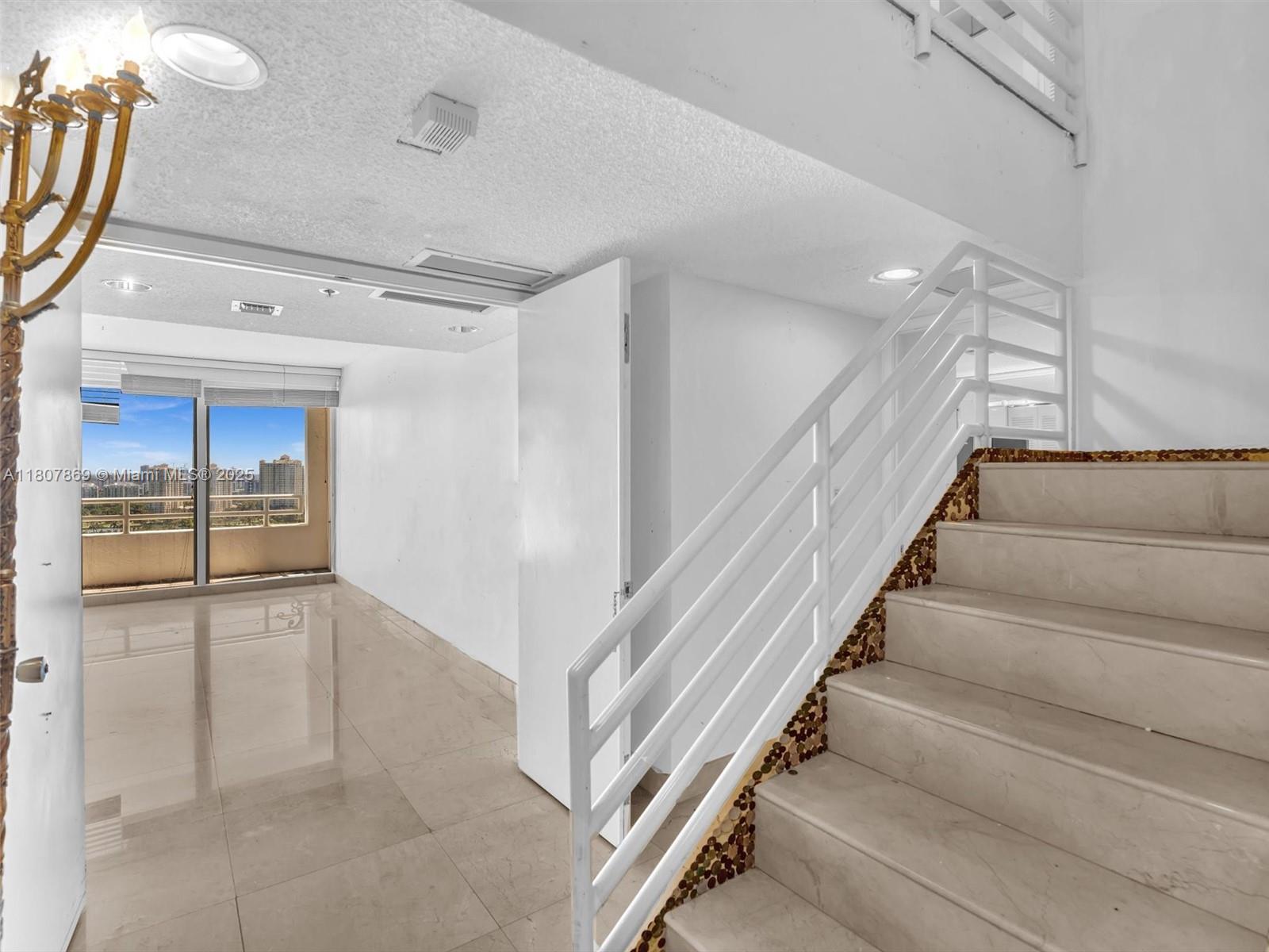 Beautiful 2-story penthouse with 2 bedrooms and 2.5 baths in the heart of Aventura. Upstairs features a bright living room, dining area, kitchen, and guest half-bath. Downstairs offers two bedrooms and two full baths. Enjoy stunning views of the lake, Turnberry golf course, ocean, canal, Sunny Isles, and downtown Miami from a spacious two-level balcony. Just a 2-minute walk to Aventura Mall, Publix, and top dining spots. Easy access to I-95, great schools, parks, and places of worship. Luxury and convenience in one perfect location.