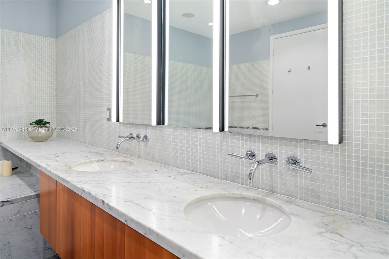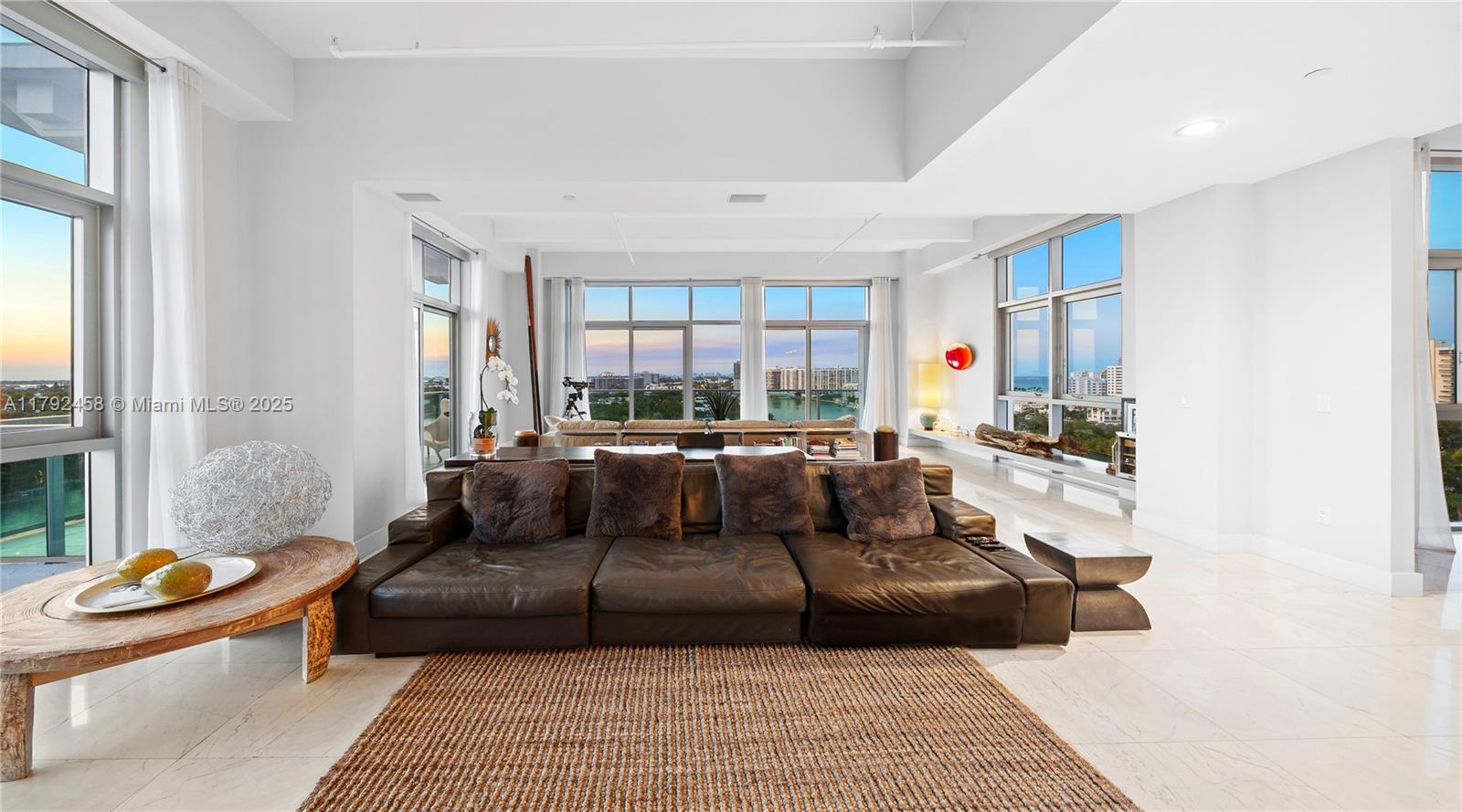 Undeniably the best residence at Aqua, the 1001 is a stunning, sun-lit lower penthouse where modern luxury meets breathtaking views. 3,321 SF of elegant living space plus 420 SF of wrap-around terraces. This 3-bedroom and 3.5-bathroom residence boasts soaring 14-foot ceilings, expansive walls of glass, and an open, airy ambiance that invites natural light to fill every corner. Enjoy sweeping views of the iconic Miami skyline, ocean, and Intracoastal from every room. Featuring bright and extremely spacious living areas, marble floors, and sophisticated furnishings. Three parking spots. Two large dogs are allowed. Aqua Allison Island is an exclusive 8.5-acre private island community with world-class amenities set amidst lush gardens. In the heart of Miami Beach, steps away from the beach.