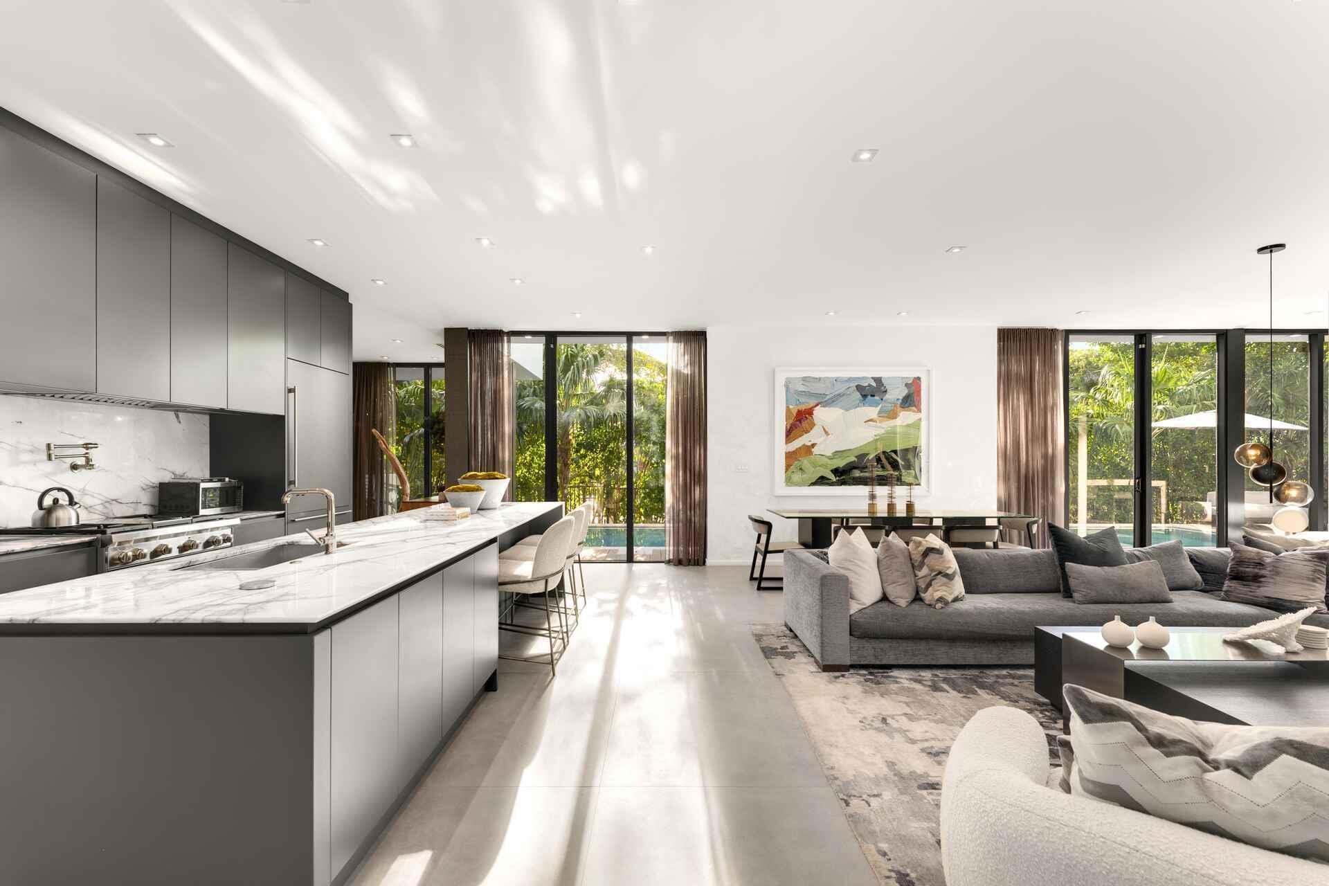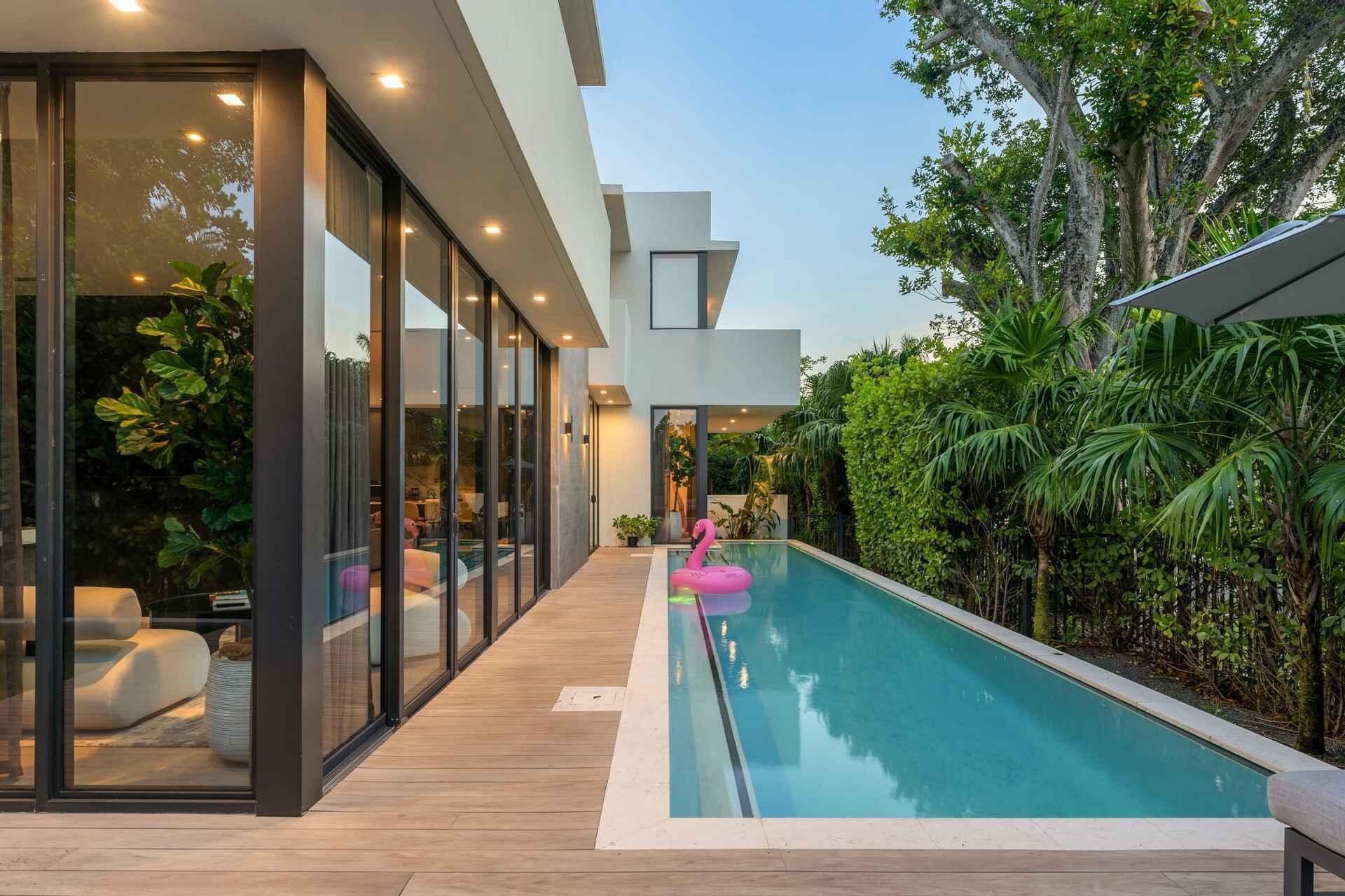 New co-ownership opportunity: Own one-eighth of this professionally managed, turnkey home. Sleek and sophisticated, this modern 5-BR, 6-BA home occupies a west-facing corner lot on coveted Di Lido Island in Biscayne Bay. With simple lines and a neutral color palette, this view home is all about elegance: brushed European oak flooring, Italian porcelain tiles and a marble-topped kitchen island. This open plan is perfect for both daily living and entertaining. Primary bedroom has its own balcony, spacious closet and a spa-like bathroom with dual-sink vanity & soaking tub. The two-story home features multiple terraces, a 50-foot lap pool & outdoor shower, & lush landscaped gardens for privacy. The home comes fully furnished, professionally decorated including carport with e-charging station.