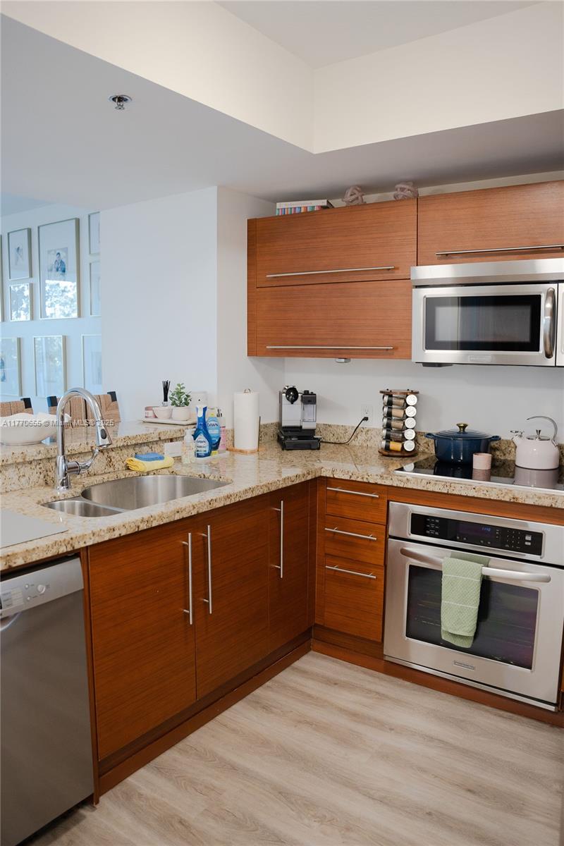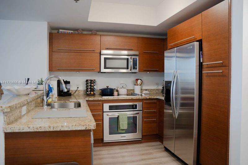 Experience resort-style living at TAO luxury building! This stunning 1BR + DEN unit offers breathtaking views of the lagoon and pool, elegant new flooring, upgraded lighting, modern finishes, Italian cabinetry, granite counter tops and SS appliances, with a spacious layout, and access to premium amenities, including a pool, a fully equipped fitness center, tennis court, sauna, children's playground, bar, billiard room, BBQ area, and 24-hour security. Conveniently located within walking distance of Sawgrass Mall, with premier shopping, dining, and entertainment options. Move-in ready, your dream home awaits.