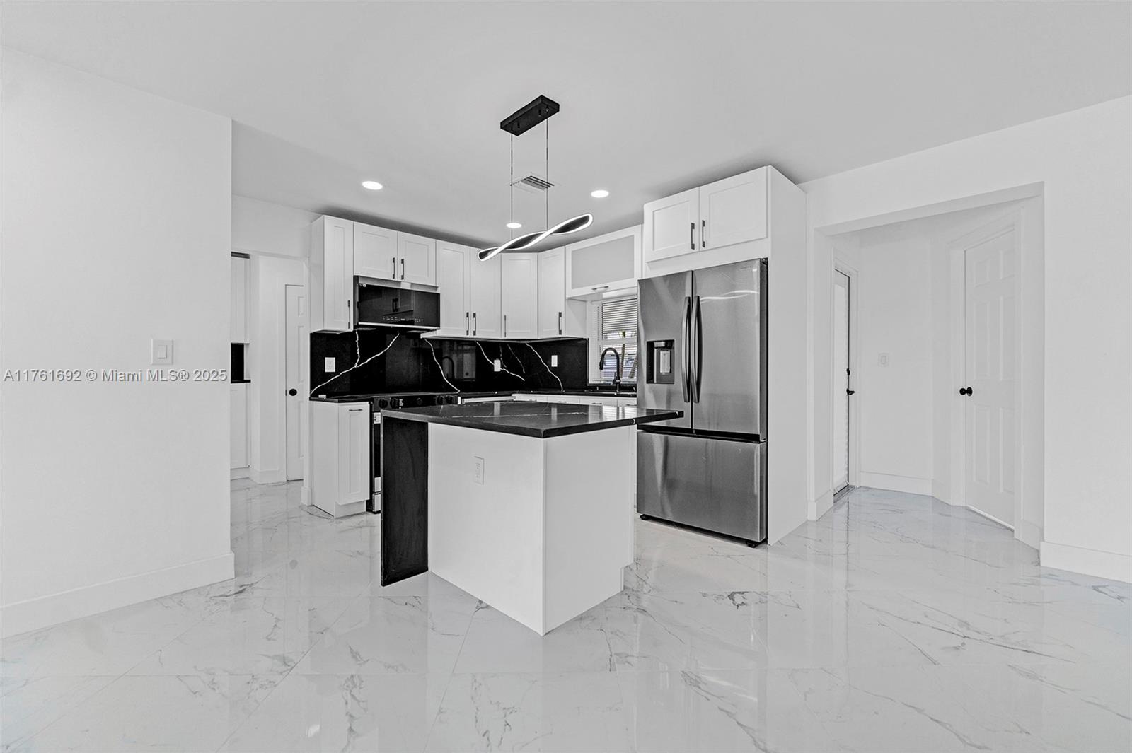 Beautiful fully remodeled 3/2 house , Public records show 2/1, clean title , new roof (2025), impact windows, new baths, new kitchen, stainless steel appliances, new A/C (2025), tile floors, fresh exteriors and interior painted, landscaping with newly laid sod, new driveway, do not miss the opportunity to live with your family in a safe neighborhood in this house with excellent features, EASY TO SHOW