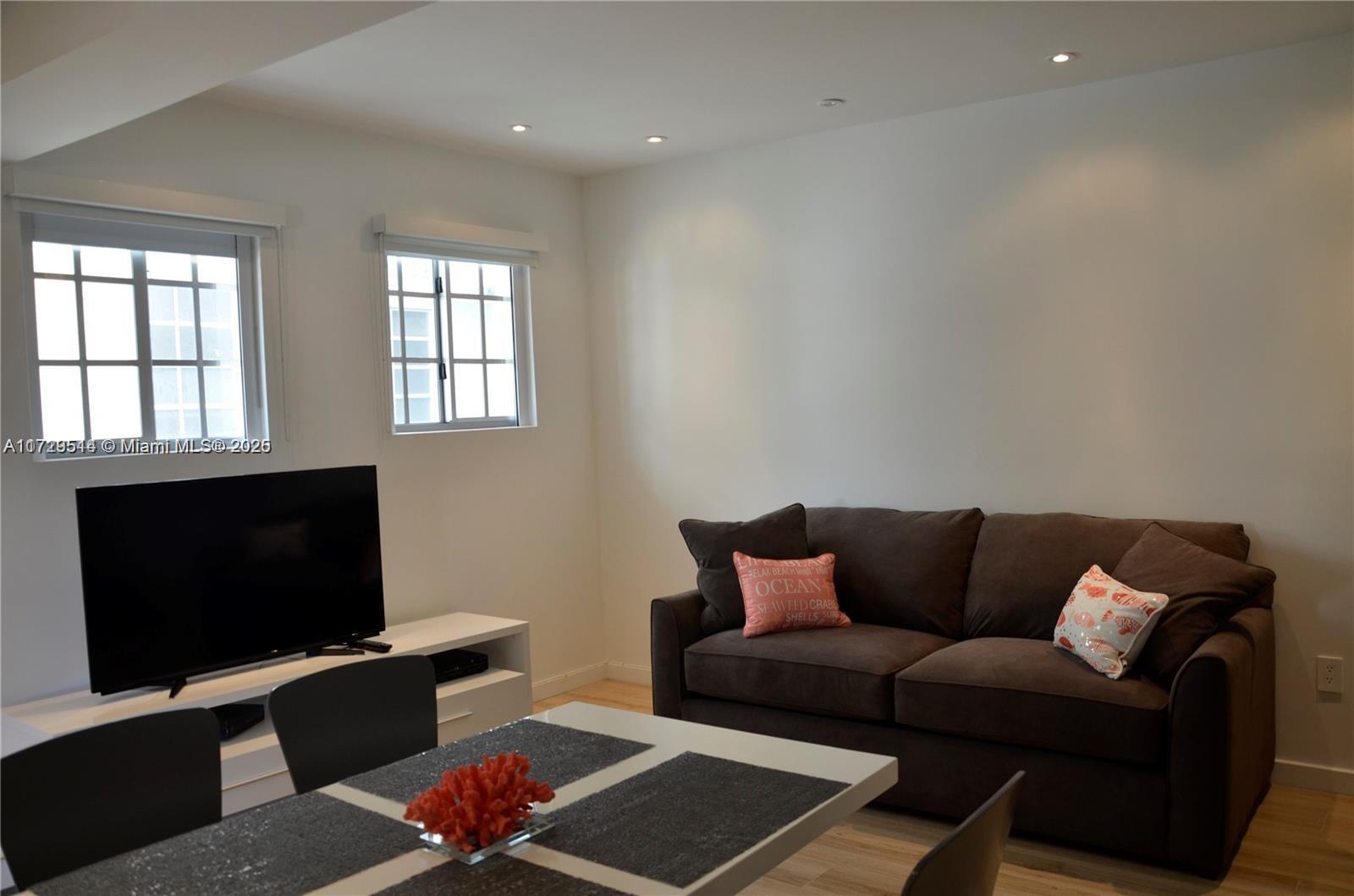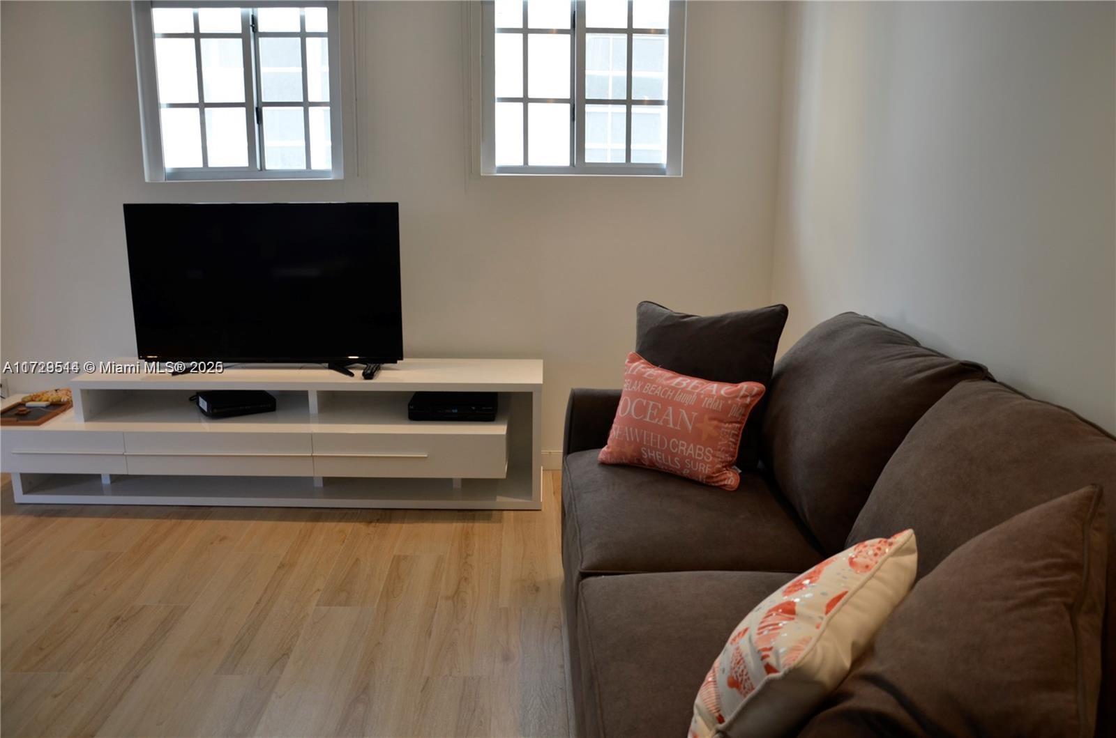 Wonderful corner 1 bedroom 1 bathroom apartment facing south-east just steps to Lincoln Rd Mall. Well divided and full of natural light, it features wood ceramic floor all-over, stainless-steel cabinets and appliances in the kitchen, glass shower, common laundry on same second floor. Wi-Fi and tv cable are included in the condo maintenance. Easy to rent. Great investment in the best location!