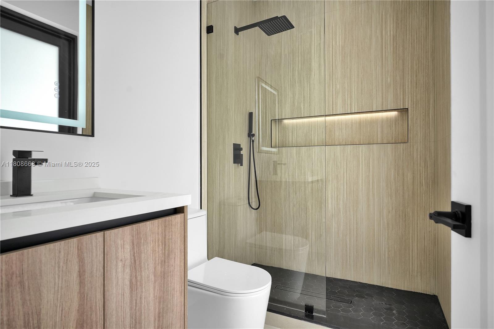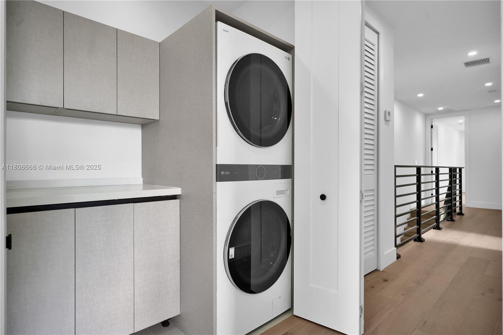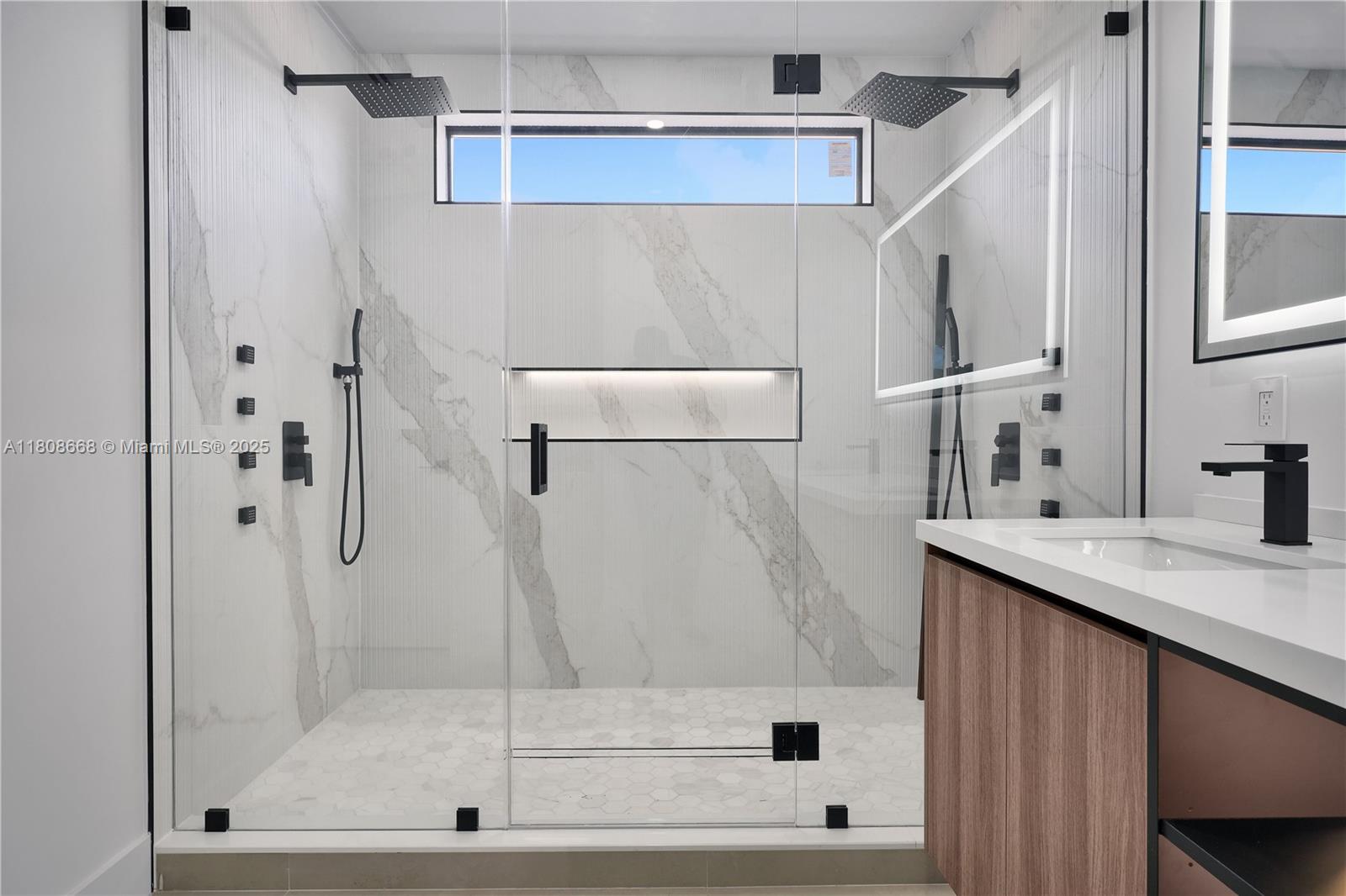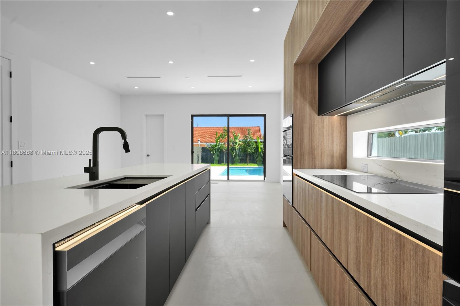 Stunning New Construction!! Experience modern luxury in this beautifully designed 4-bedroom, 4-bathroom residence featuring a spacious 2560 Sqft A/C of open layout and high-end finishes throughout. Downstairs, enjoy expansive large-format tile flooring, while upstairs boasts real wood floors for a warm, elegant touch. The gourmet kitchen is a showstopper, with a large island topped in striking Gold Calacatta quartz, sleek modern appliances, and plenty of space for entertaining. Each of the four bathrooms offers a resort-style experience with designer finishes and spa-like ambiance. The oversized master suite includes a private balcony overlooking the sparkling pool — your own serene retreat in the heart of the city. Just minutes from the best of Brickell, Coconut Grove, and Coral Gables!