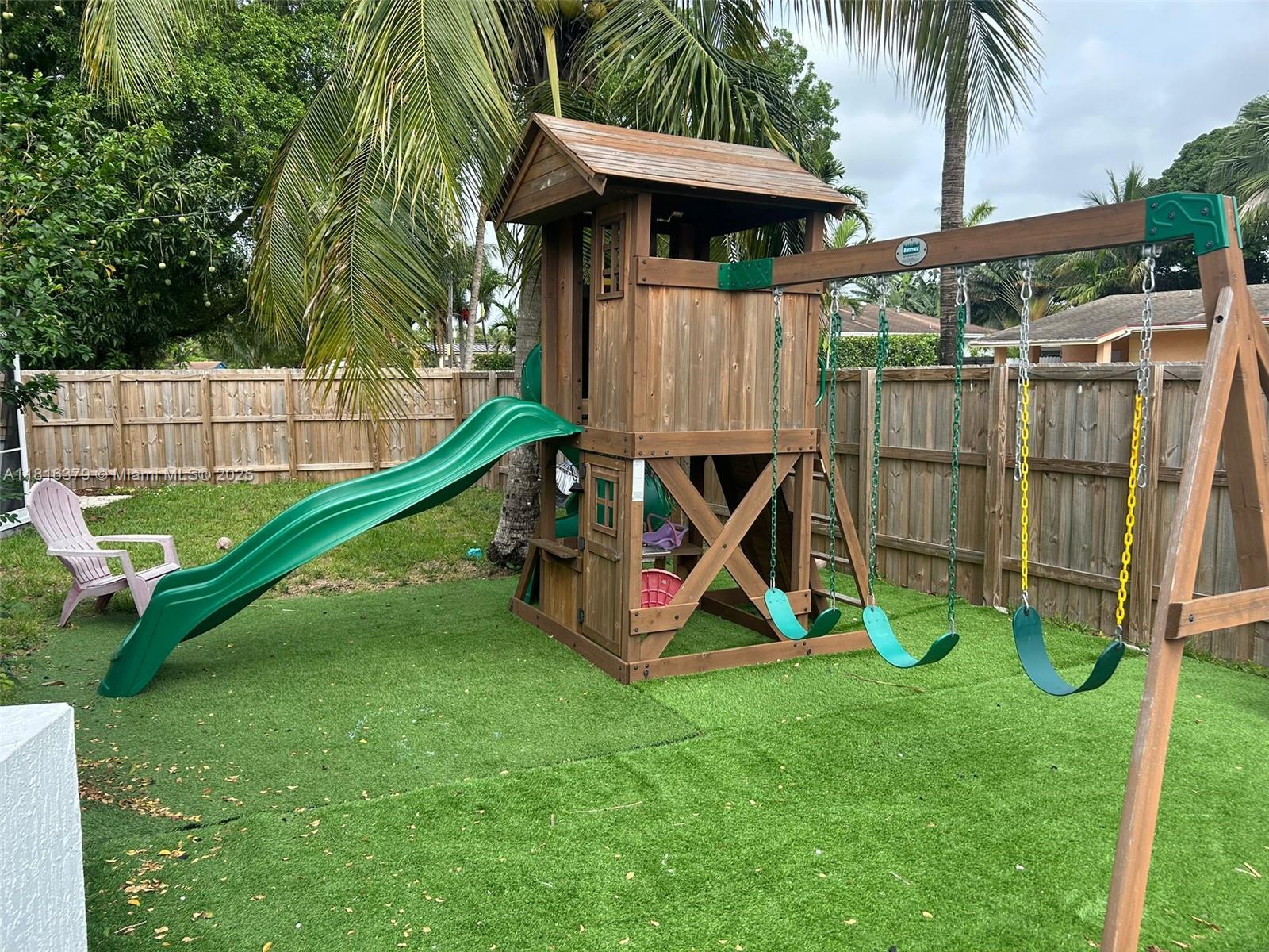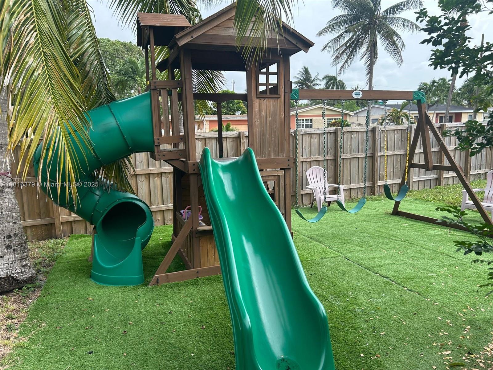 Welcome to your dream home in the heart of North Miami Beach! This beautifully updated 3-bedroom, 2-bathroom residence features a bright, spacious living area with stunning modern tile floors, sleek recessed lighting, & a stylish kitchen equipped with quartz countertops, cutting-edge appliances, dual sinks, & plenty of natural light. The master suite offers a spa-like bathroom with a private hot tub, both bathrooms have been tastefully updated. A versatile den adds extra space for an office or playroom. Outside, enjoy the expansive screened-in patio & large backyard with palm trees & a playground set on low-maintenance artificial turf. Conveniently located near I-95 & houses of worship, this home is the perfect blend of comfort, style, & convenience--just waiting for you to make it yours.