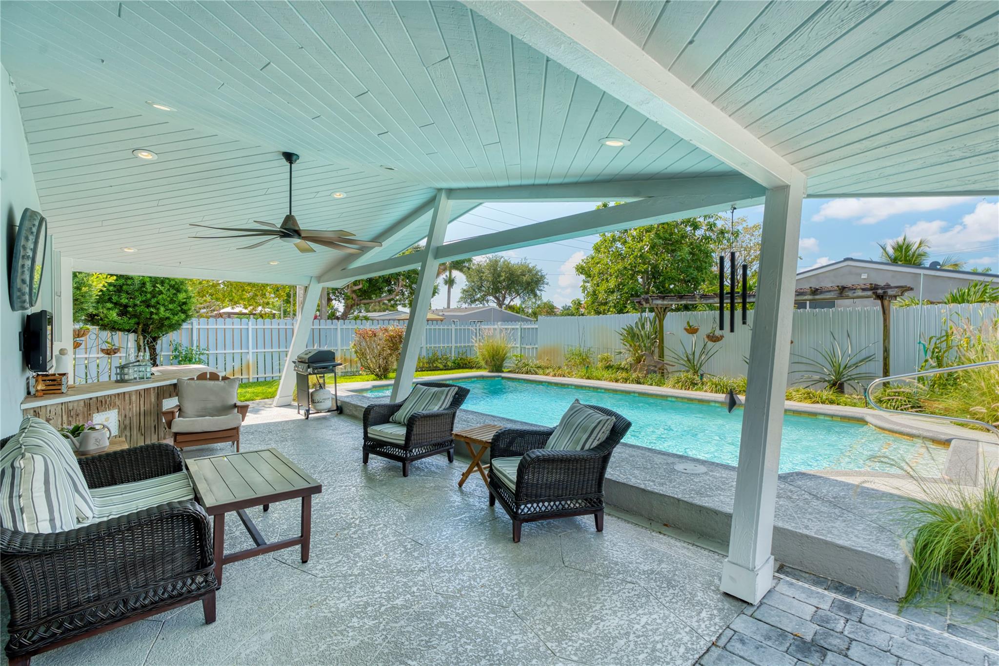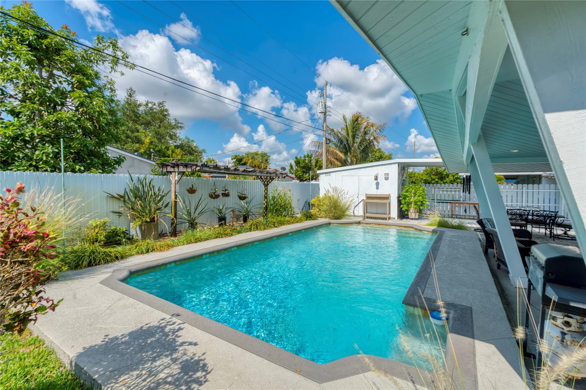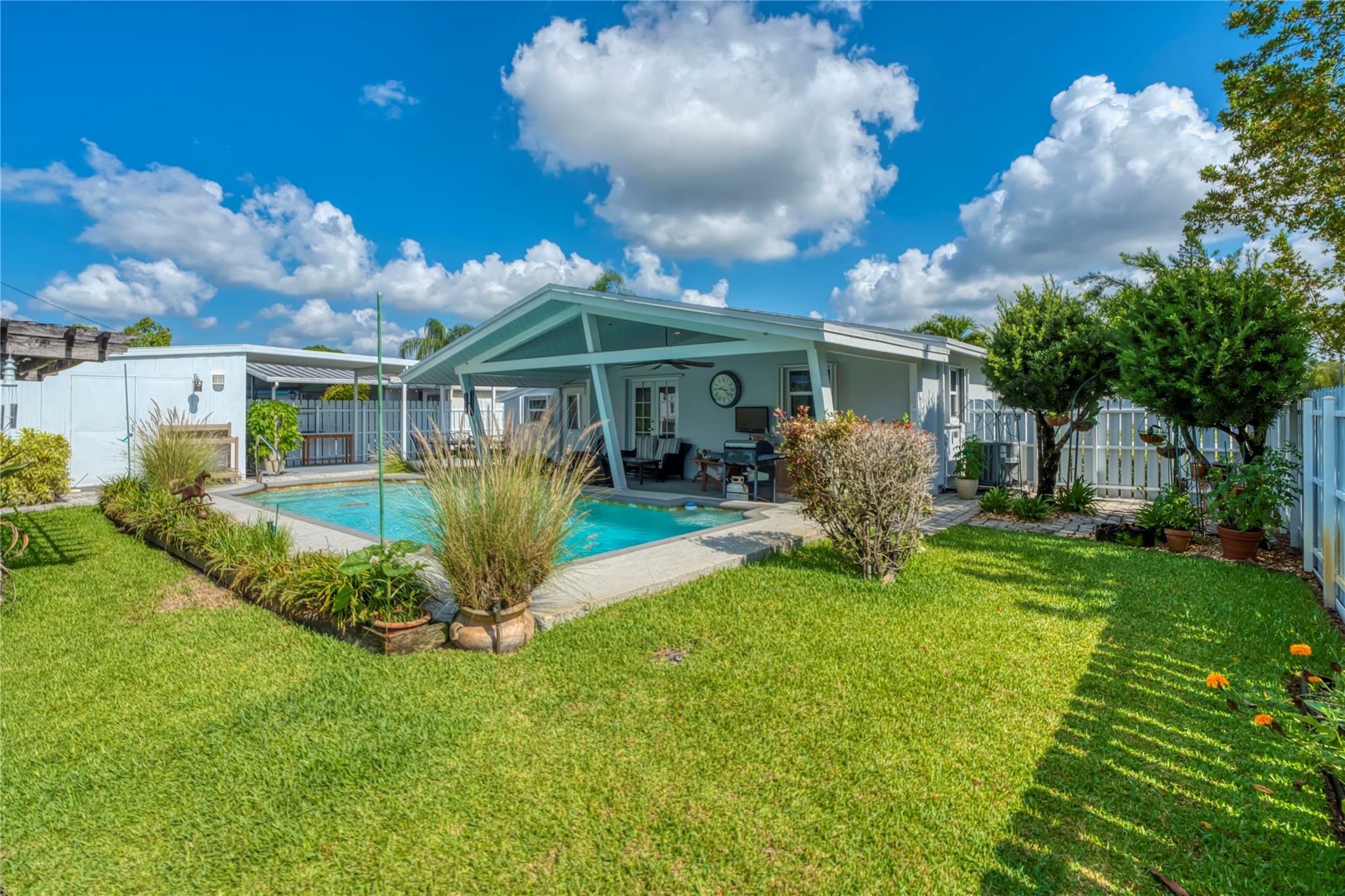 Welcome to this beautifully maintained Hollywood home that offers comfort, charm, and exceptional outdoor living! Enjoy a private backyard retreat with a sparkling pool, stylish patio, and plenty of room to entertain. The updated interior features a modern kitchen, renovated bath, and custom built-in cabinetry. Set on a corner lot with a shed and rare covered RV/boat storage. Whether you’re hosting friends or relaxing with family, this home has it all. Minutes from shops, restaurants, and top schools. Don’t miss this opportunity! This home showcases true pride of ownership, inside and out. Thoughtfully maintained and move-in ready, it’s ideal for those seeking a low-maintenance home with great functionality and convenience. Schedule your private tour today.