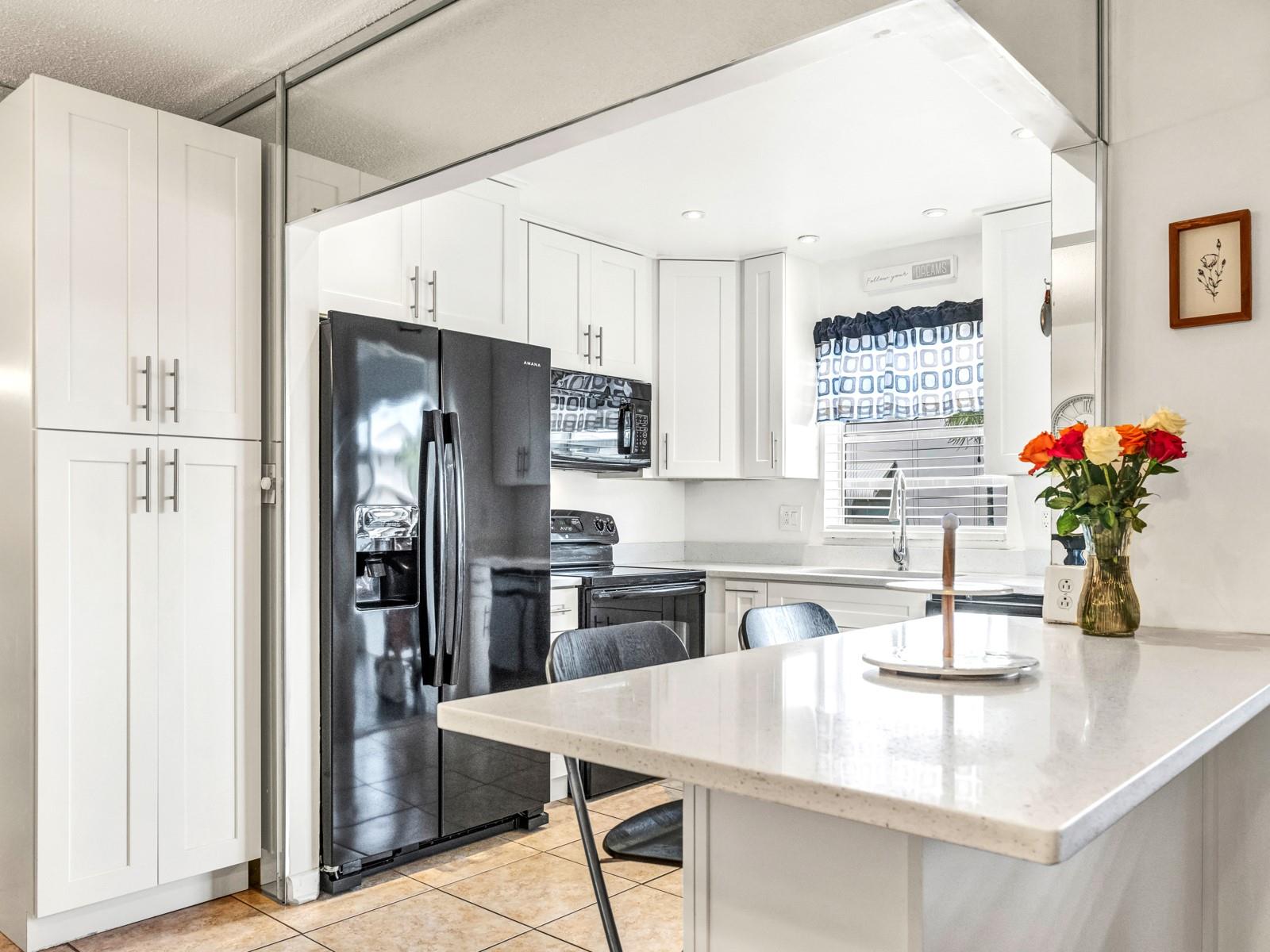 MOVE RIGHT IN AT THE BEVERLY HILLS COMMUNITY! Fabulous 2nd floor condo in gate community 5 miles from the famous HOLLYWOOD BEACH! REMODELED unit in 2021. Enjoy the view of the manicured gardens & pool area from your private porch. OPEN KITCHEN with new white cabinets, quartz countertop, appliances, new plumbing & recessed lighting. NEW A/C & TANKLESS WATER HEATER & EXTERIOR DOORS. (2021). Spacious living room. Large bedroom with IMPACT WINDOWS. Murphy Bed. Clean bathroom upgraded. X-Storage. 50 YEARS COMPLETE. Seasonal rental after 1 year. Gated community secure. Amenities included heated pool, BBQ area, shuffleboard, Clubhouse, gym, billiards, library, courtesy bus & more. Adults’ community with many social activities. No pet. OWNERS WILL GIVE A $5000.00 CREDIT TOWARDS CLOSING COST.