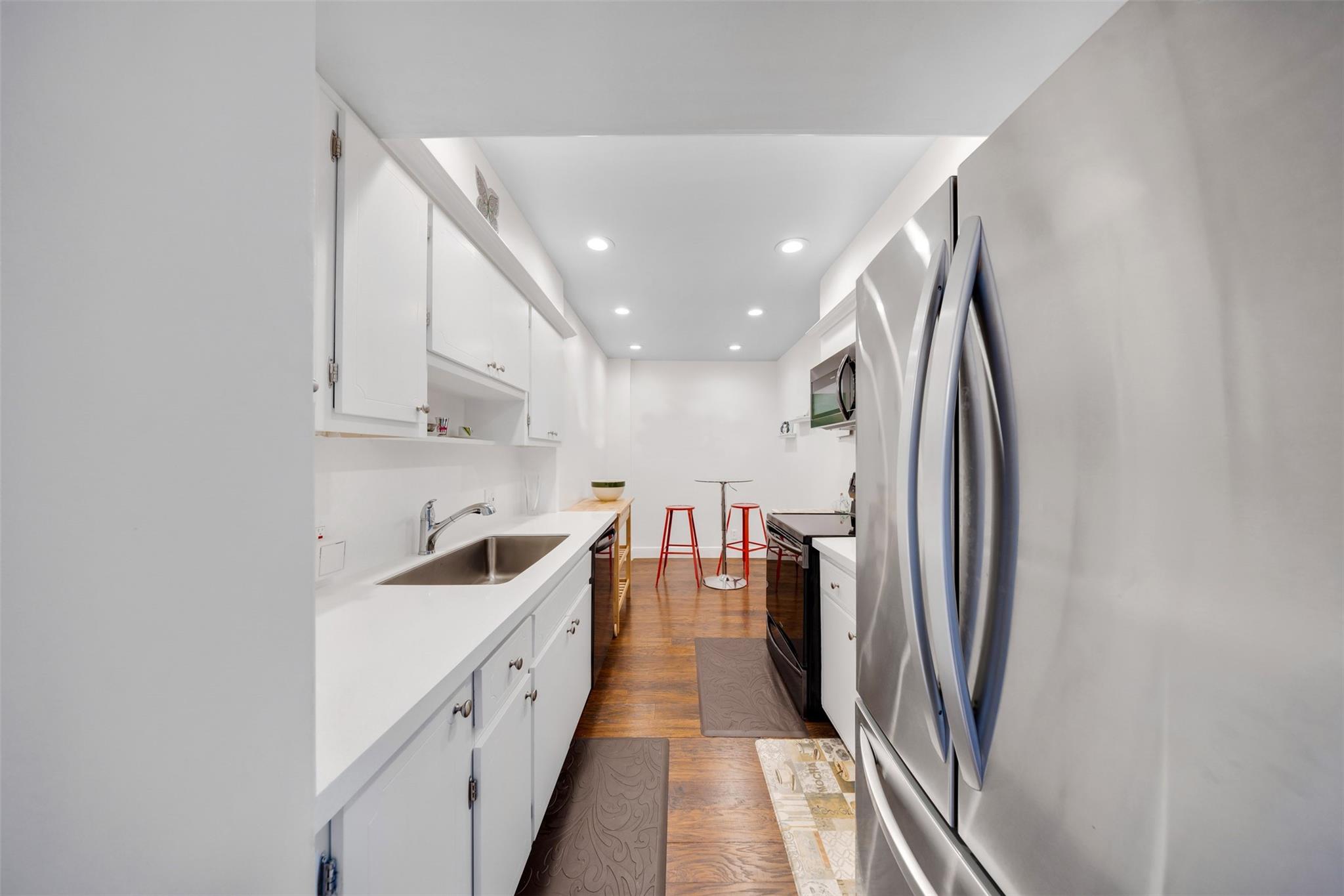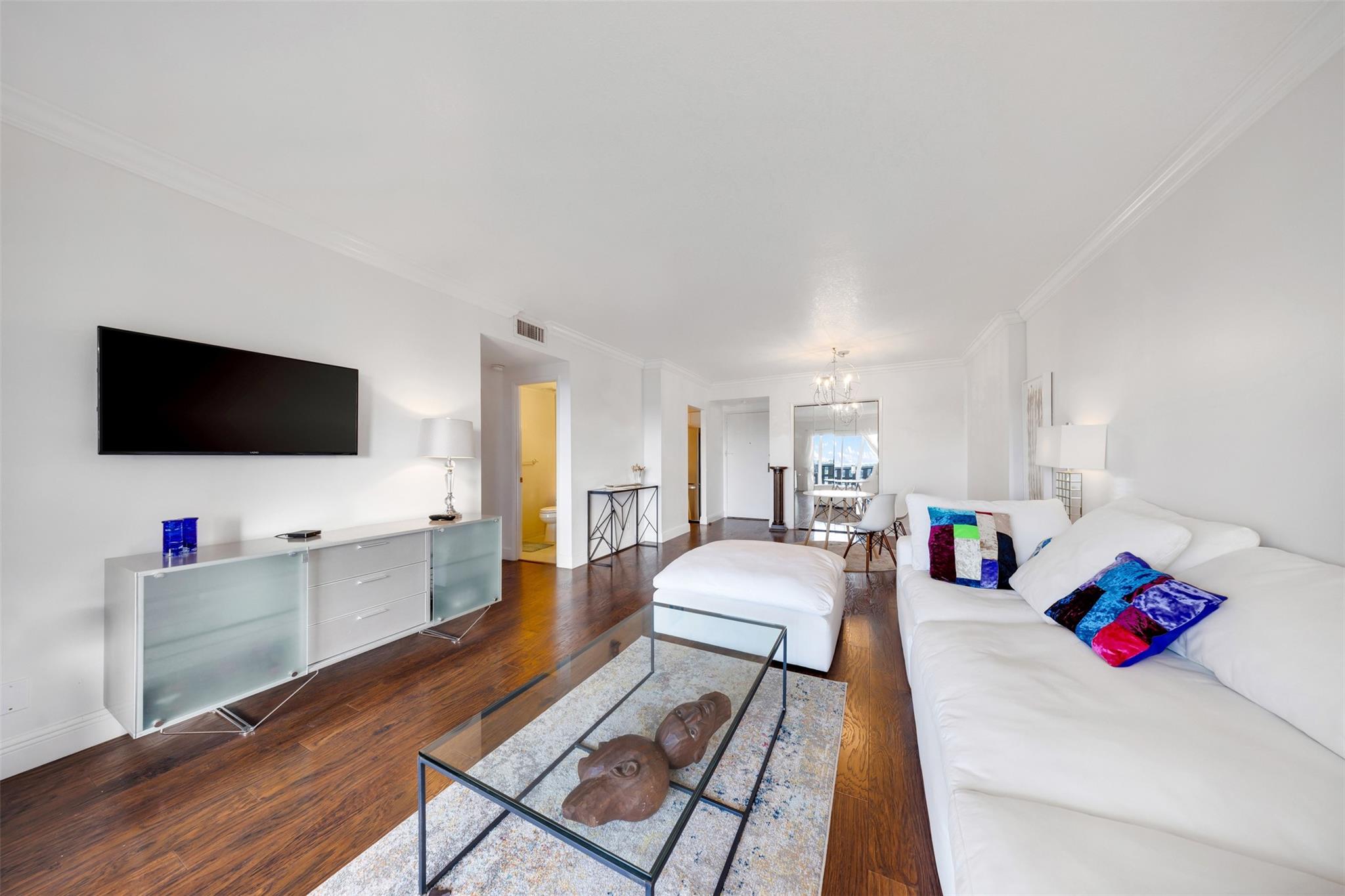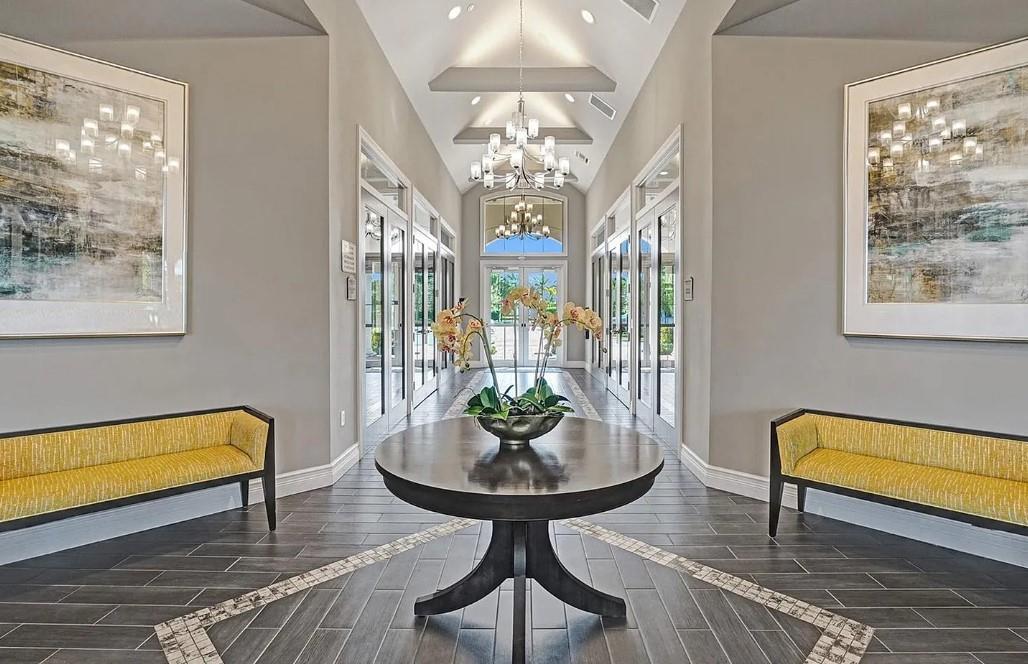 Newly renovated apartment in a beautifully maintained 55+ community known for its warm, welcoming neighbors and lovely, landscaped grounds. The garden is filled with orchids and tropical plantings, and residents enjoy a 3-mile walking path, heated pool, pickleball, tennis, and a social calendar centered around the community banquet hall. Long-term, professional staff offer 24/7 security, manage deliveries, and genuinely care for the residents. Offered furnished or unfurnished, the apartment features modern design elements throughout. The customized kitchen includes sleek new countertops, updated cabinetry, and newer appliances.