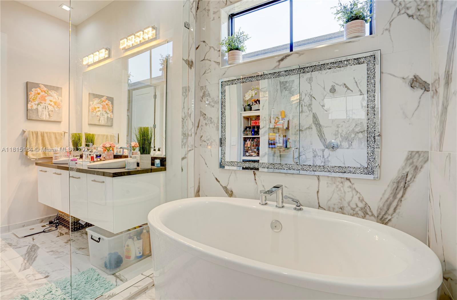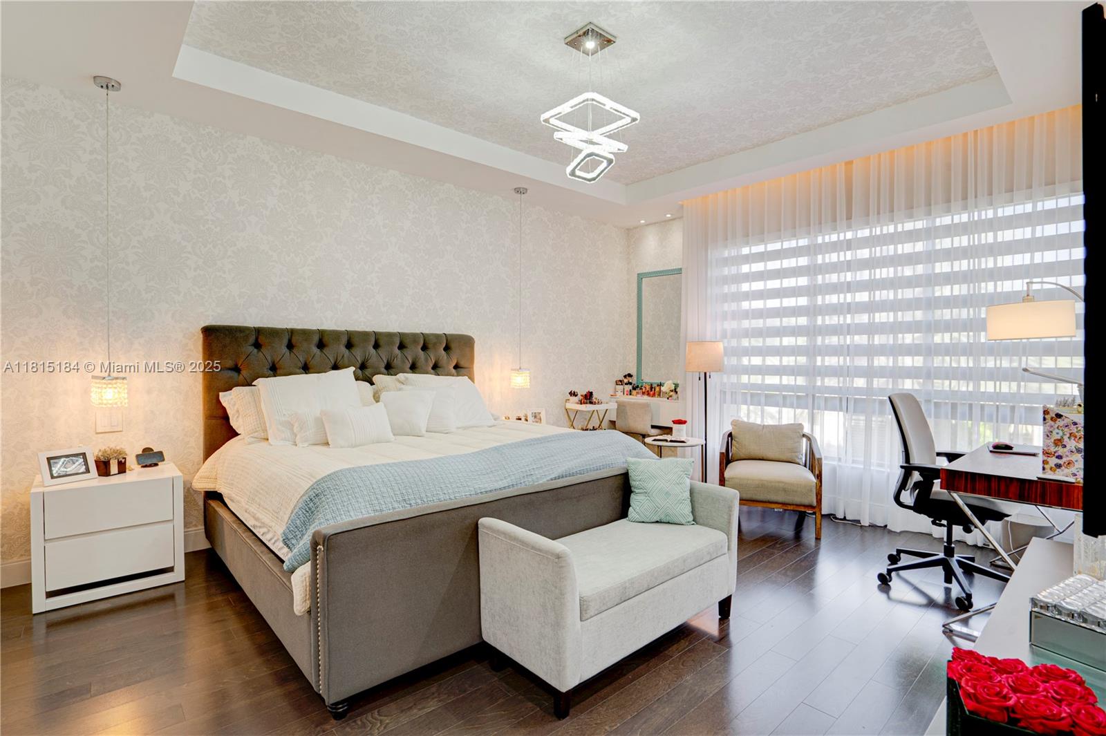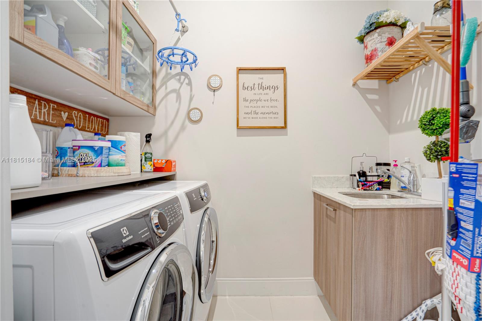 Upgraded Home in Canarias! Step into luxury with this stunning residence featuring high-end upgrades throughout. Enjoy elegant ceramic floors downstairs and laminated floors upstairs, creating a sophisticated ambiance. The upgraded kitchen boasts premium cabinetry, luxury countertops, designer faucets, and a built-in wine cooler. The master bathroom has been fully upgraded, while the second full bath now features a sleek glass shower. Additional highlights include built-in closets, electric curtains, Google-powered home automation, a new washer/dryer, and a garage with ceiling storage shelves. This is Model Cadiz B and 4th bedroom is an open office. The private patio is perfect for relaxing or entertaining. Minutes from Downtown Doral Charter Schools!
