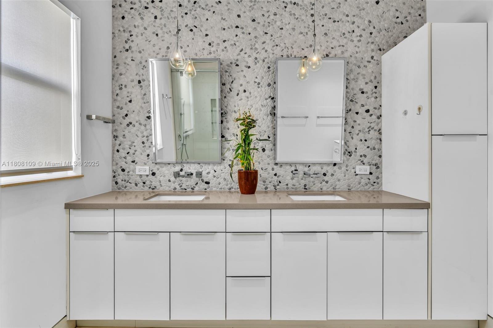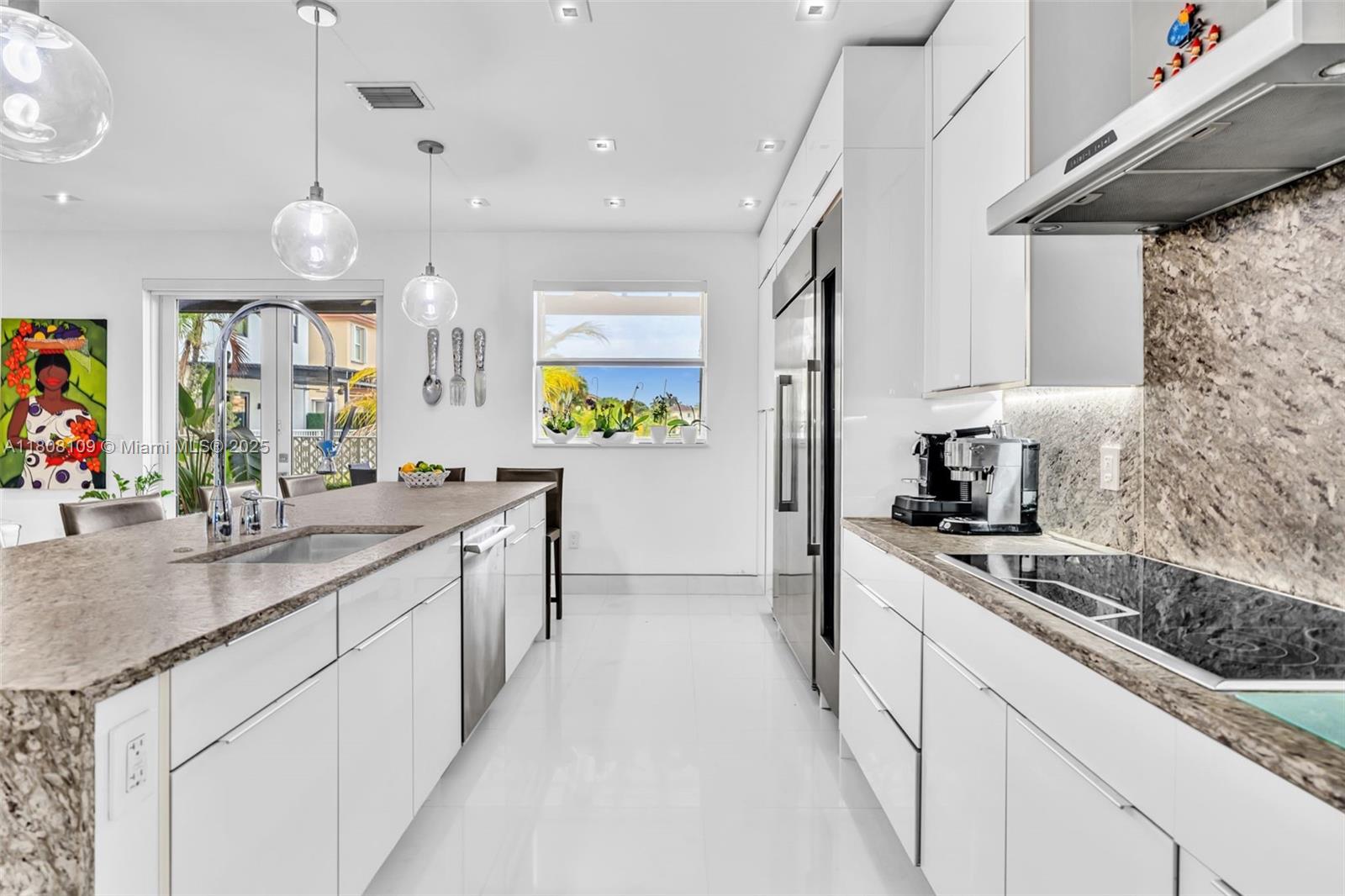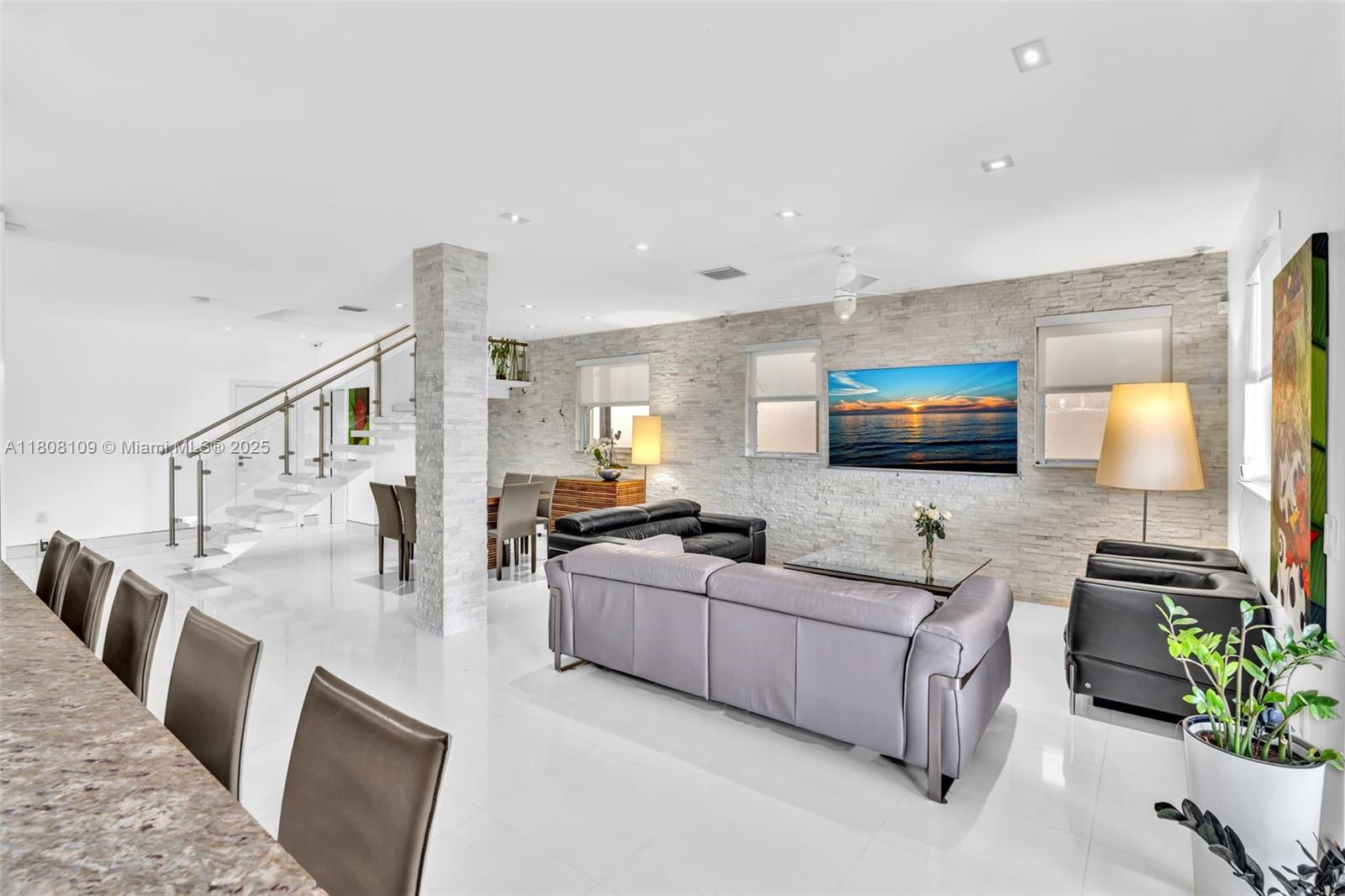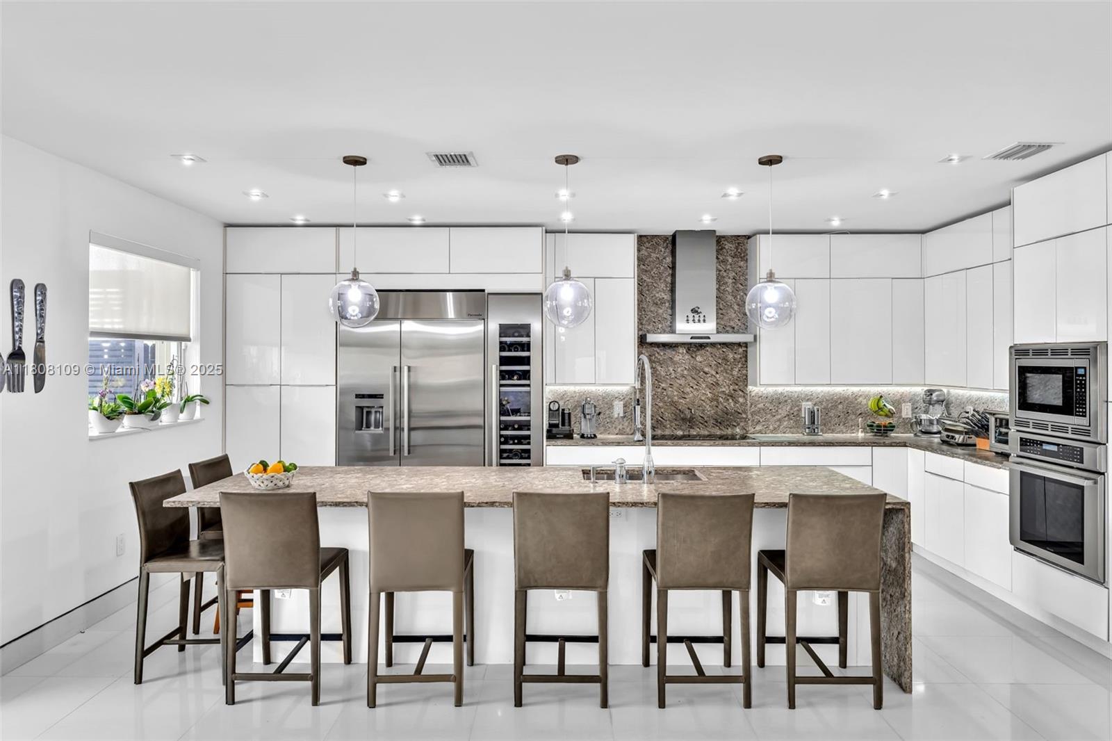 LOCATION! Live in the heart of Doral in this fully remodeled 4-bedroom, 2.5-bath home featuring spectacular design throughout. Enjoy hosting gatherings around the 13-foot natural stone island. Enjoy the sunset and lake view from the covered patio with a surrounding pergola. Every space has been tastefully designed with both style & functionality in mind. Kitchen is equipped w/ Thermador appliances, w/ a wine cooler 73-bottle capacity. The open layout, enhanced by a custom floating staircase, gives the living and dining areas a bright and spacious feel. The large master bedroom features a spacious bathroom with an oversized shower. All custom-designed California closets. Low HOA, Aprox $200K in upgrades.