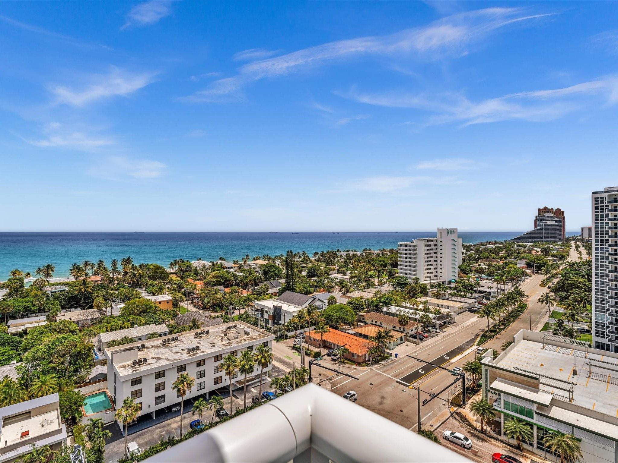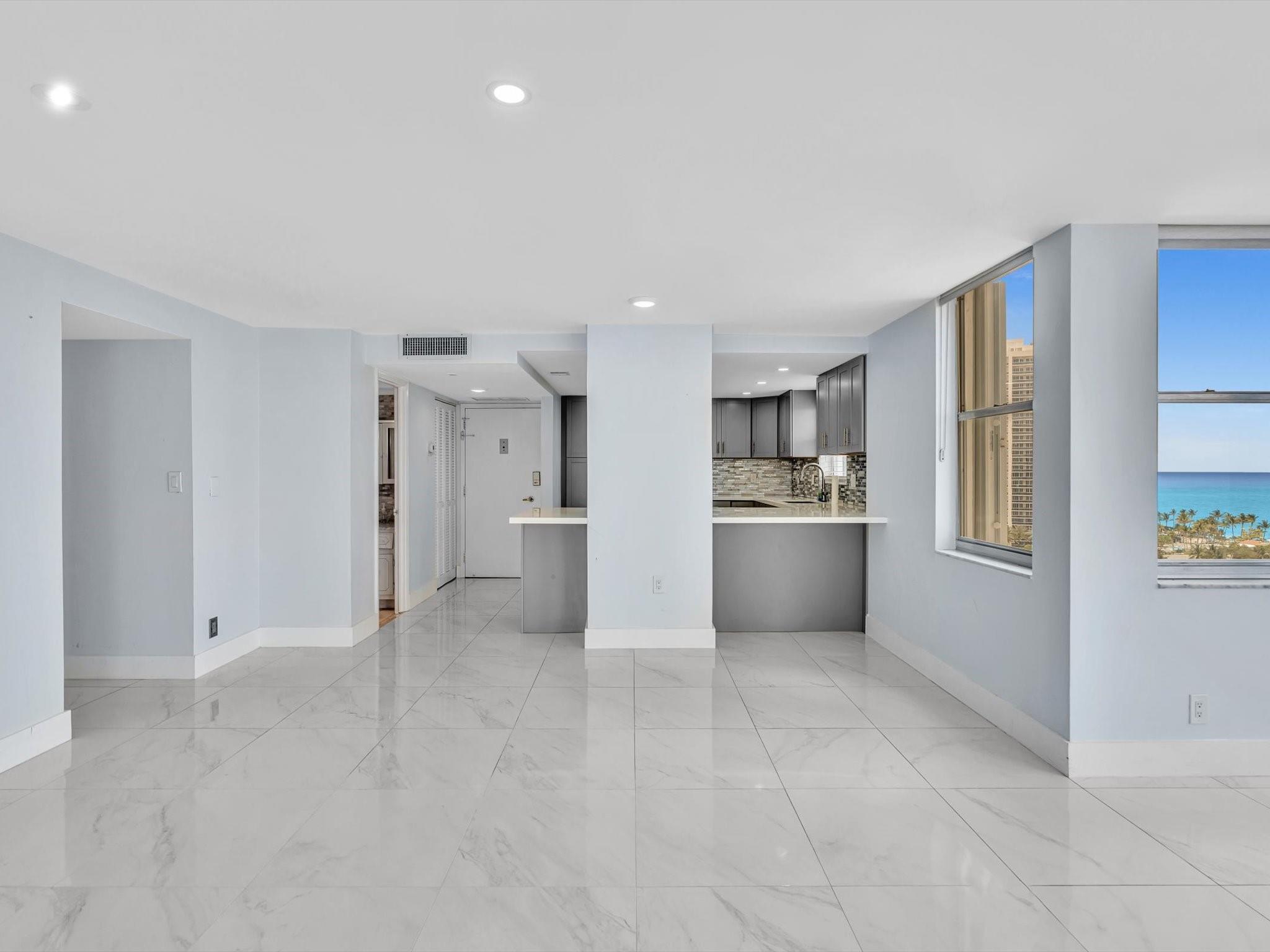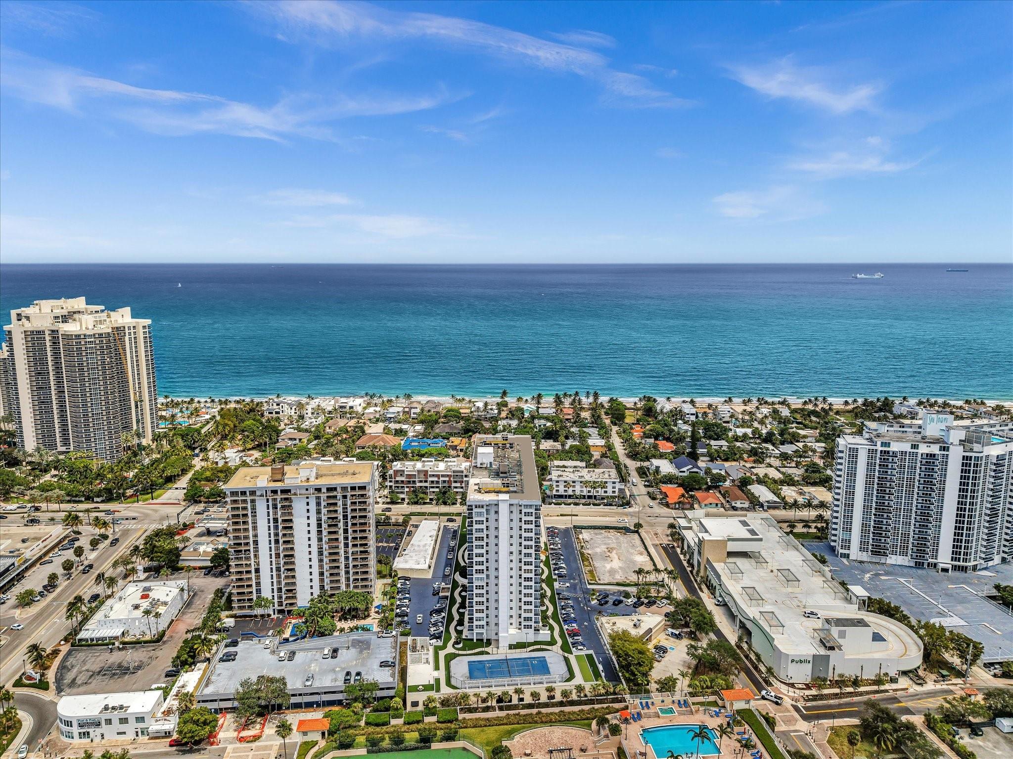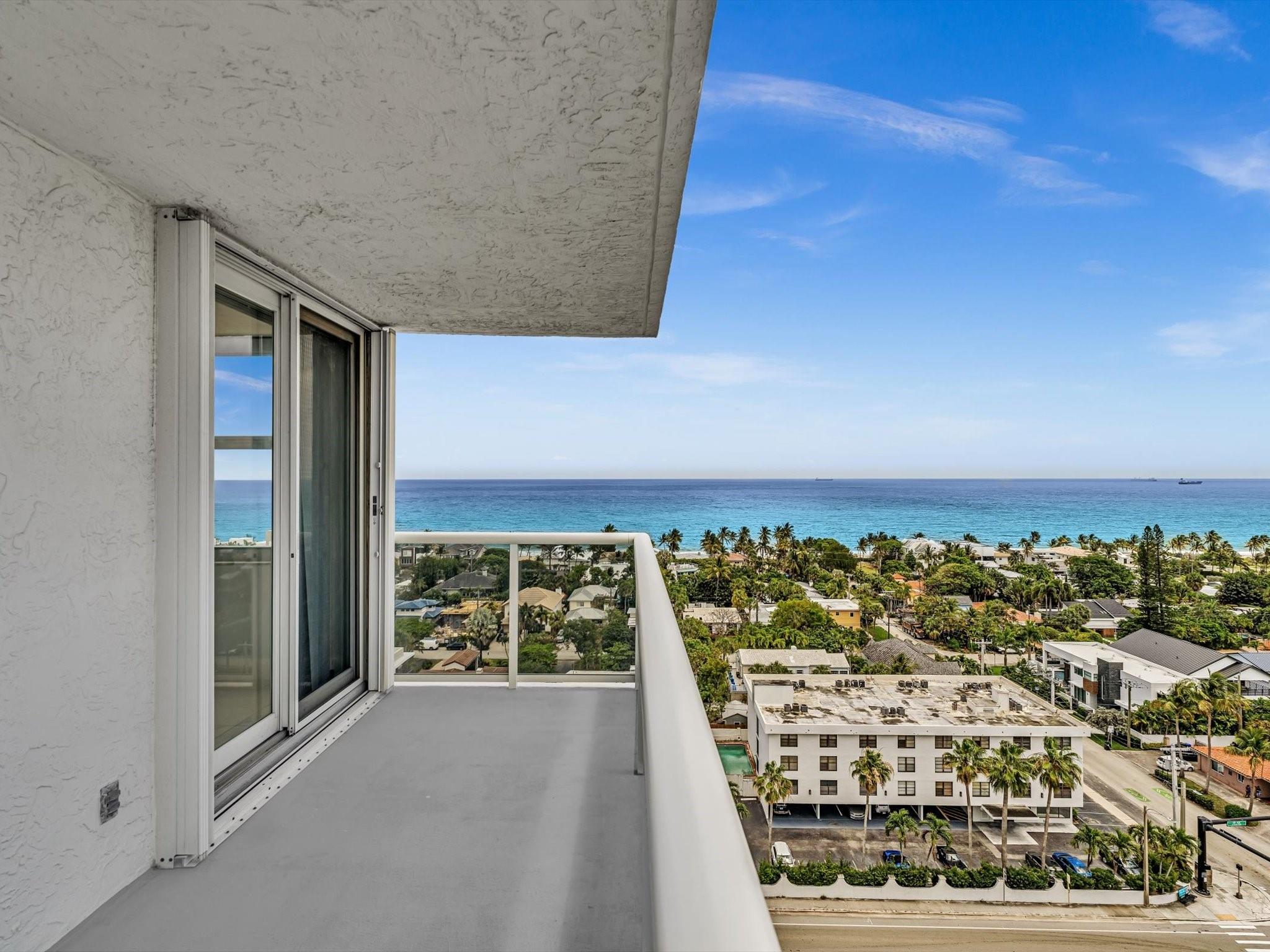 Experience Breathtaking Ocean, Intracoastal, and City views from this 2-bedroom, 2-bath SE Corner 15th floor in Luxury Building. Featuring a sleek modern kitchen with gray shaker cabinets, quartz countertops, glass mosaic backsplash, and stainless steel appliances. This bright, over 1328 Square foot unit includes 1 assigned parking spot and a private storage unit. Building has completed 50 year Recertification , 2025 New Roof, recently remodeled pool, green walkway, updated gym and hallways. Walk Across the street to the New Publix, down the street restaurants and the beach. Seller has contracted for new impact windows to be installed! HOA fee includes, water, sewer, trash pick up, basic cable, high speed internet, pest control. Laundry facility on each floor. Bike storage in the garage.