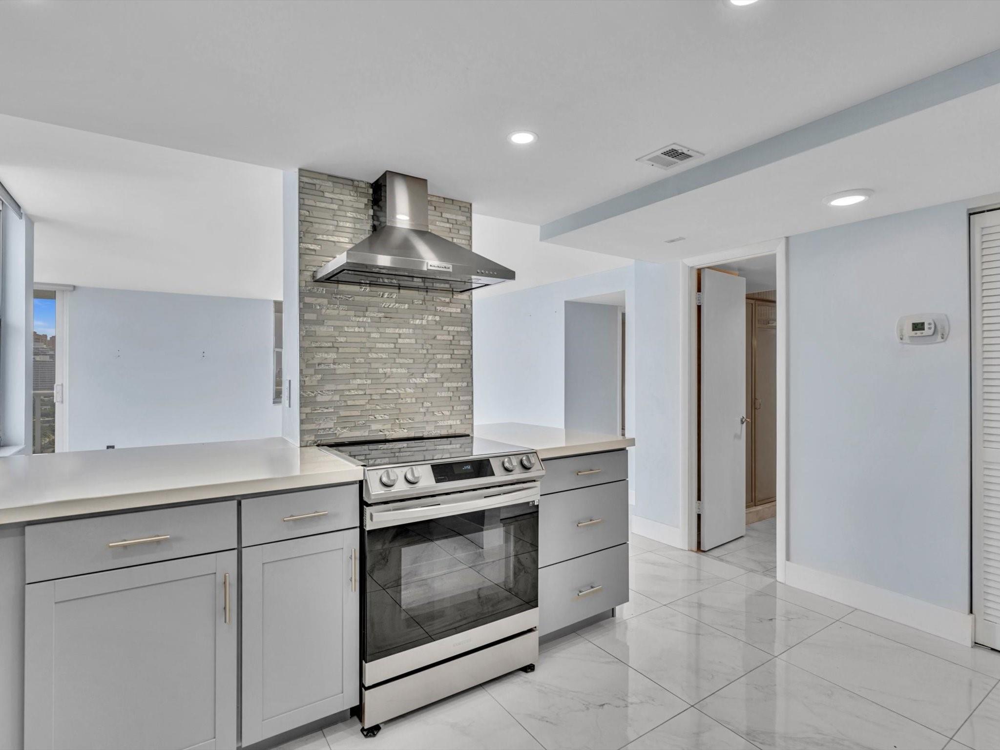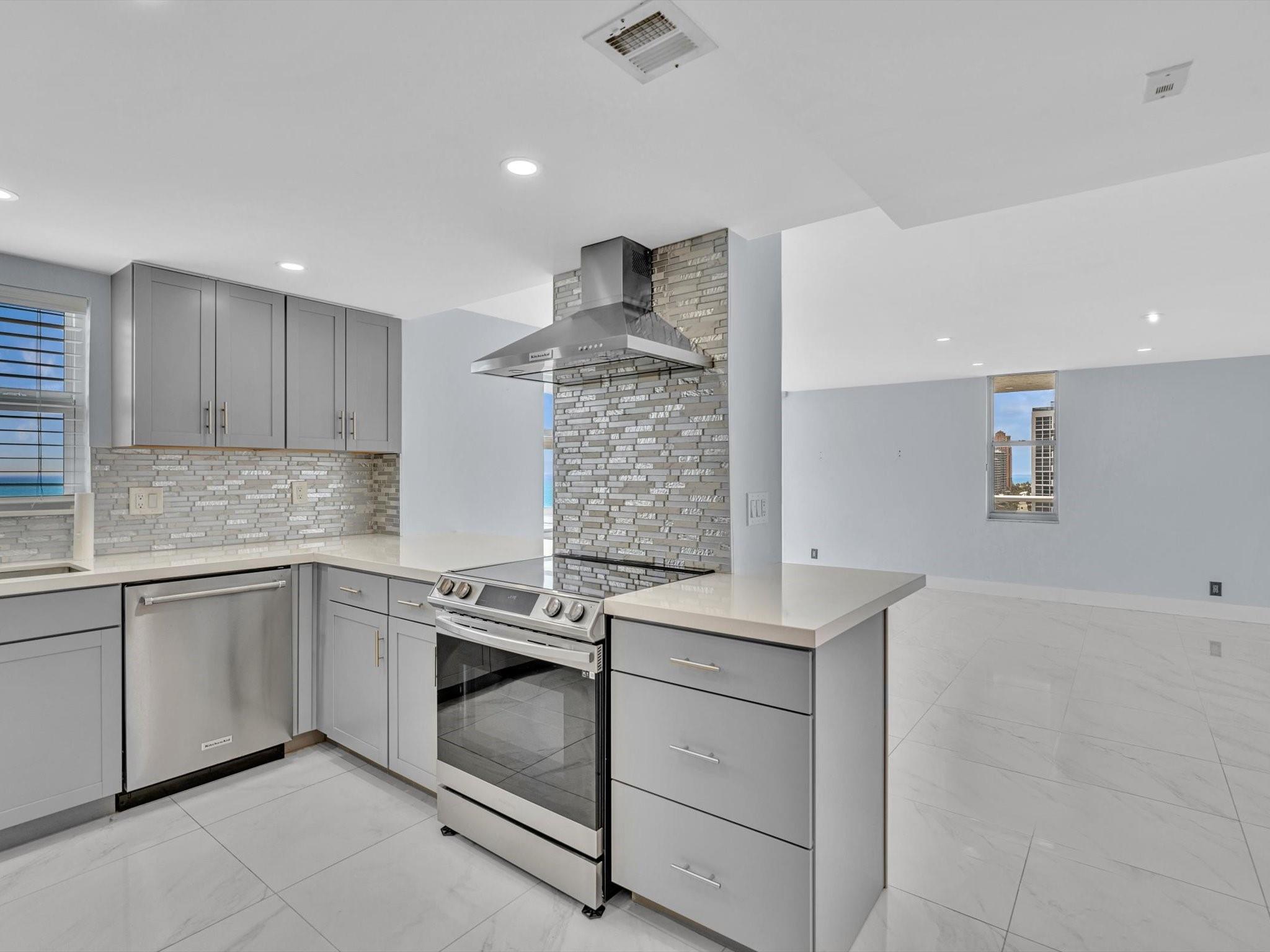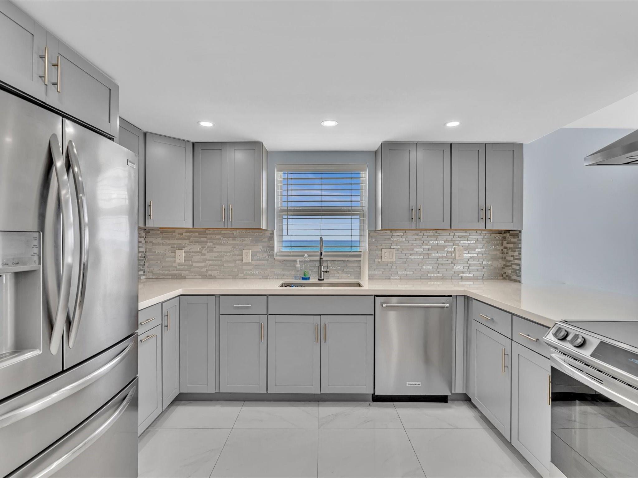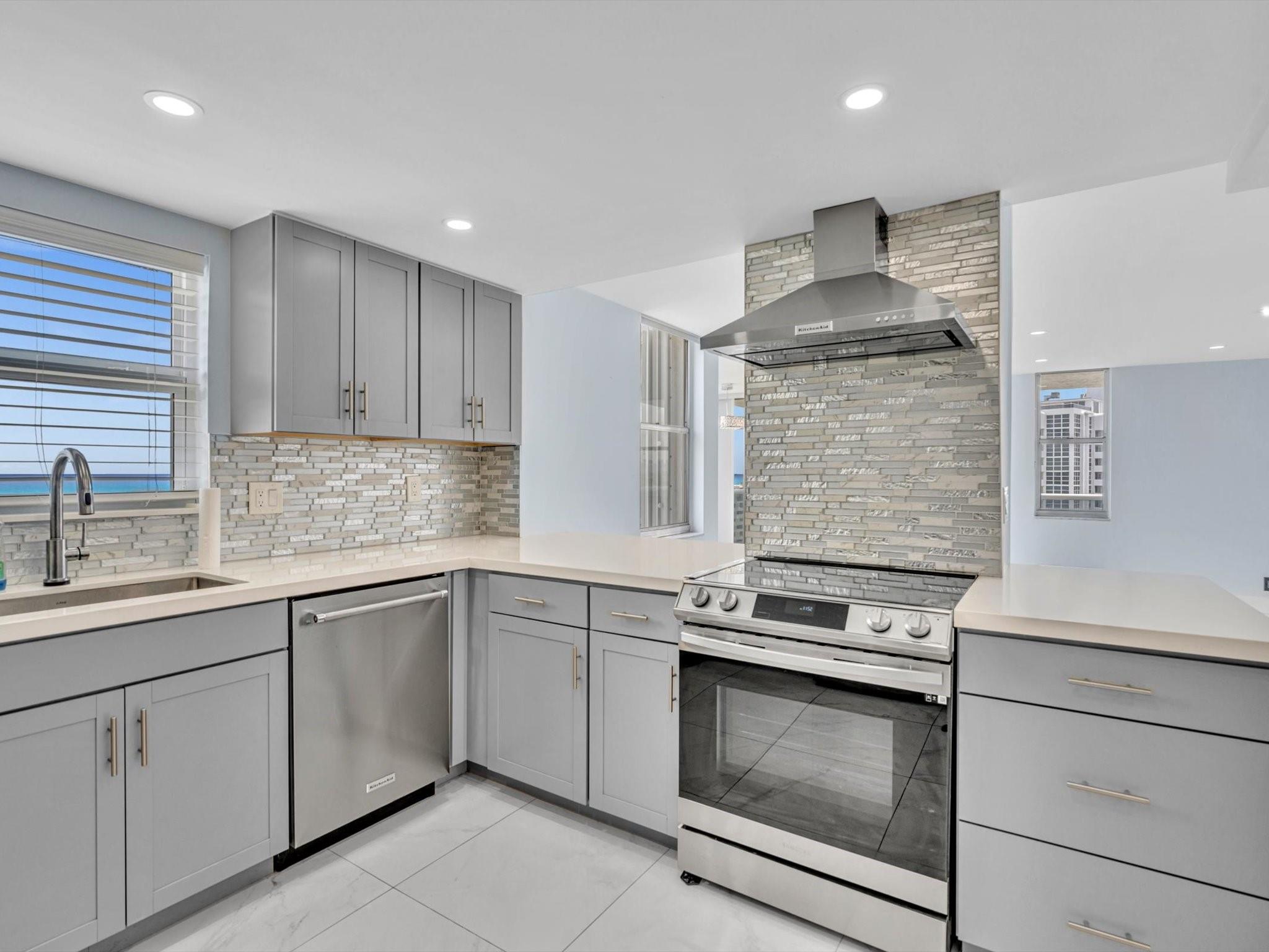 Experience Breathtaking Ocean, Intracoastal, and City views from this 2-bedroom, 2-bath SE Corner 15th floor in Luxury Building. Featuring a sleek modern kitchen with gray shaker cabinets, quartz countertops, glass mosaic backsplash, and stainless steel appliances. This bright, over 1328 Square foot unit includes 1 assigned parking spot and a private storage unit. Building has completed 50 year Recertification , 2025 New Roof, recently remodeled pool, green walkway, updated gym and hallways. Walk Across the street to the New Publix, down the street restaurants and the beach. Seller has contracted for new impact windows to be installed! HOA fee includes, water, sewer, trash pick up, basic cable, high speed internet, pest control. Laundry facility on each floor. Bike storage in the garage.