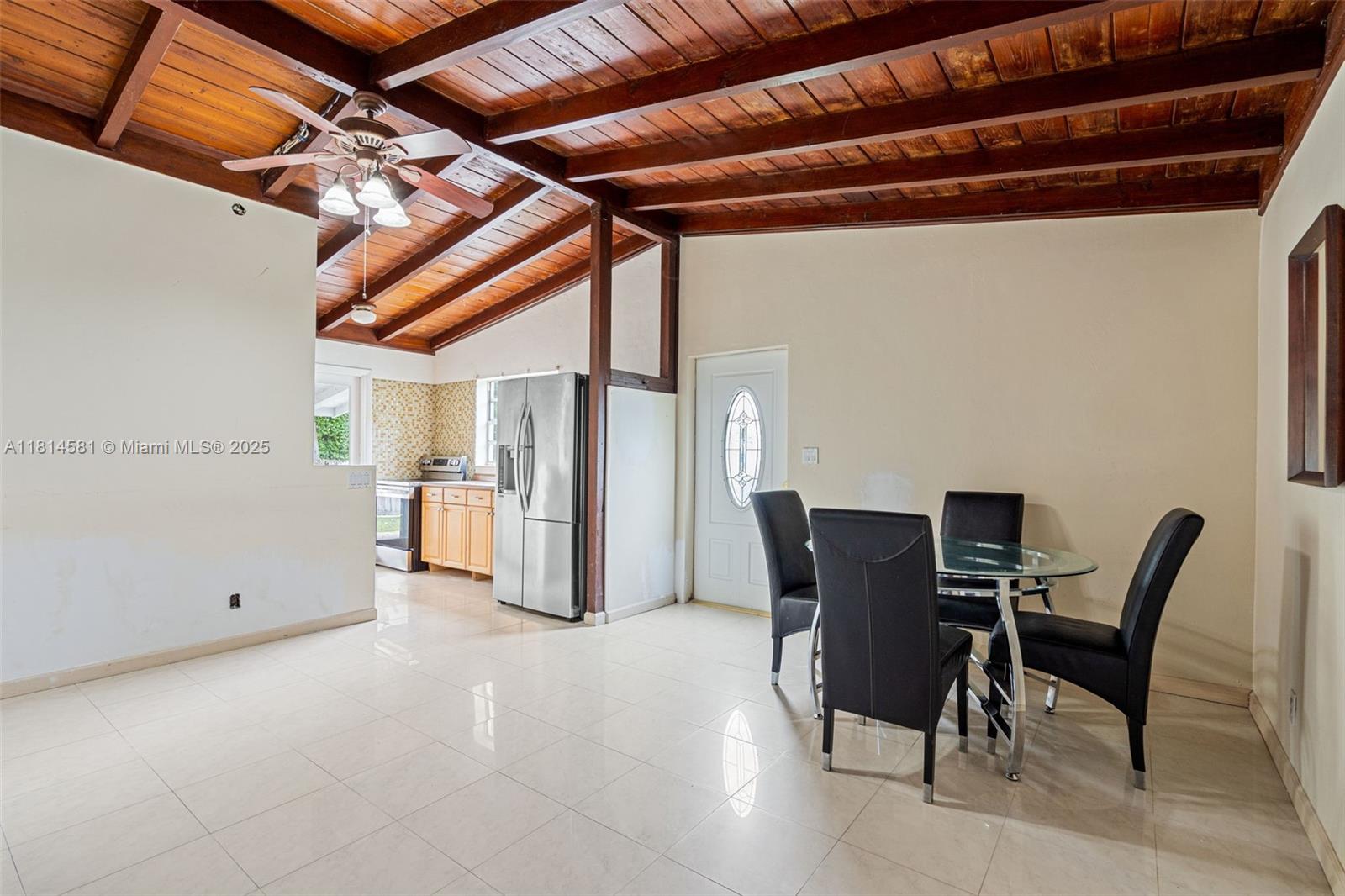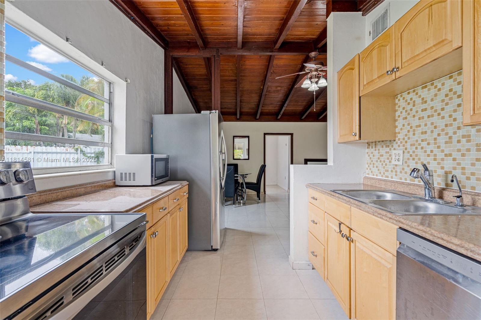 Welcome to this beautifully 3-bedroom, 2-bath family home that seamlessly blends timeless Art Deco character with modern finishes. Soaring cathedral ceilings and an open-concept layout create a spacious and inviting atmosphere. The heart of the home is a stylish, open kitchen designed for functionality and flow, with easy access to a generously sized backyard--ideal for gatherings or your future dream pool. With plenty of on-site parking, convenience is never a concern. Located in the highly desirable Ojus school district, this home offers unbeatable access to I-95, the Turnpike, and all major highways. You're just minutes from top-rated hospitals, universities, dining hotspots, shopping centers--including Aventura Mall--and the beach.
