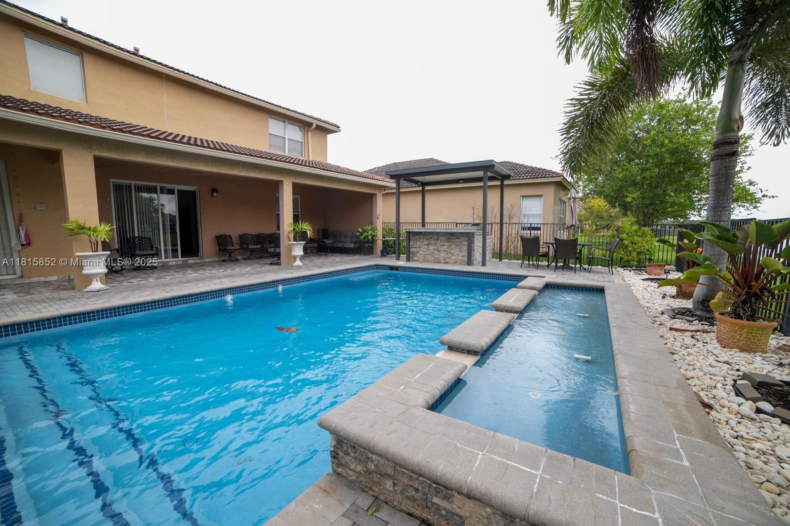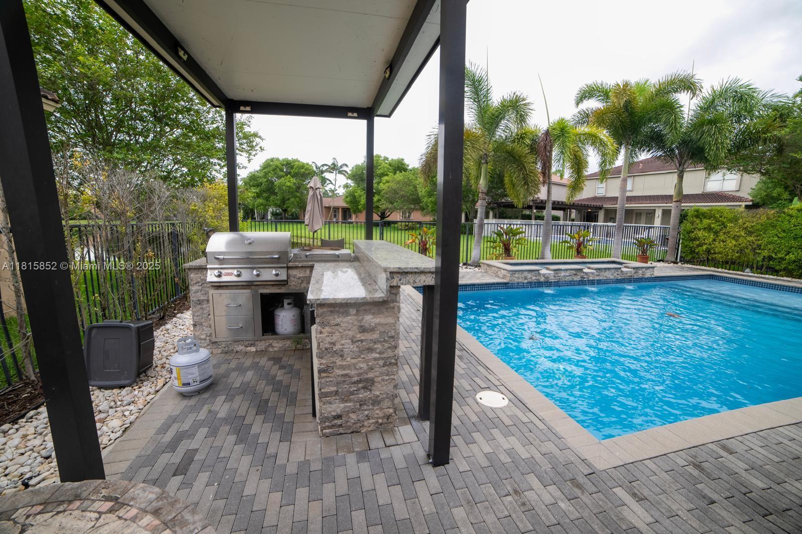 Located in the highly desirable Isles at Weston community, this stunning 5-bedroom, 4-bathroom home. Built in 2006, the home features a bright and open layout, including a chef-inspired kitchen with granite countertops and stainless steel appliances. The first floor includes a guest bedroom and full bath, while the second level offers a spacious loft--perfect for a home office or play area. Step outside to your serene, fenced backyard with relaxing lake views, a custom terrace built in 2018 with beautiful Spanish tile flooring, and a luxurious pool completed in 2020, featuring internal lights and hot water--perfect for day or night enjoyment. Conveniently located near A-rated schools, major highways, shopping, and dining. A true Weston gem!For more info, just send a txt to the listing agent.