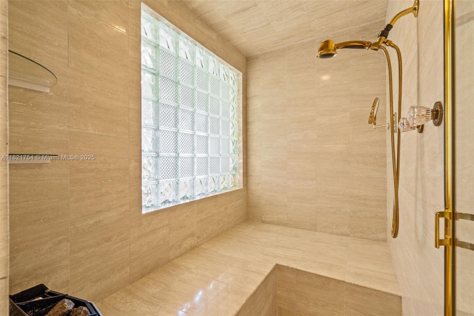 BIGGEST LOT SIZE IN THE NEIGHBORHOOD, Set on a 1/2 acre lot with 143 ft of waterfront. Luxury living in this Waterfront Mediterranean Estate in prestigious Hallandale Beach. The Estate offers direct ocean access via a 30-ft deep, 250-ft wide canal and a private dock for a yacht. Perfect for boaters, golfers, and beach lovers, just steps from the renowned Shell Bay Golf Course formerly known as Diplomat. Enjoy resort style amenities: A pool, hot tub, steam room, sauna, and lush landscaping. The home features a gated entrance, 5 suites , 7 bathrooms, 3 car garage, circular driveway, oversized master suite with dual walk-in closets, and a chef's kitchen with stunning water views. The executive office/library completes this dream home.
