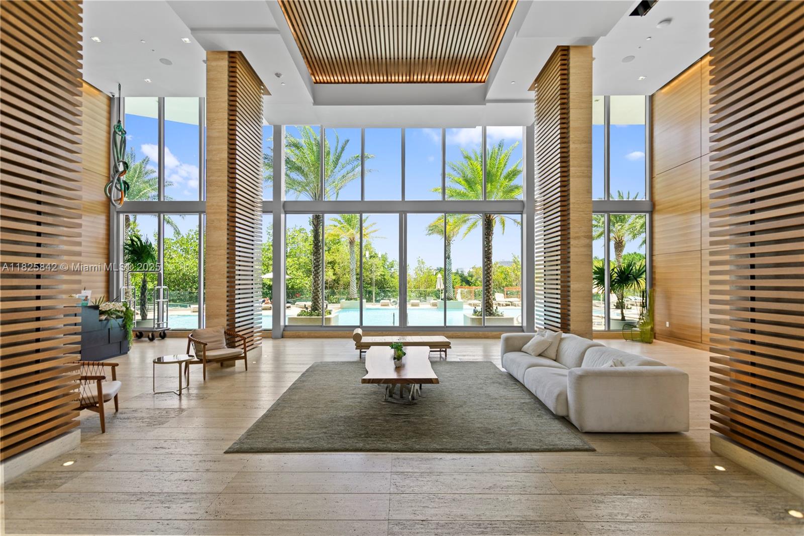 Contemporary Ocean View Living. This 2 bedroom plus den is the best of all worlds. Tile floors, quartz countertops, custom blinds, open kitchen, spacious balcony, floor-to-ceiling windows with ocean views. Enjoy the amenities such as a morning juice bar, gym , dance studio, spa with massage services, library-game area, gathering area , and open WiFi work area, semi-private elevators, beach sun tanning, water sport launch area, and private entry vestibule. The perfect City living building. 1 mile to the beach, 1 mile to the Brightline station, 1 mile to Aventura Mall, Restaurants, and Supermarkets.
