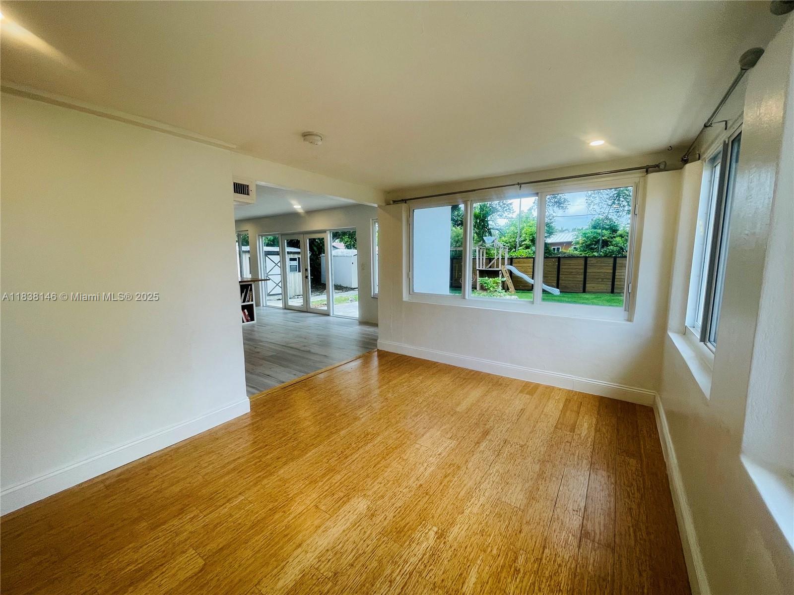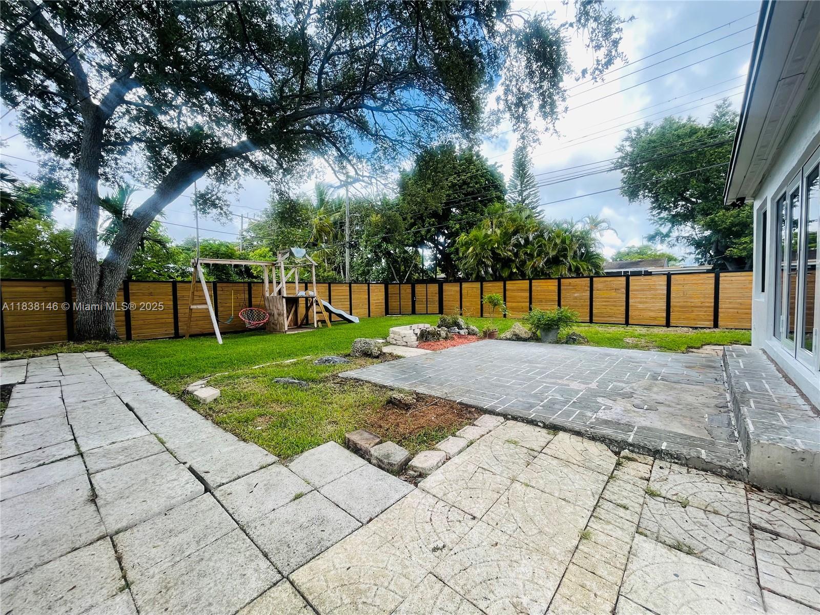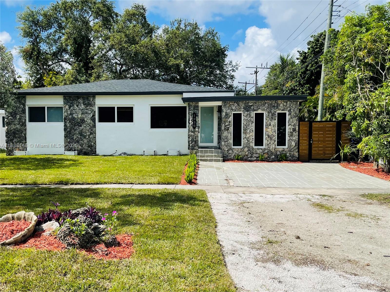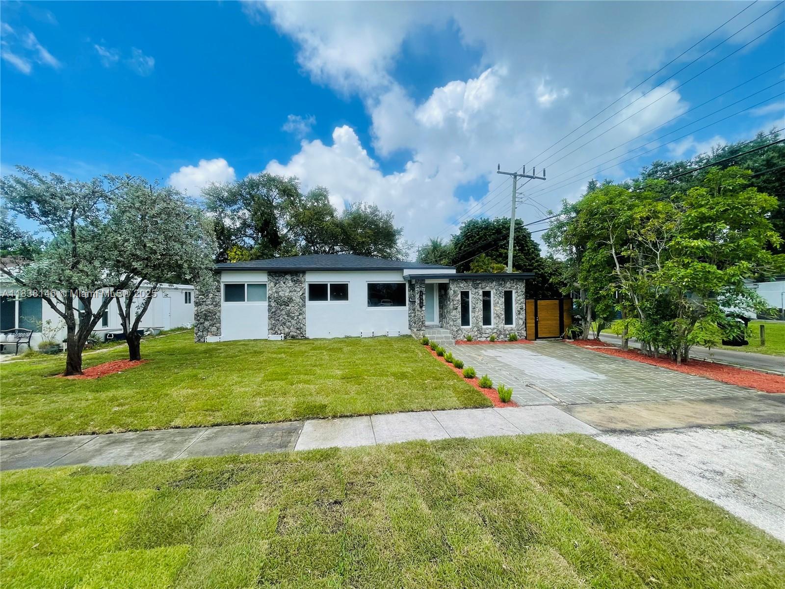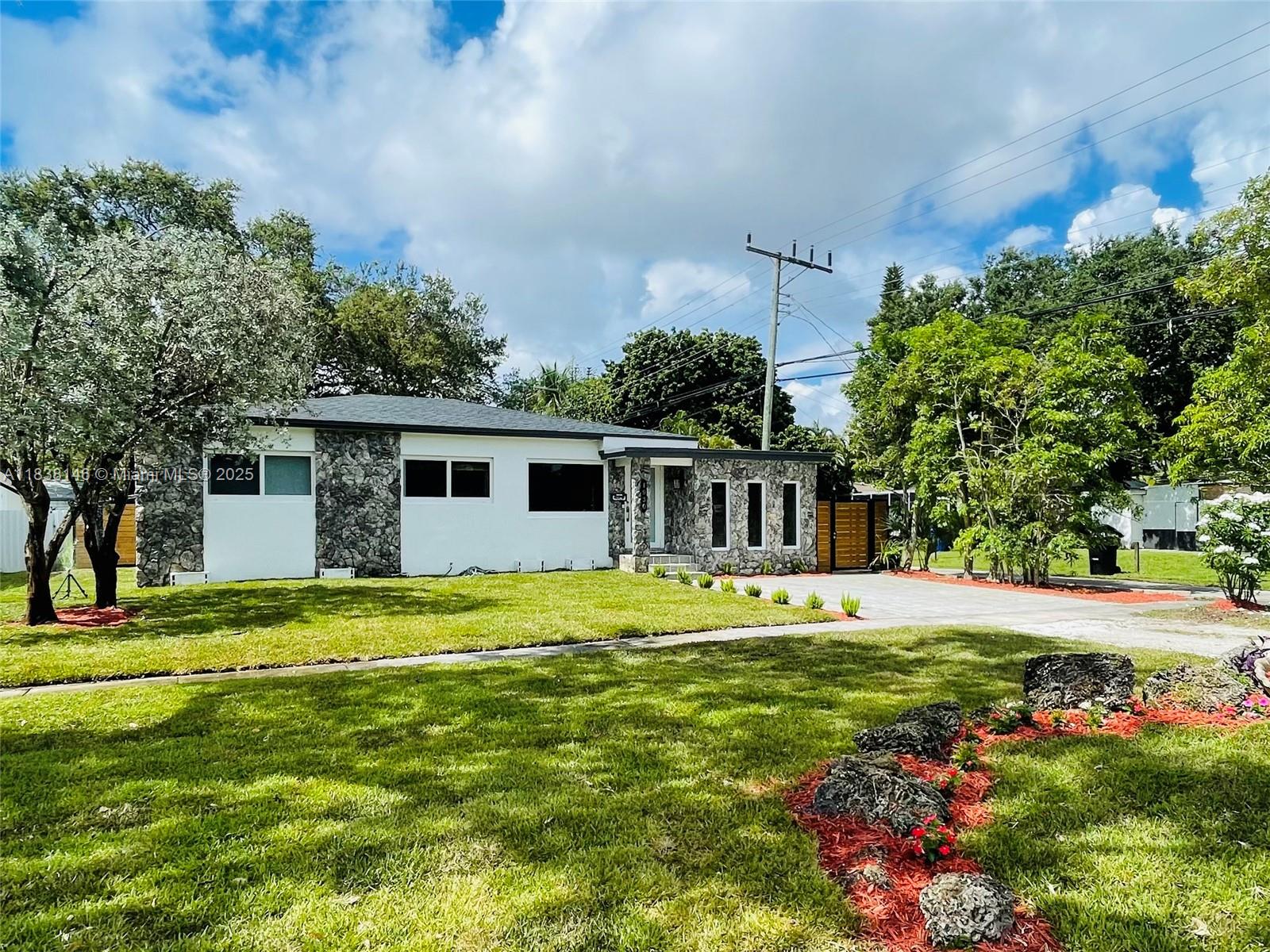 WELCOME TO THIS BRIGHT OPEN FLOOR PLAN, 1,799 SQFT LIVING SPACE ENJOY PEACE OF MIND WITH IMPACT WINDOWS & DOORS, AS WELL AS NEW AC UNIT, NEW ROOF. ENGINEERED WOOD FLOOR IN LIVING AREA, DEN, BEDROOMS, TILE FLOORING IN KITCHEN, DEN. HOME FEATURES 3 BR, 2 BA, PRIMARY SUITE SPA-LIKE BATHROOM. THIRD BEDROOM IS CURRENTLY USED AS A TV ROOM THAT OPENS TO THE KITCHEN AREA. NEW OPEN KITCHEN DESIGN WITH CENTER ISLAND, ADJACENT EAT-IN AREA, SORROUNDED BY GLASS DOORS LEADING TO LARGE BACKYARD WITH MATURED TREES. THIS PROPERTY IS FULLY ENCLOSED WITH PRIVATE WOODEN FENCE, LARGE DOUBLE GATES IN THE REAR & ALLEYWAYS ON ONE SIDE & EXTERIOR BACK, FEELING LIKE A CORNER LOT WITH FULL PRIVACY FROM NEIGHBORS. HALF A BLOCK FROM GOLF COURSE, WALKING DISTANCE TO SHOPS & DINING, JUST A SHORT DRIVE FROM AVENTURA MALL