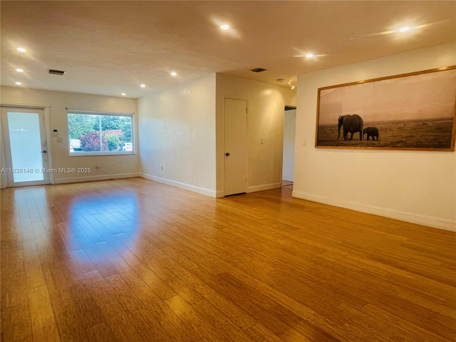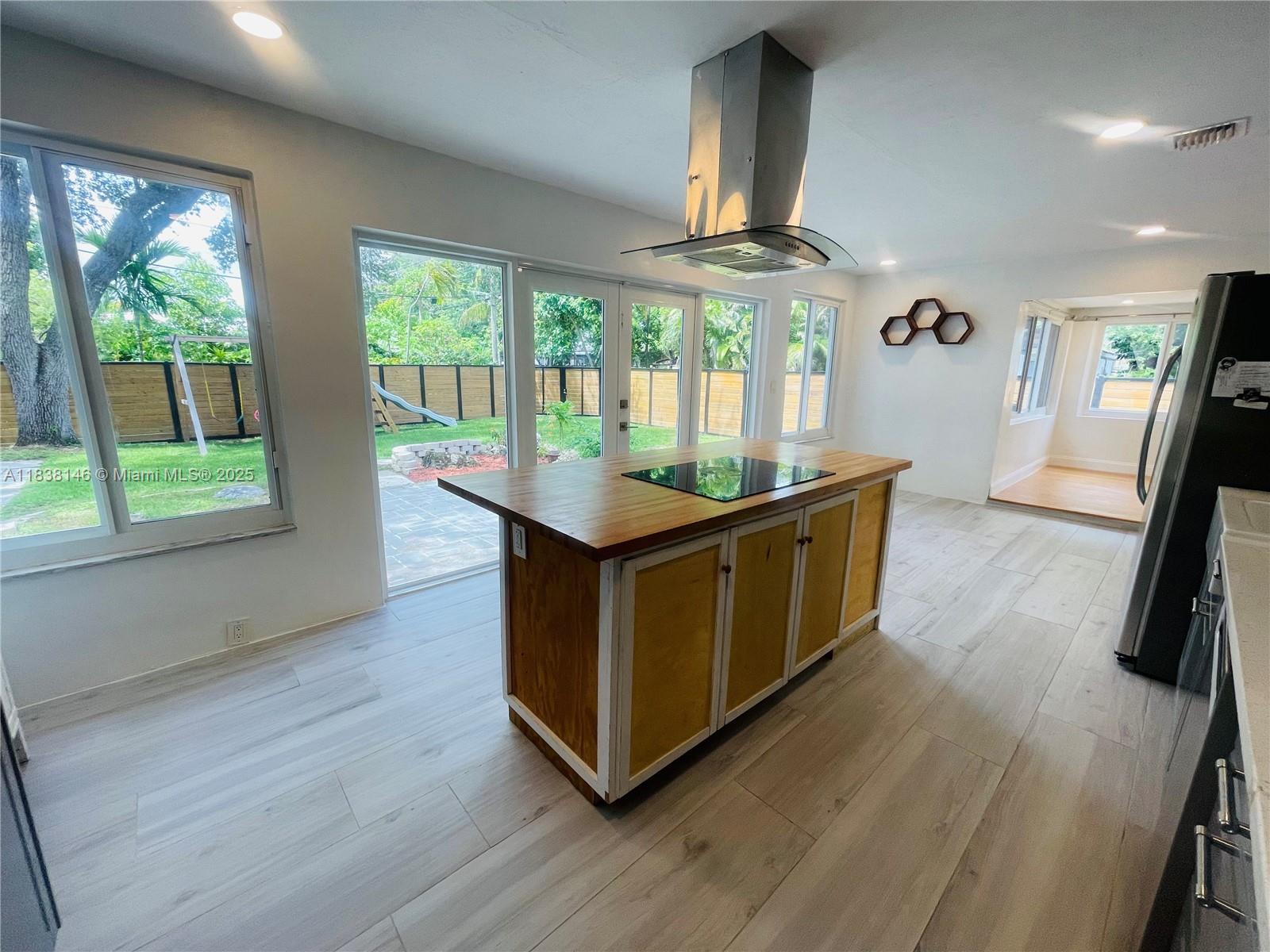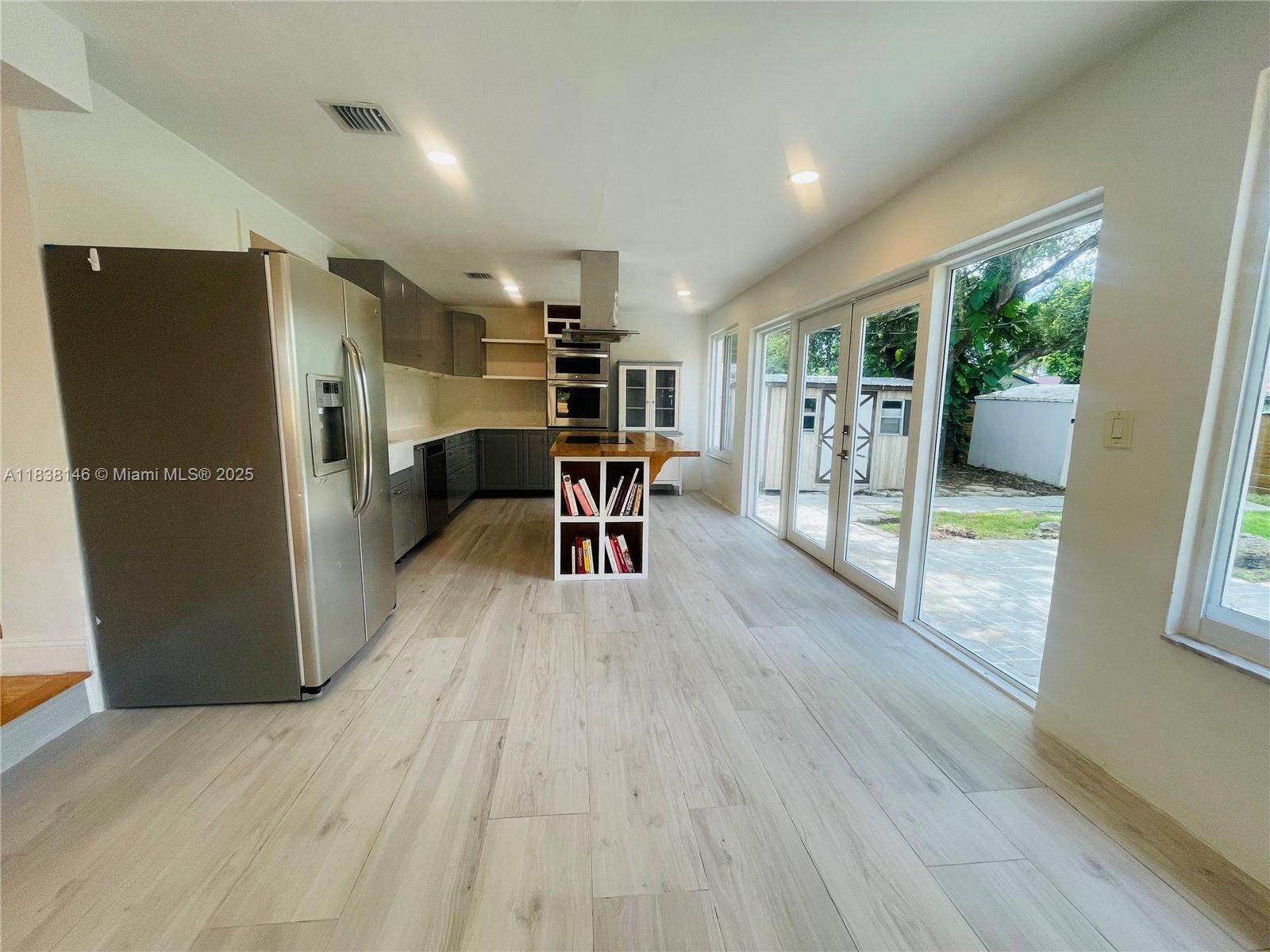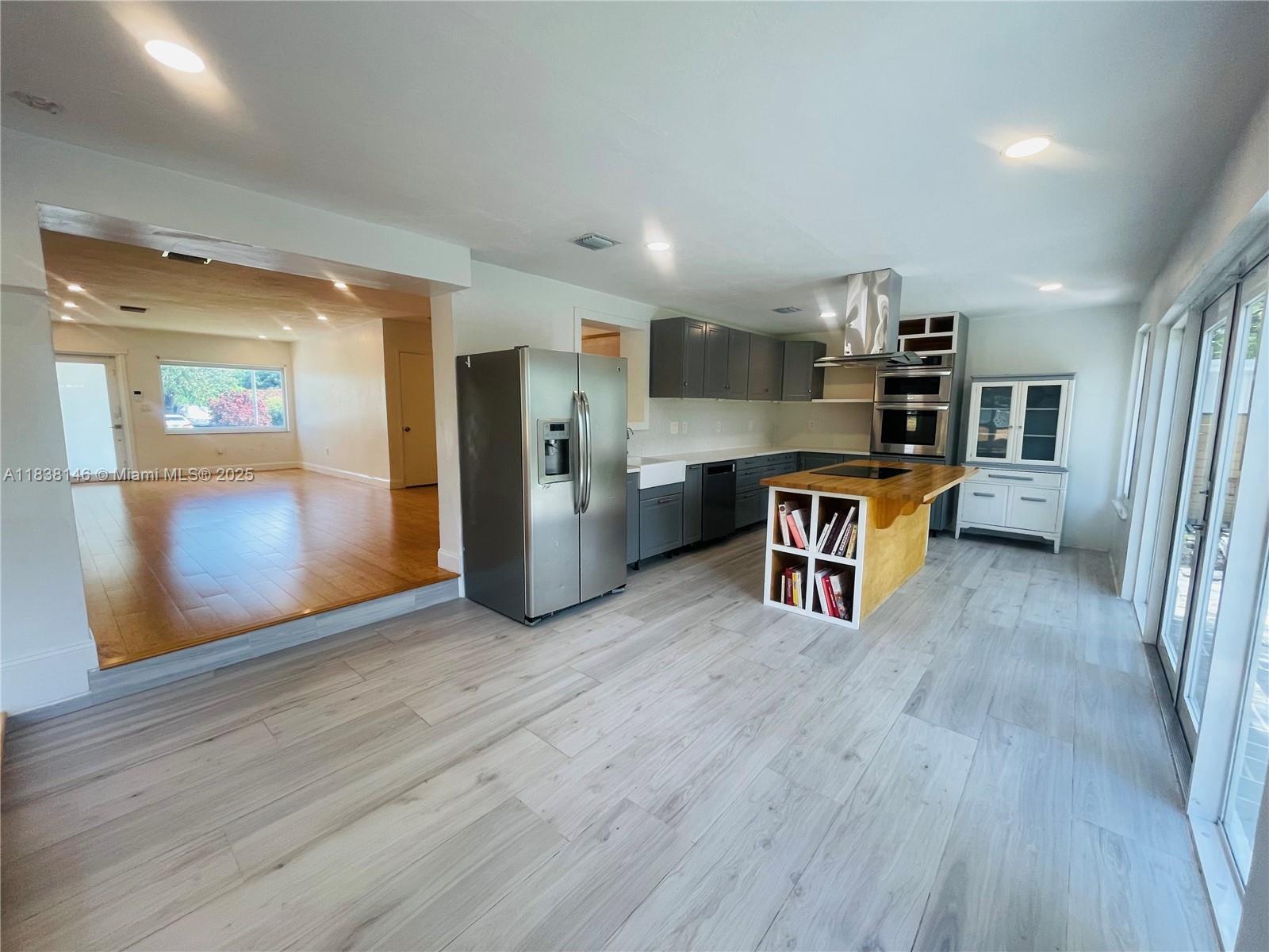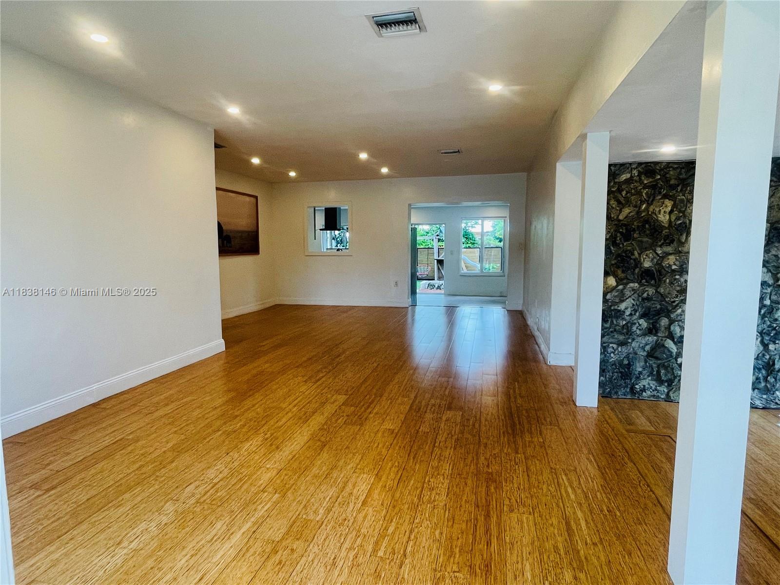 WELCOME TO THIS BRIGHT OPEN FLOOR PLAN, 1,799 SQFT LIVING SPACE ENJOY PEACE OF MIND WITH IMPACT WINDOWS & DOORS, AS WELL AS NEW AC UNIT, NEW ROOF. ENGINEERED WOOD FLOOR IN LIVING AREA, DEN, BEDROOMS, TILE FLOORING IN KITCHEN, DEN. HOME FEATURES 3 BR, 2 BA, PRIMARY SUITE SPA-LIKE BATHROOM. THIRD BEDROOM IS CURRENTLY USED AS A TV ROOM THAT OPENS TO THE KITCHEN AREA. NEW OPEN KITCHEN DESIGN WITH CENTER ISLAND, ADJACENT EAT-IN AREA, SORROUNDED BY GLASS DOORS LEADING TO LARGE BACKYARD WITH MATURED TREES. THIS PROPERTY IS FULLY ENCLOSED WITH PRIVATE WOODEN FENCE, LARGE DOUBLE GATES IN THE REAR & ALLEYWAYS ON ONE SIDE & EXTERIOR BACK, FEELING LIKE A CORNER LOT WITH FULL PRIVACY FROM NEIGHBORS. HALF A BLOCK FROM GOLF COURSE, WALKING DISTANCE TO SHOPS & DINING, JUST A SHORT DRIVE FROM AVENTURA MALL