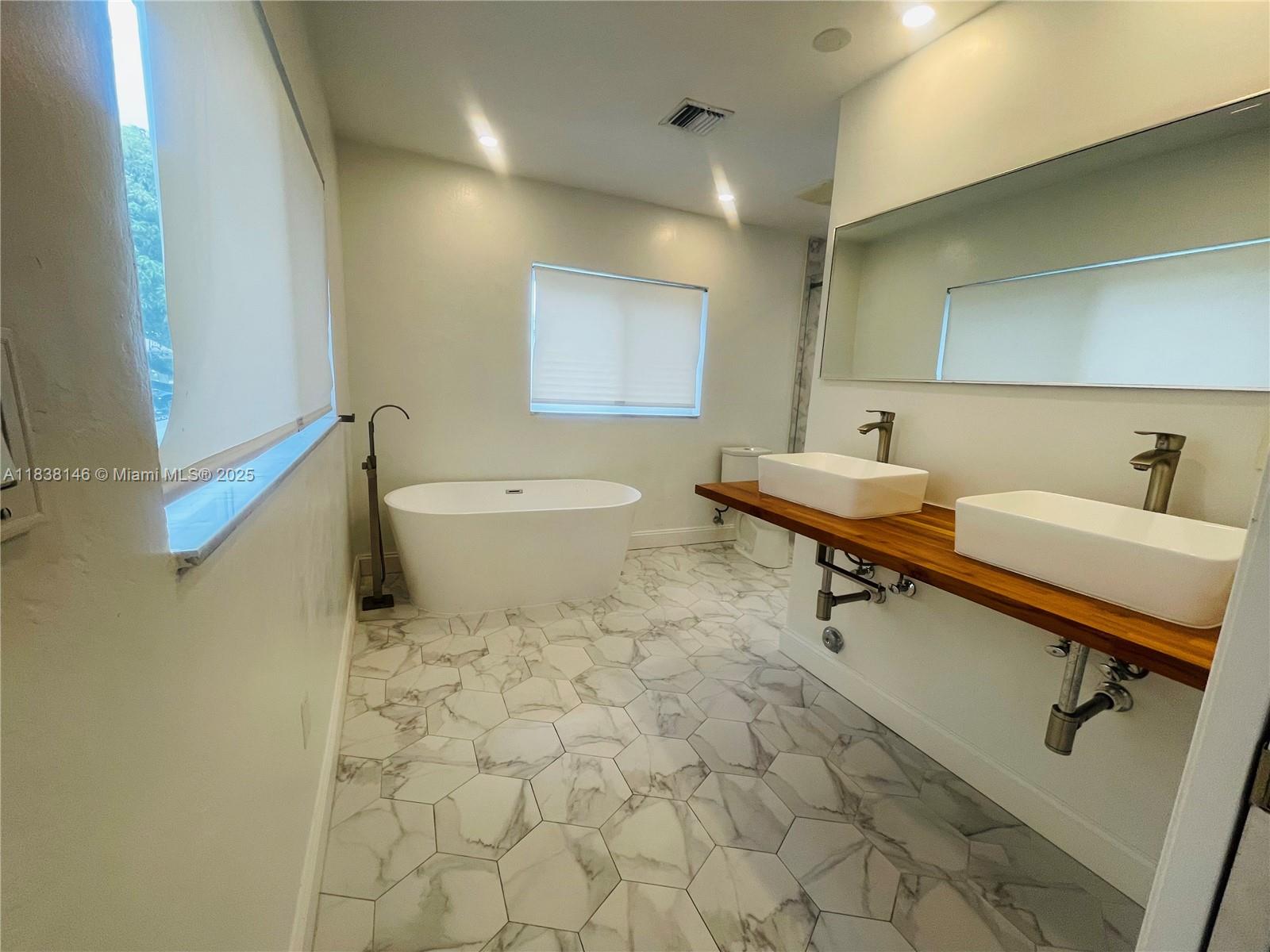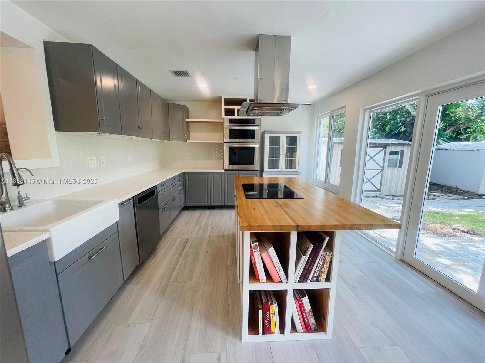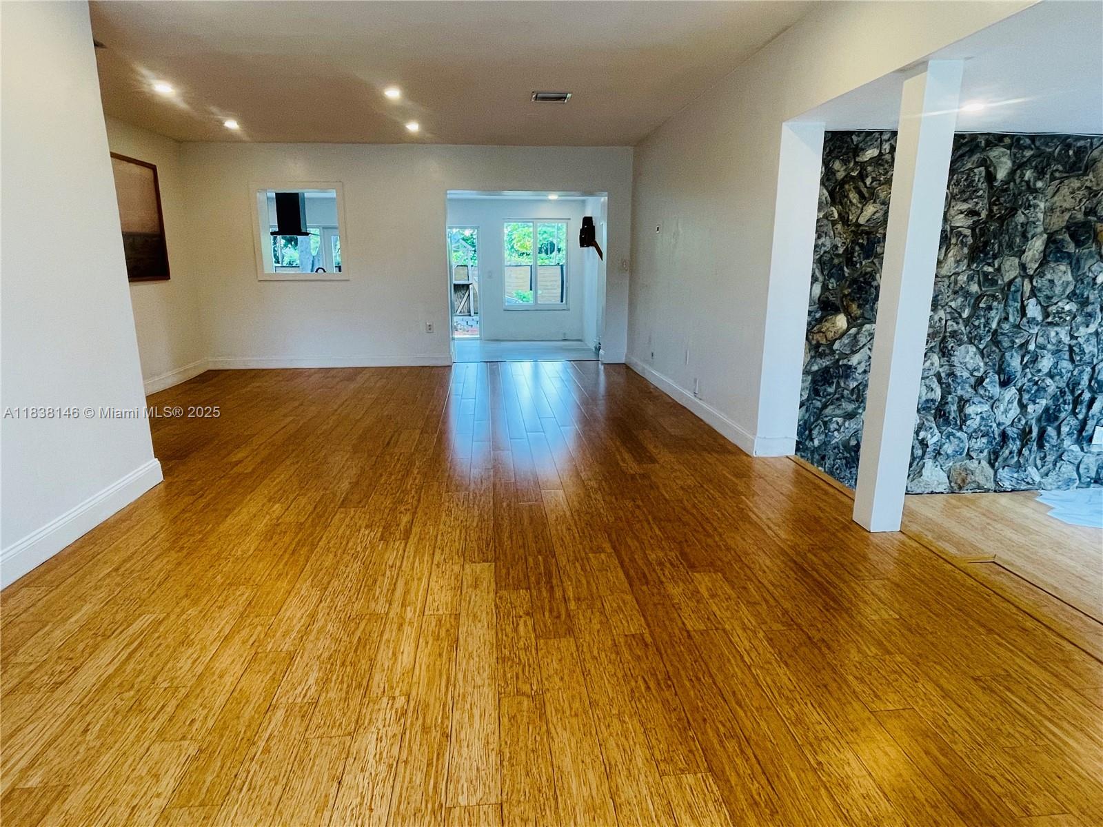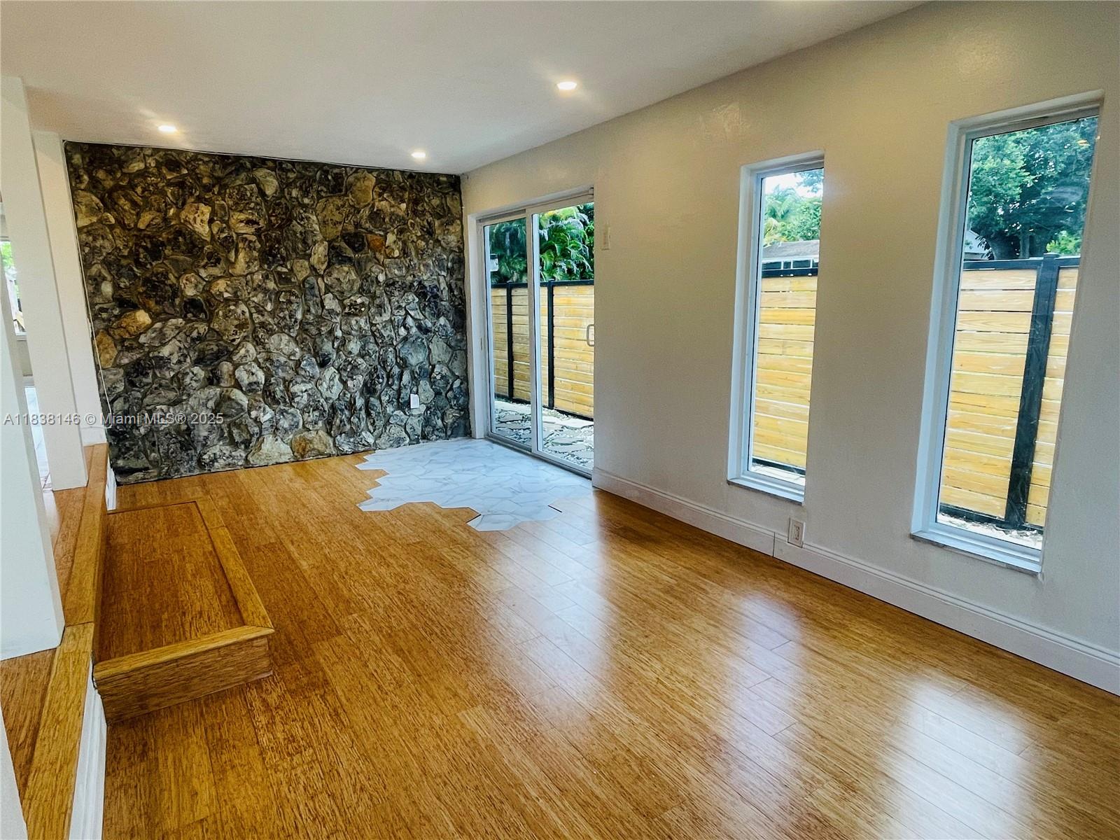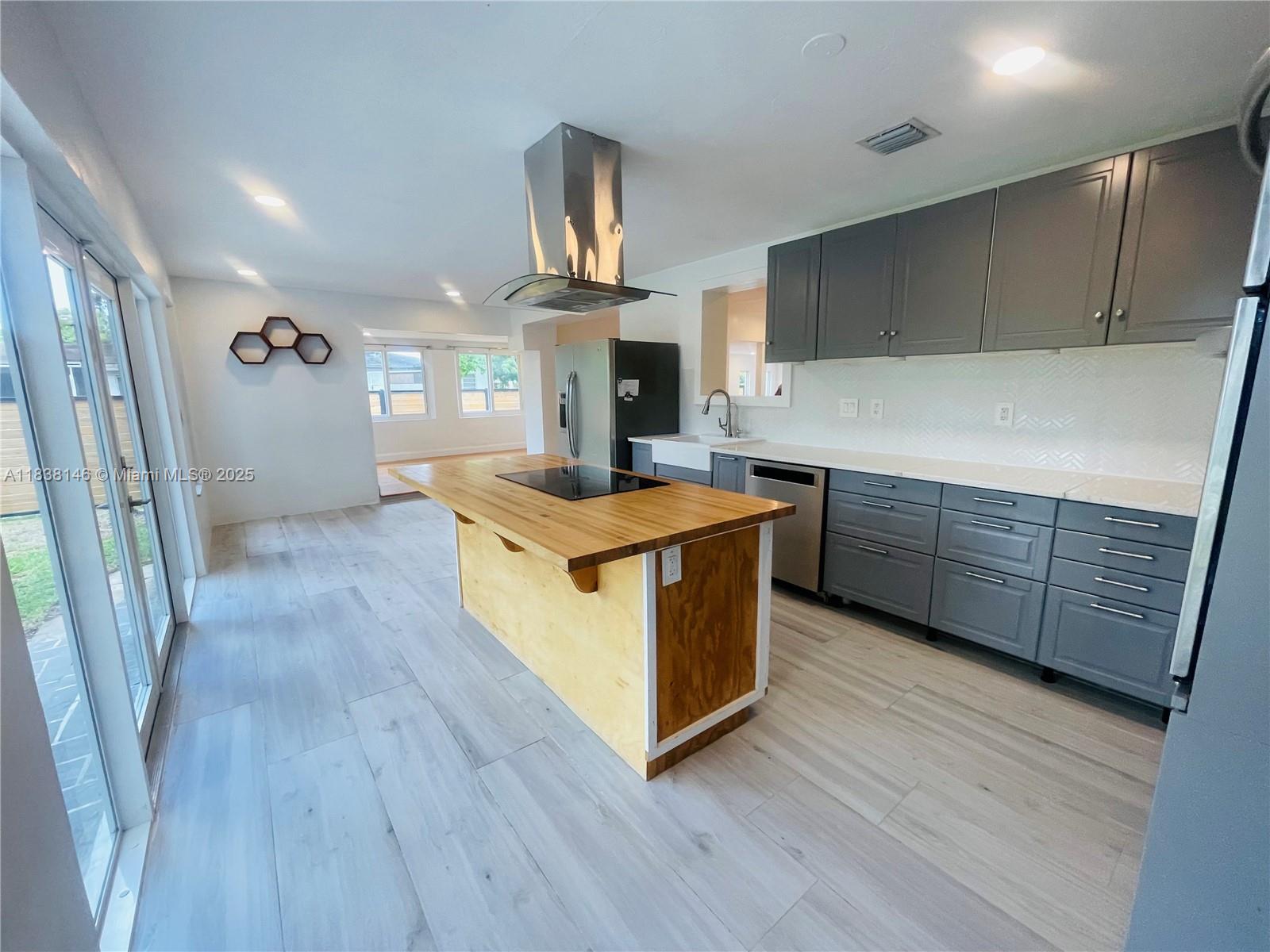 WELCOME TO THIS BRIGHT OPEN FLOOR PLAN, 1,799 SQFT LIVING SPACE ENJOY PEACE OF MIND WITH IMPACT WINDOWS & DOORS, AS WELL AS NEW AC UNIT, NEW ROOF. ENGINEERED WOOD FLOOR IN LIVING AREA, DEN, BEDROOMS, TILE FLOORING IN KITCHEN, DEN. HOME FEATURES 3 BR, 2 BA, PRIMARY SUITE SPA-LIKE BATHROOM. THIRD BEDROOM IS CURRENTLY USED AS A TV ROOM THAT OPENS TO THE KITCHEN AREA. NEW OPEN KITCHEN DESIGN WITH CENTER ISLAND, ADJACENT EAT-IN AREA, SORROUNDED BY GLASS DOORS LEADING TO LARGE BACKYARD WITH MATURED TREES. THIS PROPERTY IS FULLY ENCLOSED WITH PRIVATE WOODEN FENCE, LARGE DOUBLE GATES IN THE REAR & ALLEYWAYS ON ONE SIDE & EXTERIOR BACK, FEELING LIKE A CORNER LOT WITH FULL PRIVACY FROM NEIGHBORS. HALF A BLOCK FROM GOLF COURSE, WALKING DISTANCE TO SHOPS & DINING, JUST A SHORT DRIVE FROM AVENTURA MALL