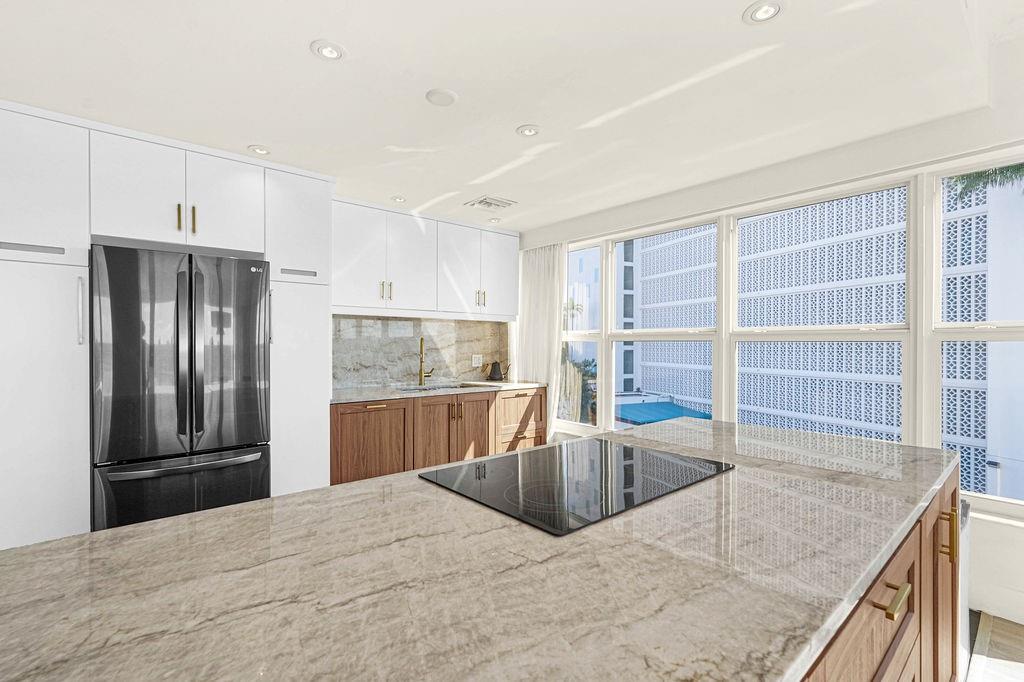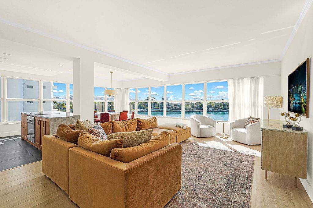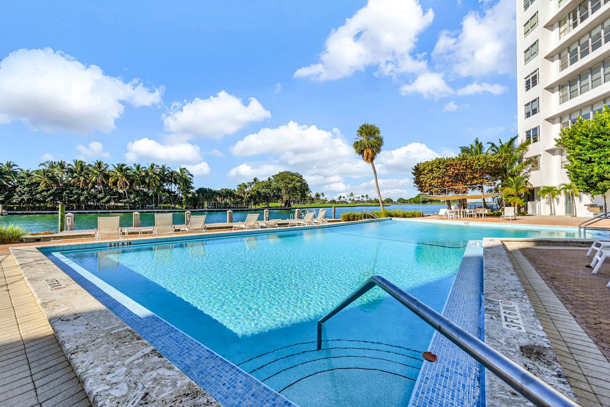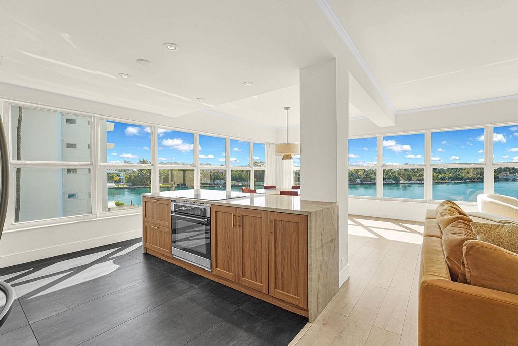 Radiant water/sky-line/golf course views from this 1,770 SF 3BD/3BA unit at Blair House, a waterfront icon on the southernmost point of the island. Wide open floor plan, showered w/ natural light; 9' ceilings; fully redone. Designed by Herbert Matthes in 1959 (Fontainebleau/Standard Hotels) Blair House exemplifies MiMo architecture at its finest, exuding the glamour/fun of the era. Owners are modernizing/moving building forward functionally while sustaining its heritage & creative integrity. Walkability score=10 Steps to worship houses, kid/dog parks, beach, business districts, Bal Harbour Shops, A-rating public school.