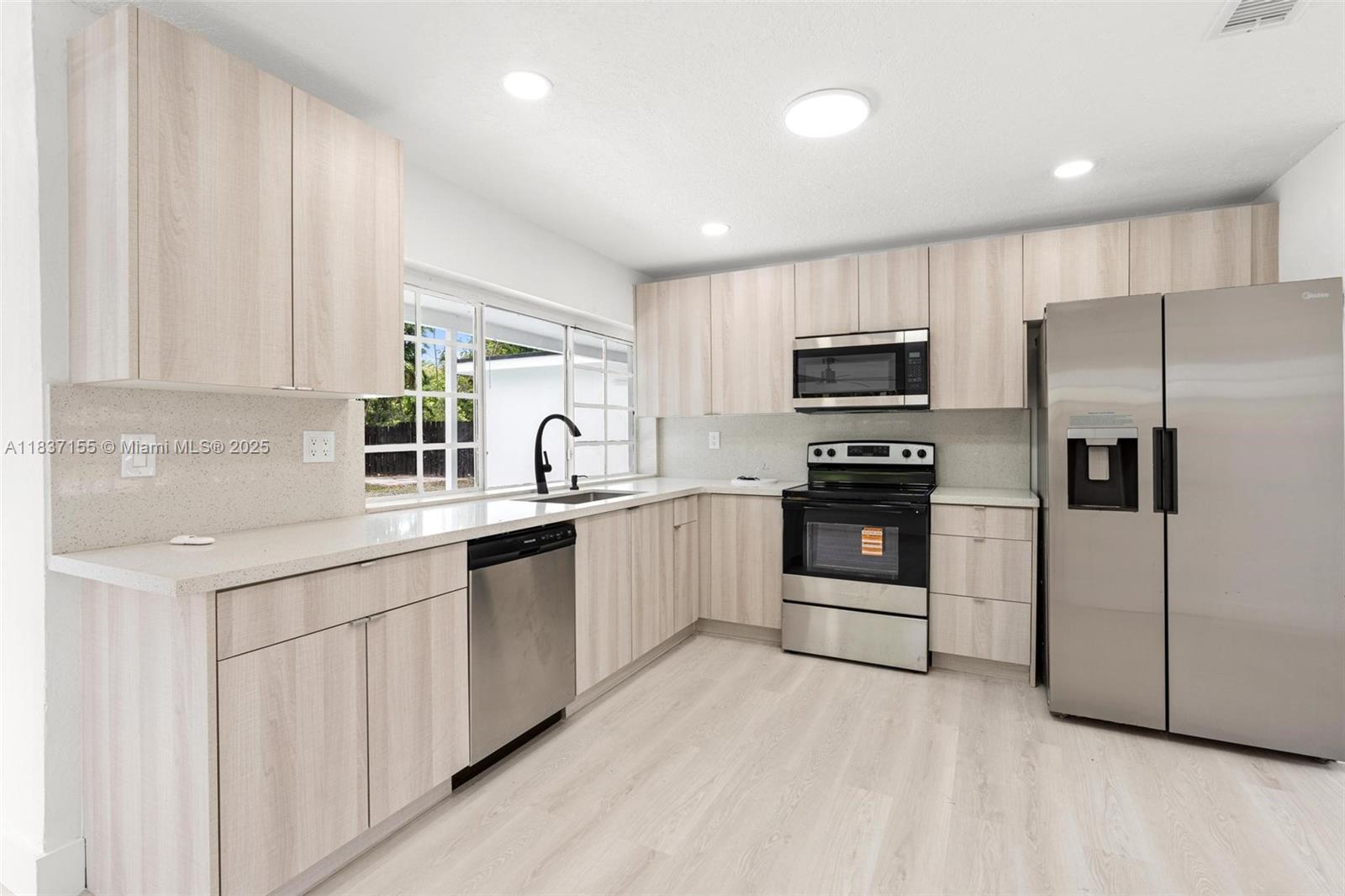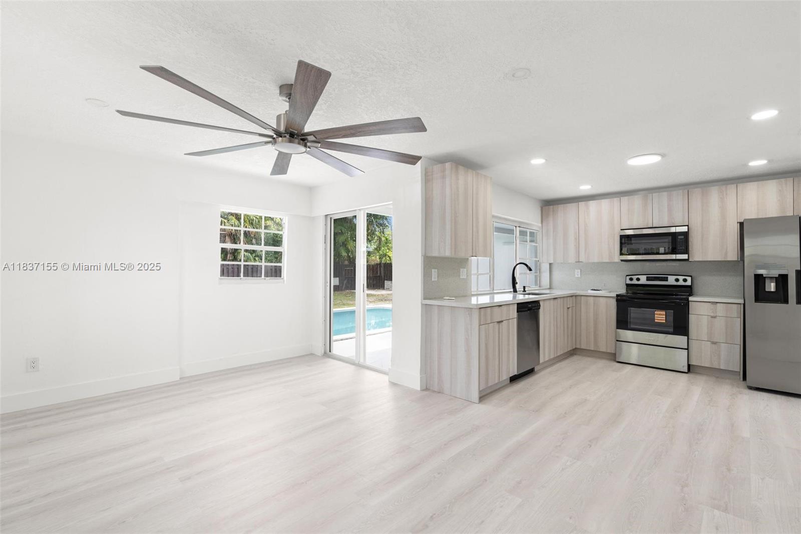 SELLER IS OFFERING $5,000 TO BUYERS CLOSING COSTS. Welcome to this beautifully fully remodeled, NO HOA home in the highly sought-after Sunrise Golf Village! This move-in-ready property features all brand-new upgrades, including a NEW roof, kitchen with new appliances, electric water heater, bathrooms, flooring, interior doors, closets, and both interior and exterior lighting. It also boasts a HUGE NEW 5-ton AC unit and a NEW GARAGE door. Pool has been completely resurfaced and beautifully tiled. The interior, exterior, and fencing have all been freshly painted, giving the home a clean and modern feel throughout. Sitting on an oversized CORNER LOT, this property includes a gated rear entry with plenty of space to park your BOAT, RV, OR BOTH.