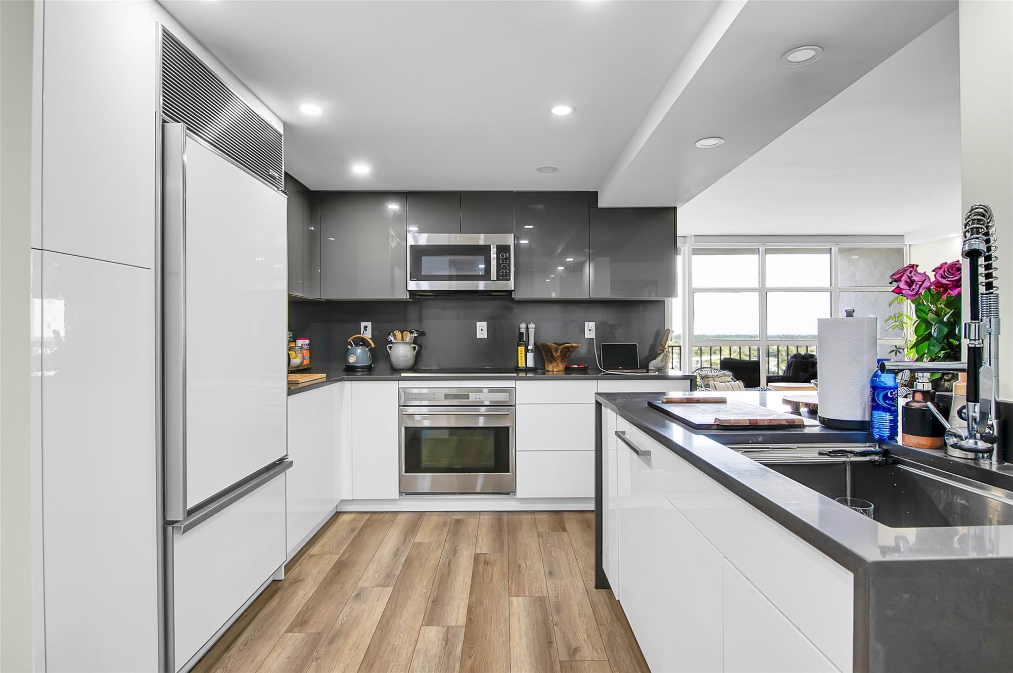 Gorgeous 2BD/2BA with Stunning City Views! Beautifully renovated with floor-to-ceiling windows and endless city views. Featuring a brand-new kitchen with Quartz countertops, Sub-Zero fridge, and high-end S/S appliances. New A/C, Italian vinyl flooring, and walk-in closets. Upgraded Bathrooms and recessed lighting throughout. Over $75K in upgrades! Prime Three Islands location—minutes to beach, shops, and restaurants. 40 years Certification currently in process.... new elevators, concrete restorations, modernization of electrical panels & HVAC. . Can be rented after 1year of ownership. First lease period must be two years in length and building only allows 10% of the units be leased at one time.