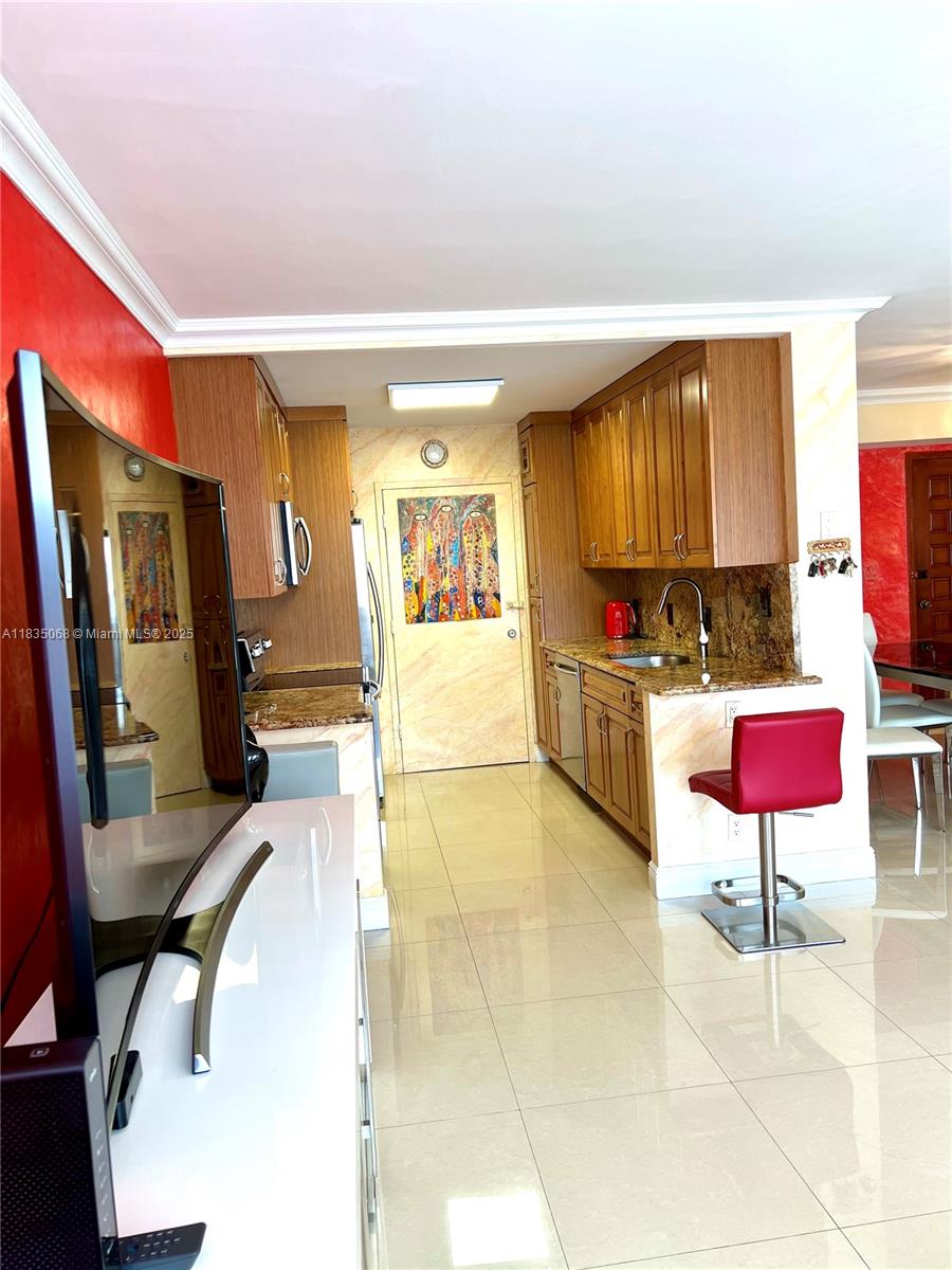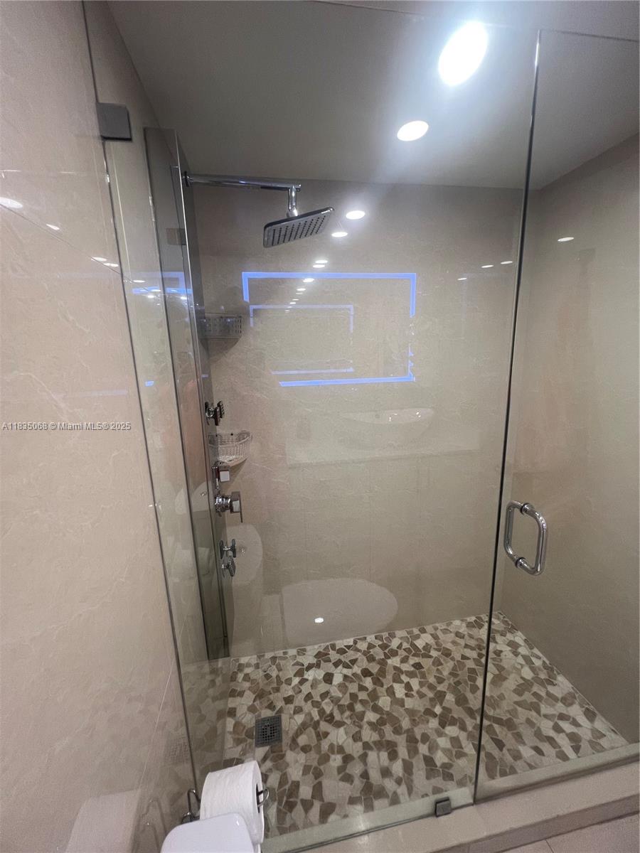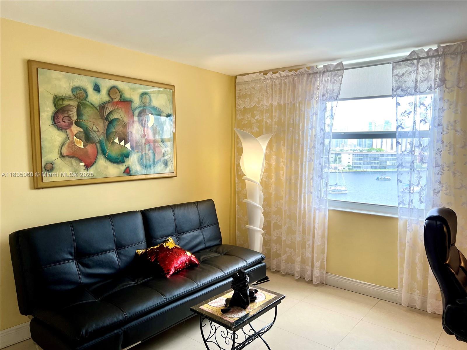 Stunning Fully Renovated 2-Bed/2-Bath.Step Beautifully renovated waterfront apartment Porcelain floors, a custom kitchen with natural wood cabinetry, and two spa-inspired bathrooms with walk-in showers and premium Toto fixtures.The second bedroom—currently styled as a modern office—can easily be converted into a full-size guest room. Water views from your finished private balcony. Fully paid assessment Option to purchase fully furnished, including high-end designer furniture and statement chandeliers,Impact glass, new HVAC system, and new water heater. Heated pool and community dock. 1 mile to the beach; close to shops, restaurants, and banks.Bbuilding with new roof and completed 40-year certification. leasing after 3 years of ownership 1x/year, mini. 6 months Showing Time by appointment