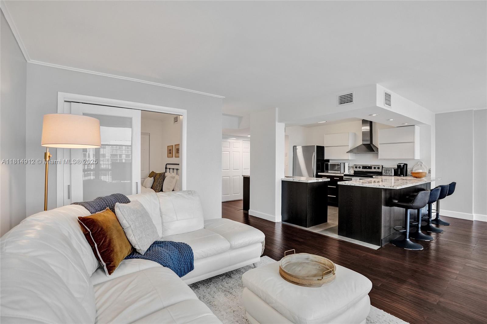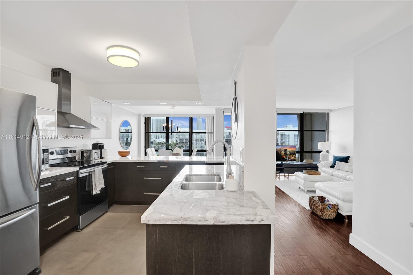 Stunning fully renovated condo with breathtaking views of the Intracoastal and pool area. Designed with style and comfort in mind, this bright unit features a modern open-concept kitchen with sleek stainless steel appliances and elegant granite countertops. The den has been smartly converted into a second bedroom, maximizing space and functionality. Sold fully furnished with beautiful, turnkey décor – just bring your suitcase! The building offers 24-hour security, a gorgeous waterfront pool, a well-equipped gym, and tennis courts. Prime location just minutes from the beach, grocery stores, restaurants, and shops – the perfect Florida lifestyle awaits!
