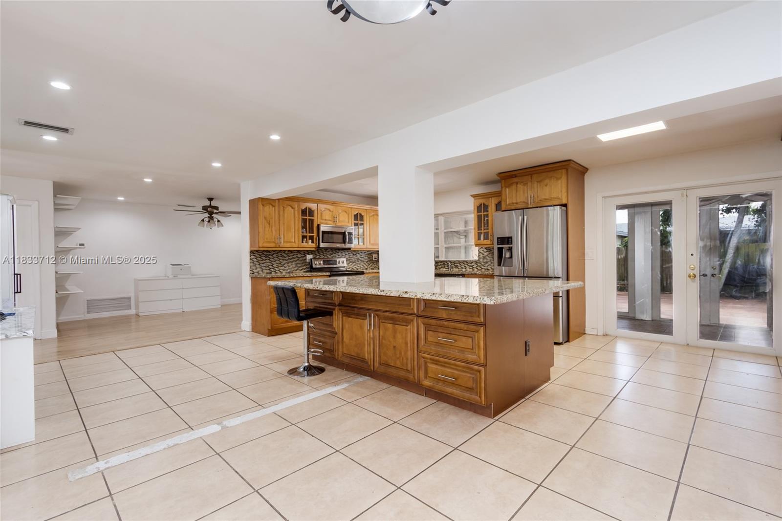 Single-family home located in central Pembroke Pines. Four bedrooms three bathrooms single family home which includes a one bedroom/one bathroom efficiency with its own private entrance. Efficiency would be ideal for in-law quarters, guest cottage or income opportunity. Open remodeled kitchen with granite countertops and ample dark colored cabinets, plenty of storage. Kitchen opens to living and family rooms and leads to enclosed patio, making a great space for entertaining and family gatherings. 7500 square feet fenced lot. Two car garage with circular driveway with ample parking. Location offers easy access to educational institutes, restaurants, highways and shops. No HOA.
