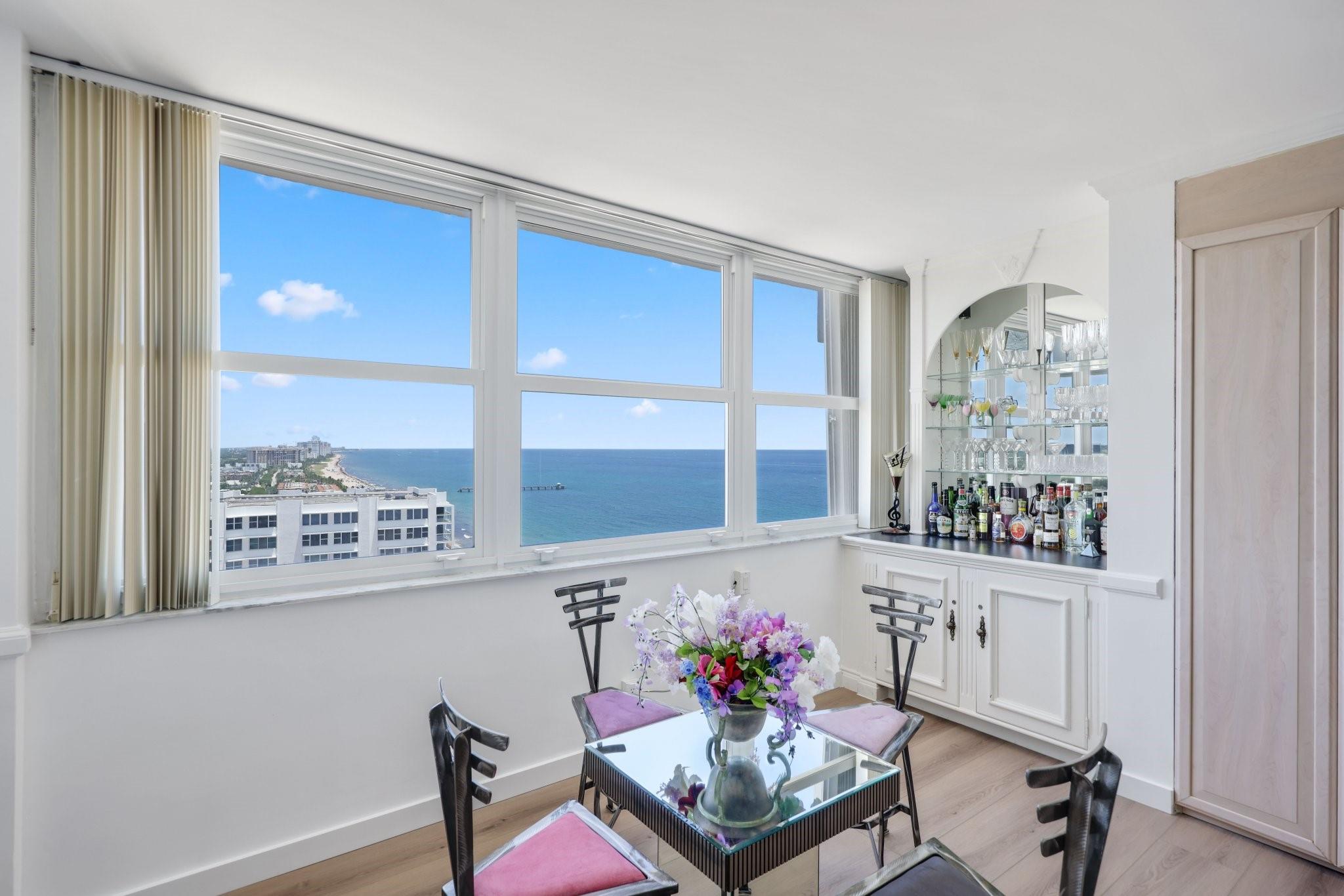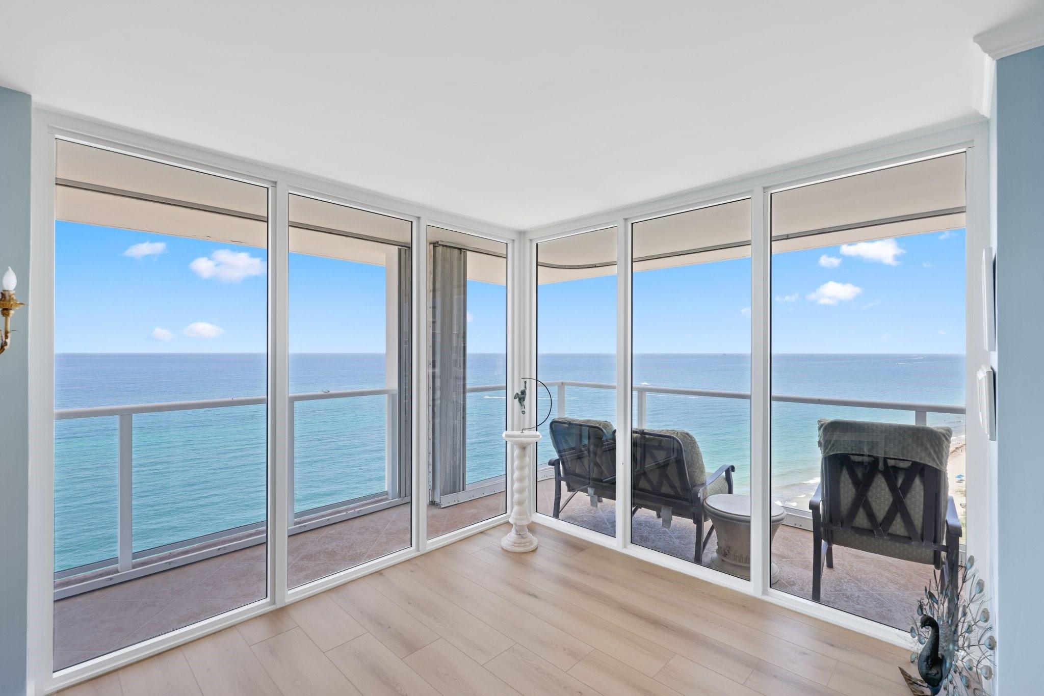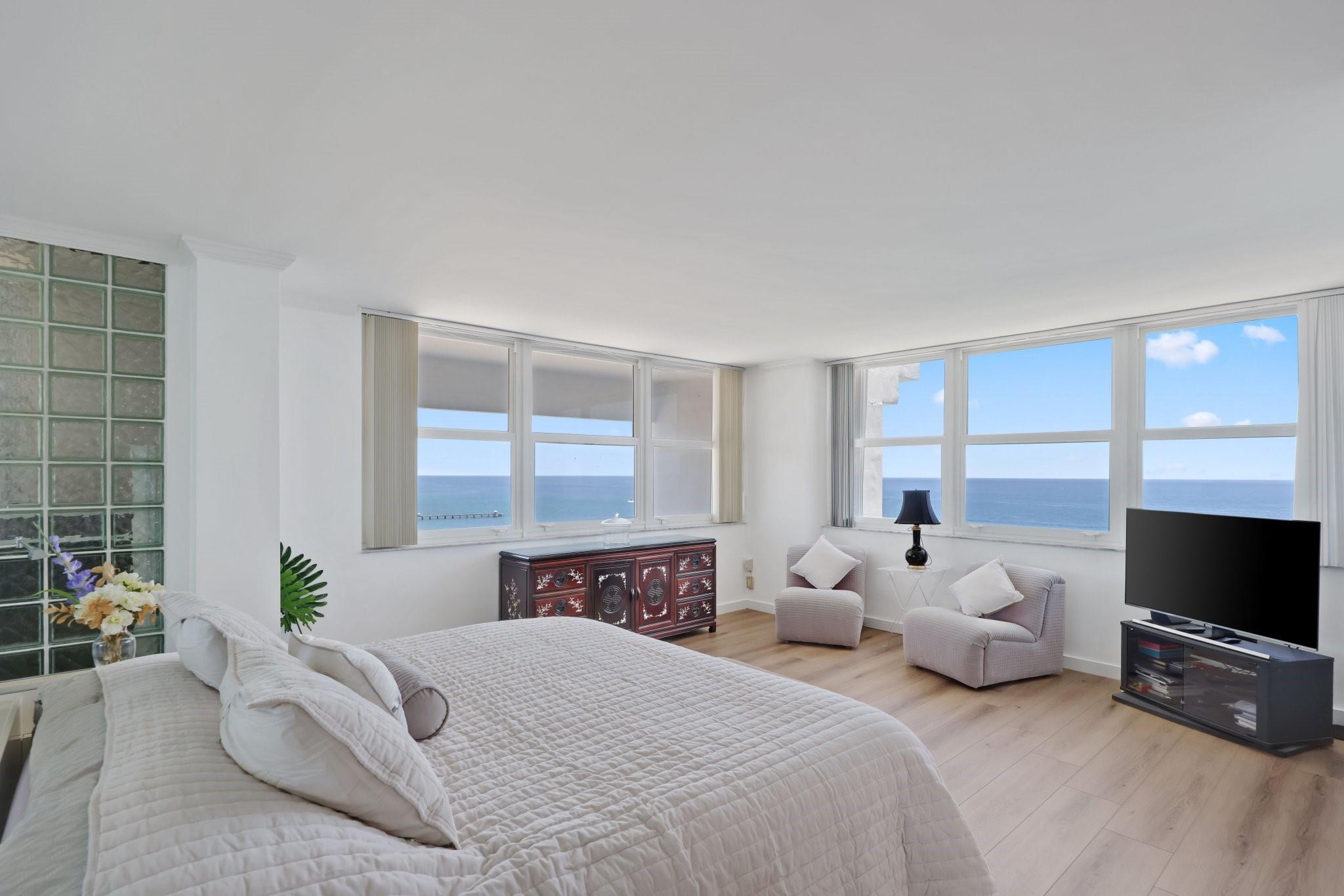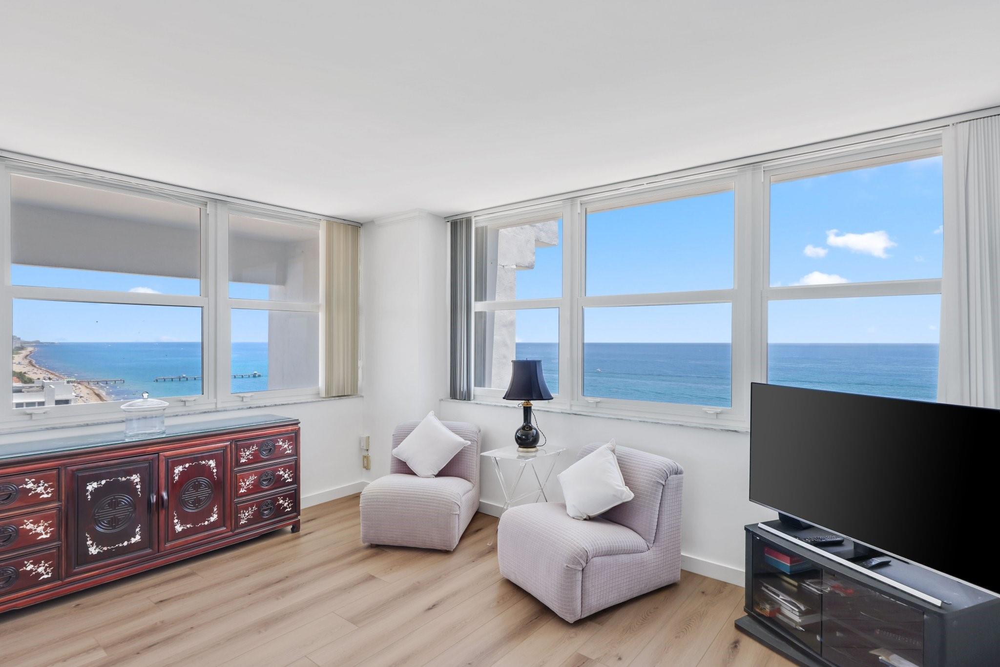 Rarely available point unit in a premier building situated directly on the sand! This stunning 3-bedroom, 2.5-bath residence offers breathtaking 180-degree ocean views, a semi-private elevator entry, and brand-new flooring, A/C, impact windows, and an updated kitchen. Thoughtfully designed with multiple walk-in closets, a dry bar, and a built-in Murphy bed for added versatility. Enjoy resort-style amenities, covered parking, and the peace of mind of a well managed building that has completed its 50-year safety certification, is financially strong, and fully up to date on maintenance. Easy to show. Schedule your private tour today!