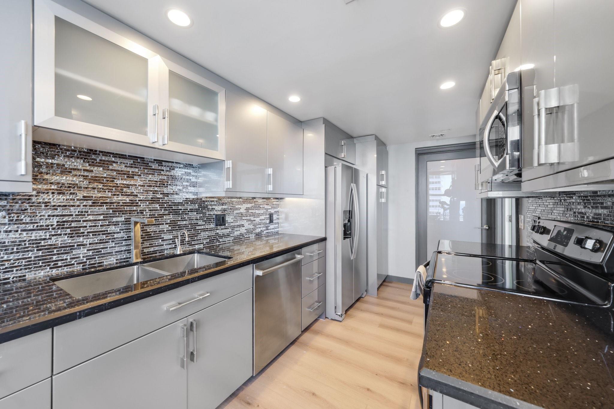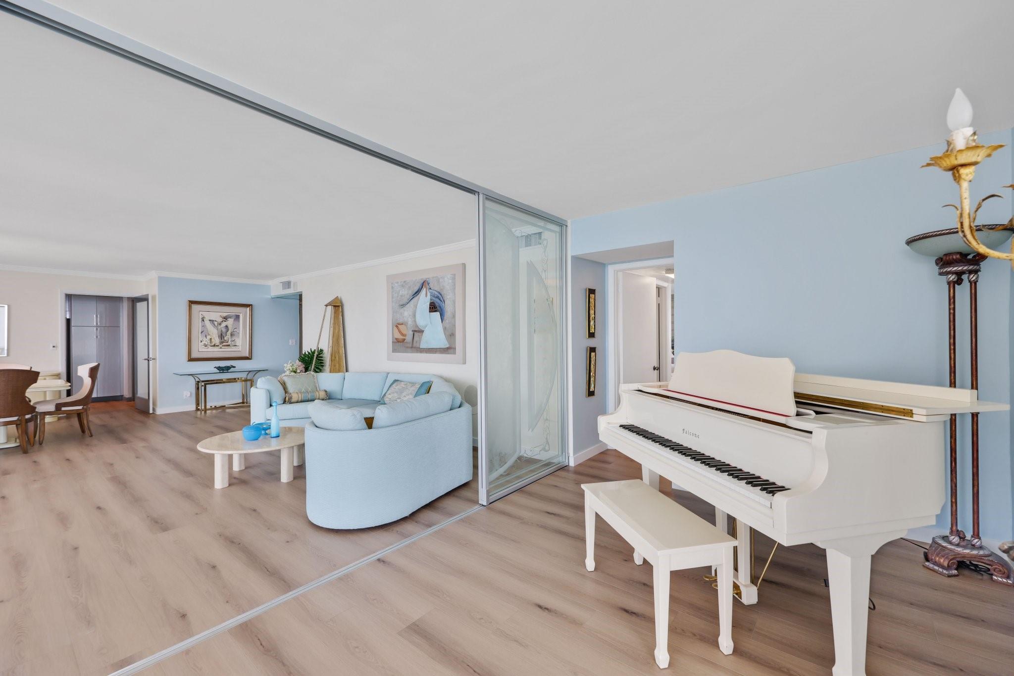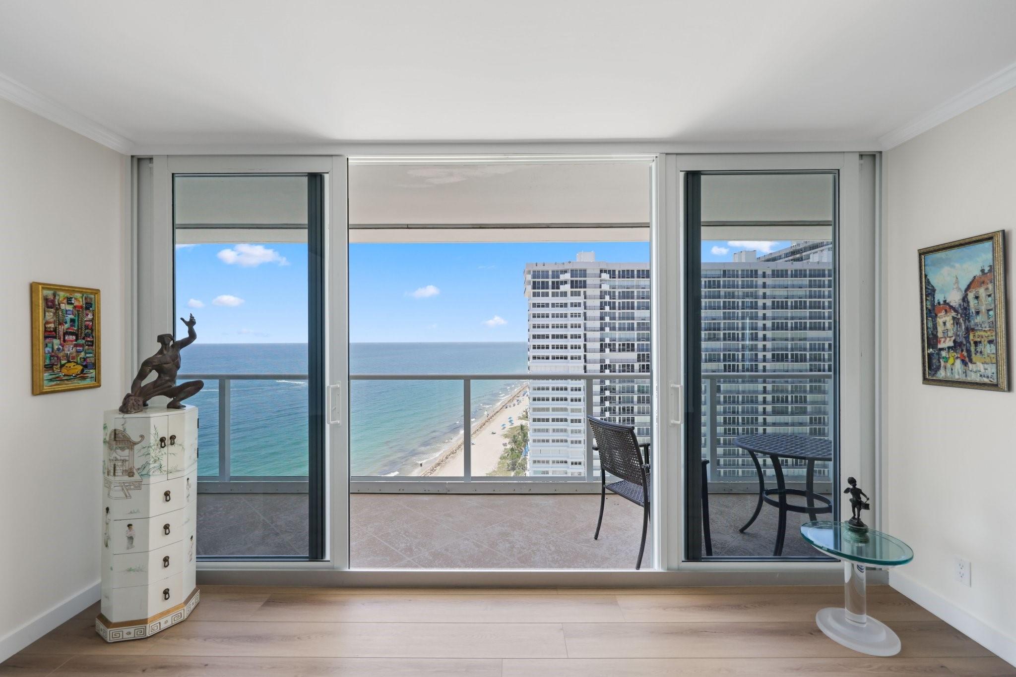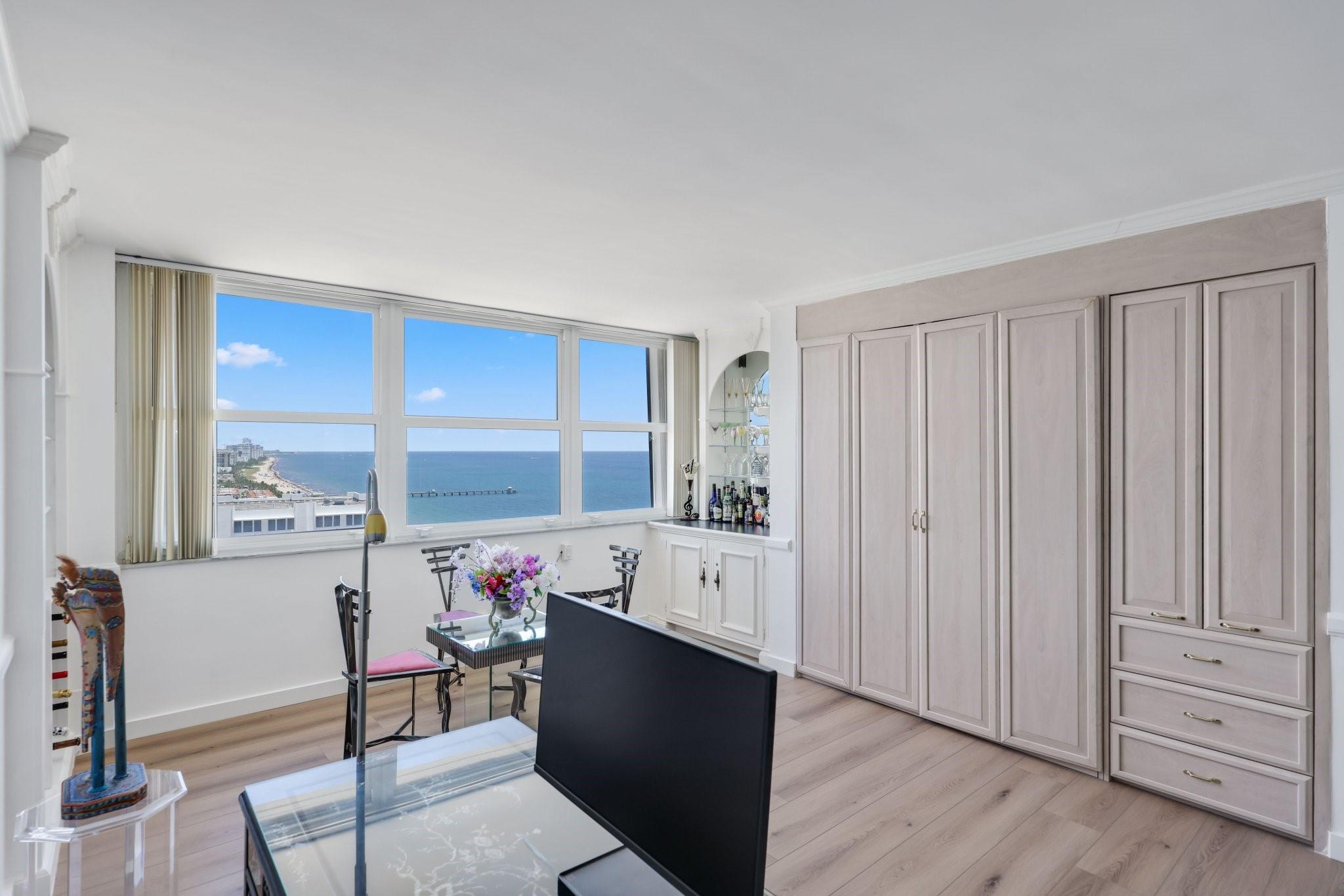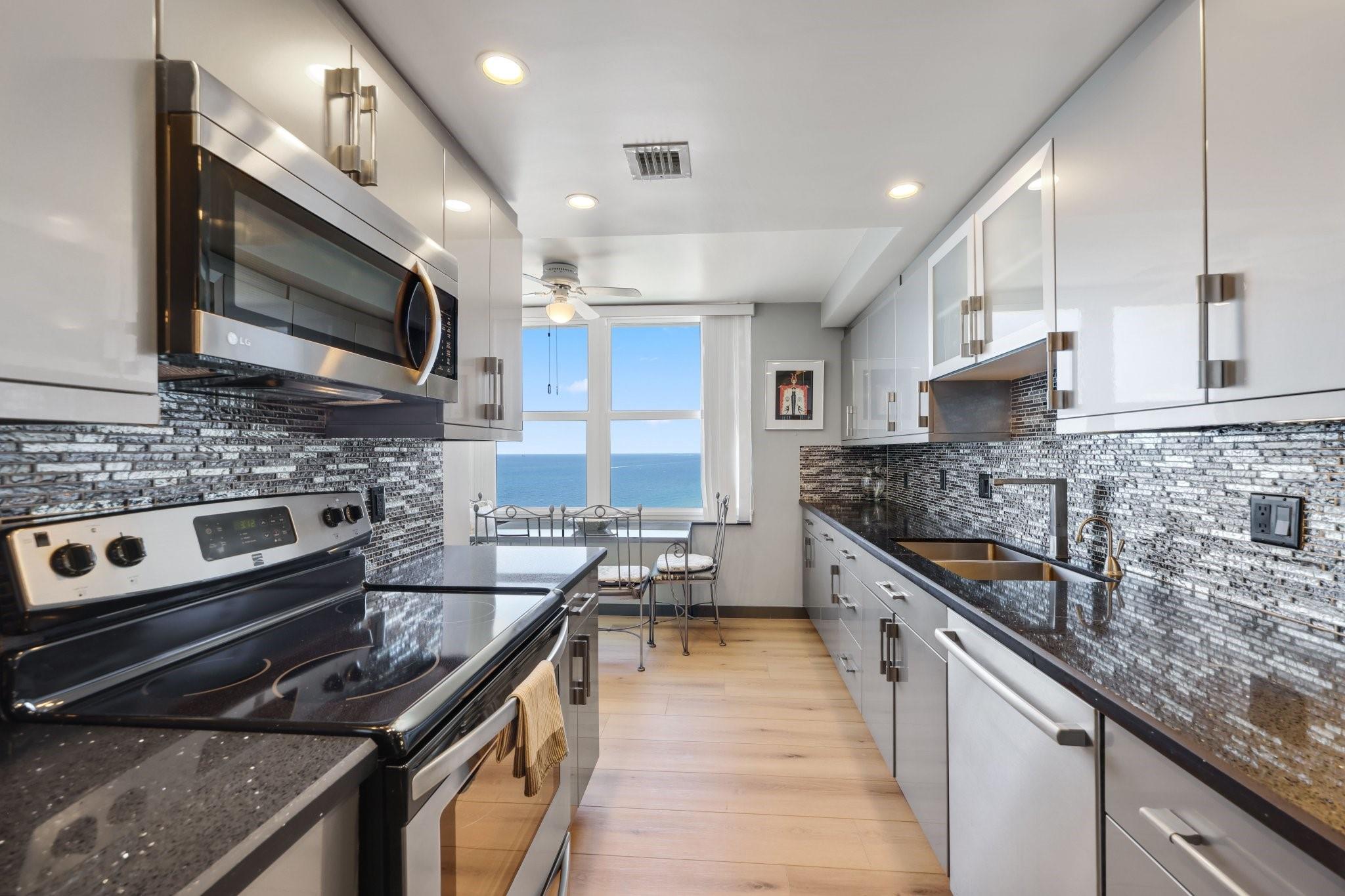 Rarely available point unit in a premier building situated directly on the sand! This stunning 3-bedroom, 2.5-bath residence offers breathtaking 180-degree ocean views, a semi-private elevator entry, and brand-new flooring, A/C, impact windows, and an updated kitchen. Thoughtfully designed with multiple walk-in closets, a dry bar, and a built-in Murphy bed for added versatility. Enjoy resort-style amenities, covered parking, and the peace of mind of a well managed building that has completed its 50-year safety certification, is financially strong, and fully up to date on maintenance. Easy to show. Schedule your private tour today!