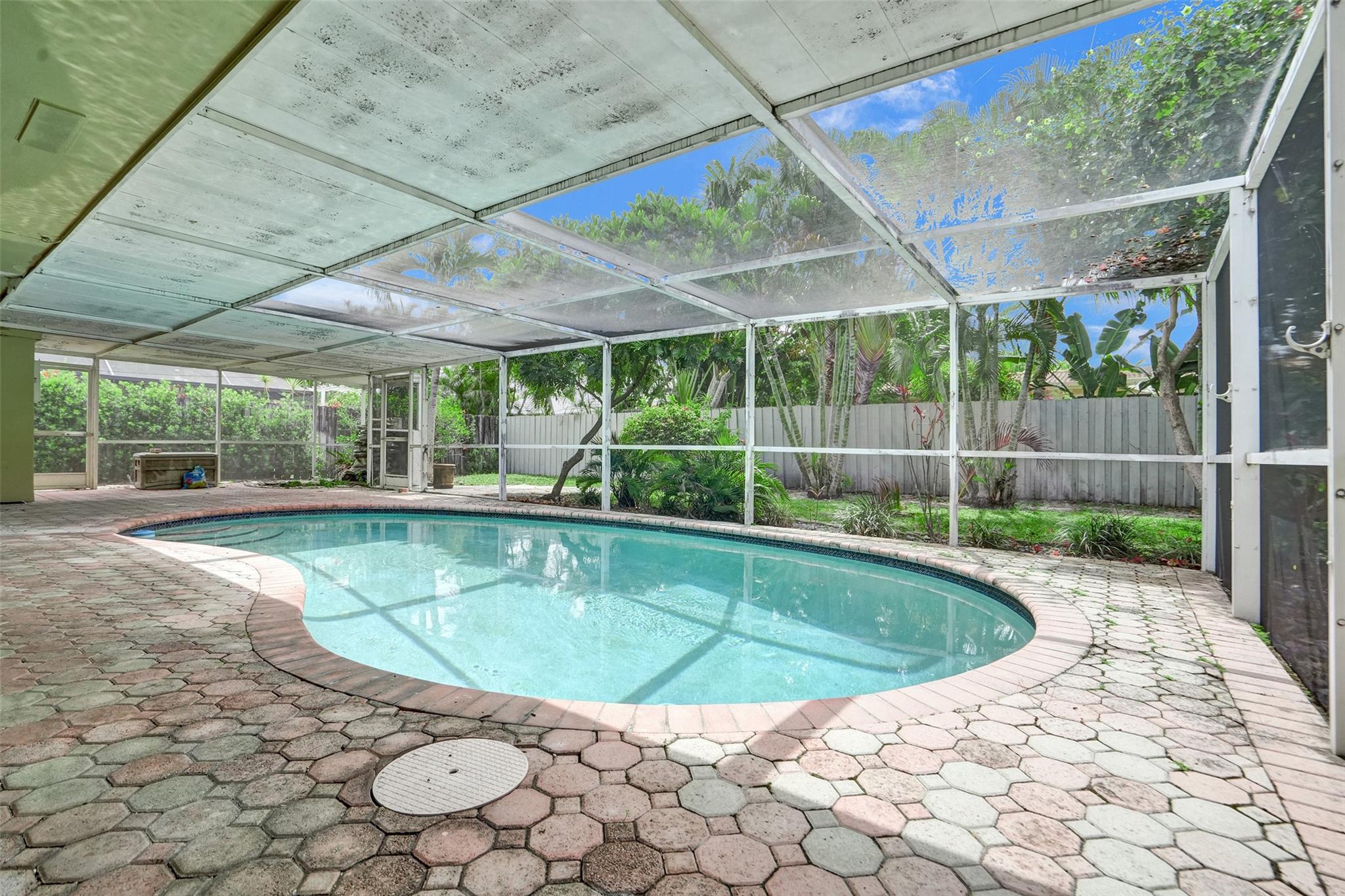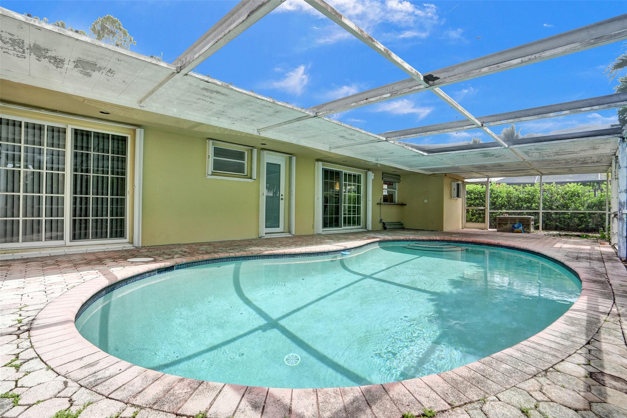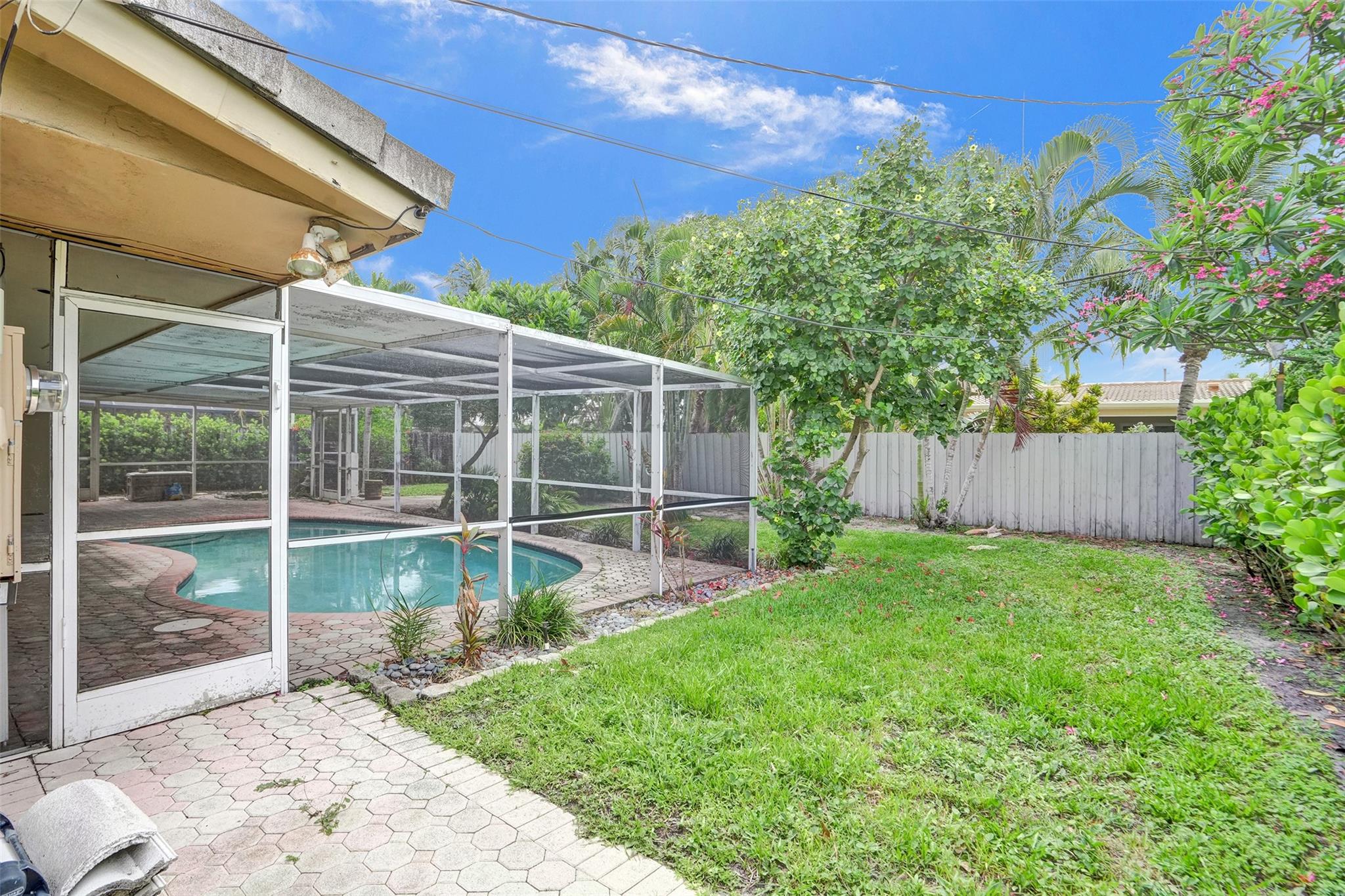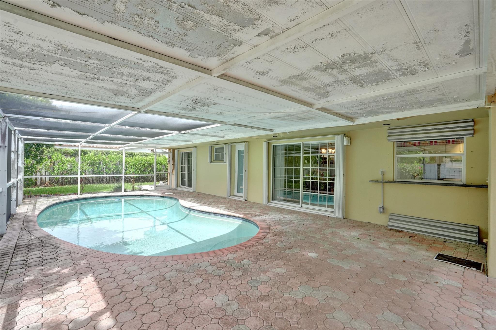Three bedroom, two bath home with pool in Imperial Point. East-west exposure for cross breezes. One car garage. Some impact windows. Paver driveway and all pavers in the screened in pool area. White kitchen shaker cabinets and white appliances with granite counter tops. Roof is 25 years old-cash only. This is an estate sale. Imperial Point is located close to Beaches, restaurants, shopping and highways.