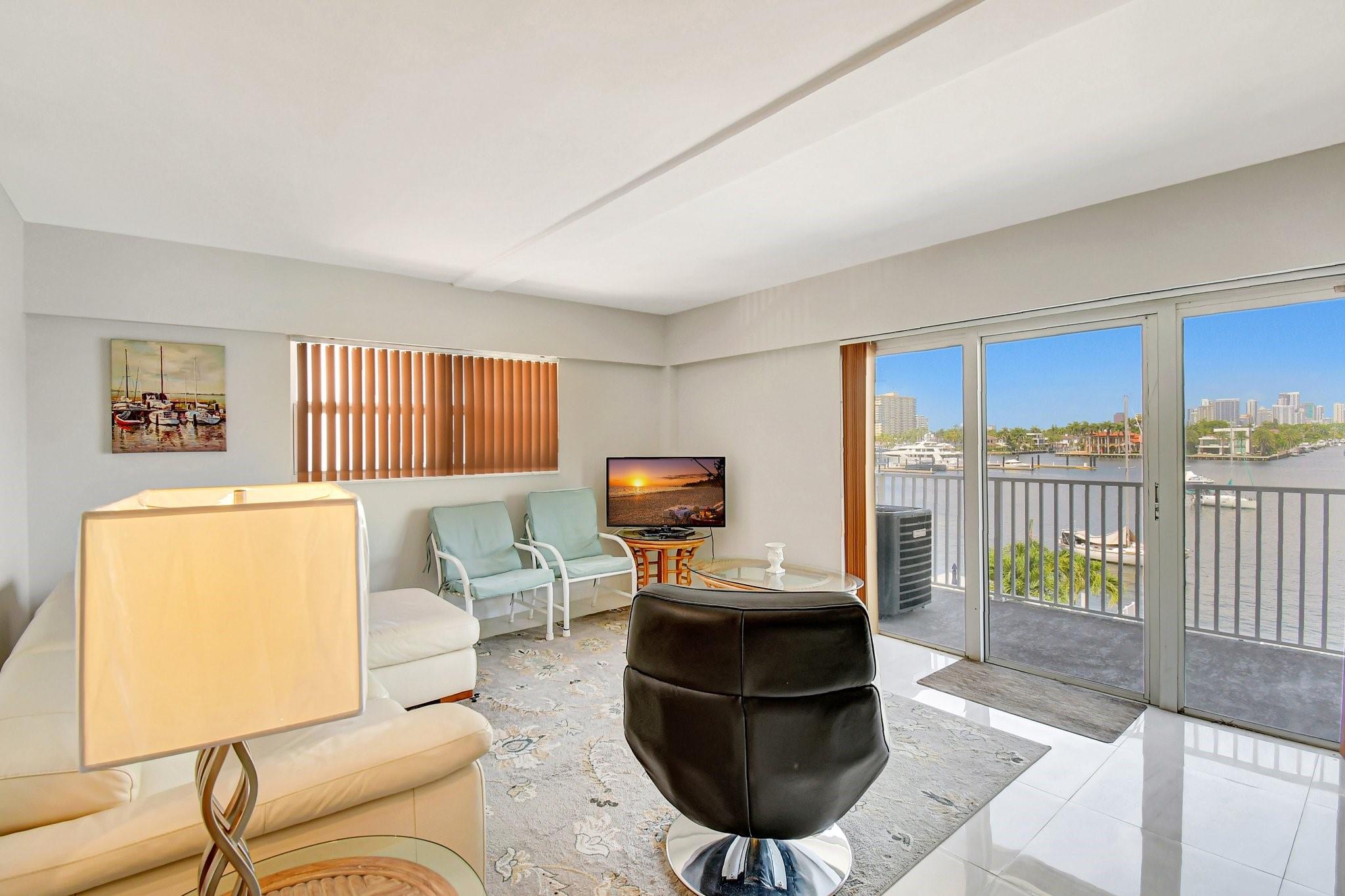 Harbor Haven on Fort Lauderdale Beach. Located on the edge of the Intra coastal with unobstructed views of the widest part of the Intra coastal Waterways and down town Fort Lauderdale. Enjoy views of million dollar yachts as they cruise by all day long. Enjoy breathtaking sun sets all year round. Brand New A/C, flexible rentals. Great for second home on the world famous Fort Lauderdale Beach. 30 day minimum rentals, can rent 12 times a year.