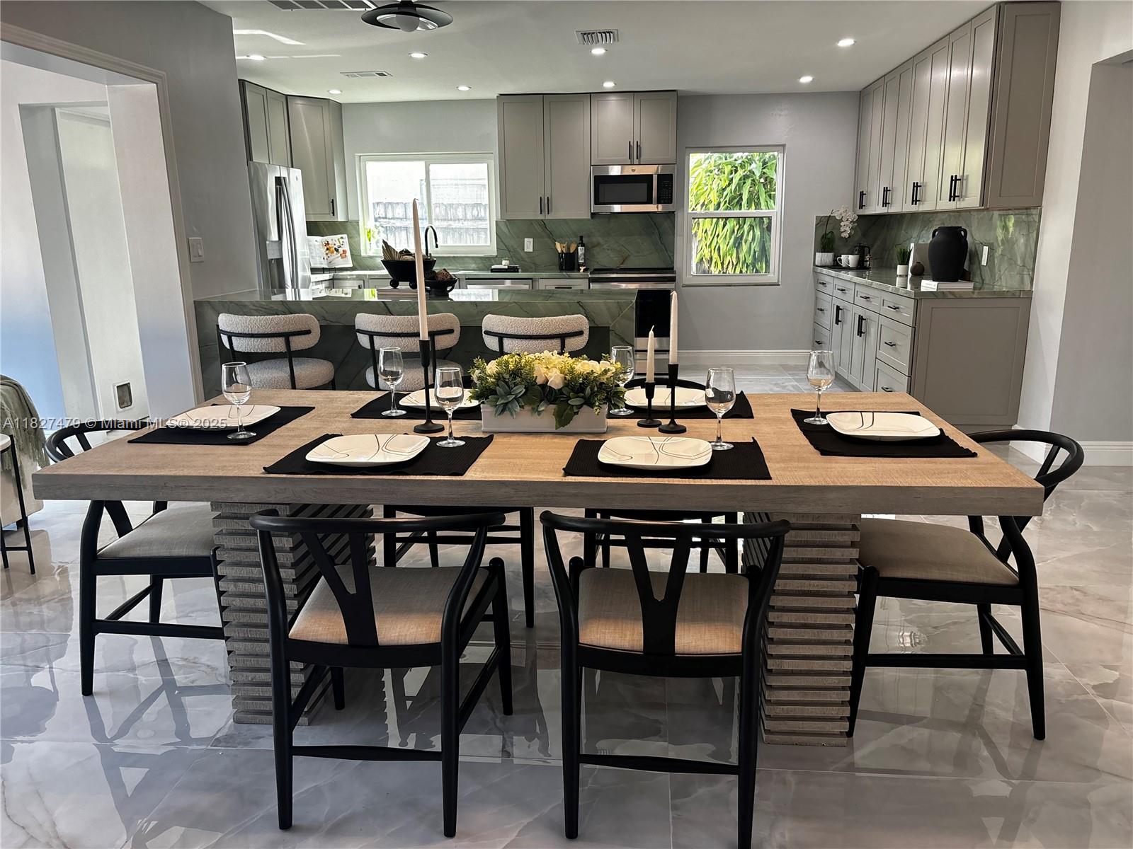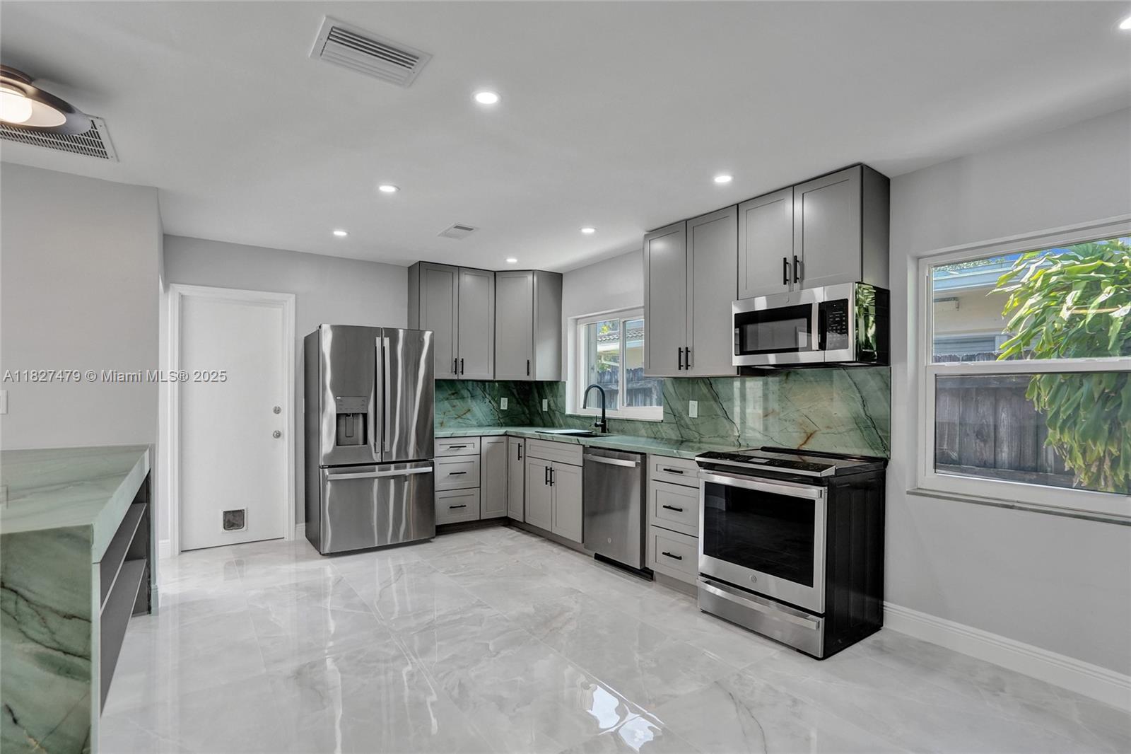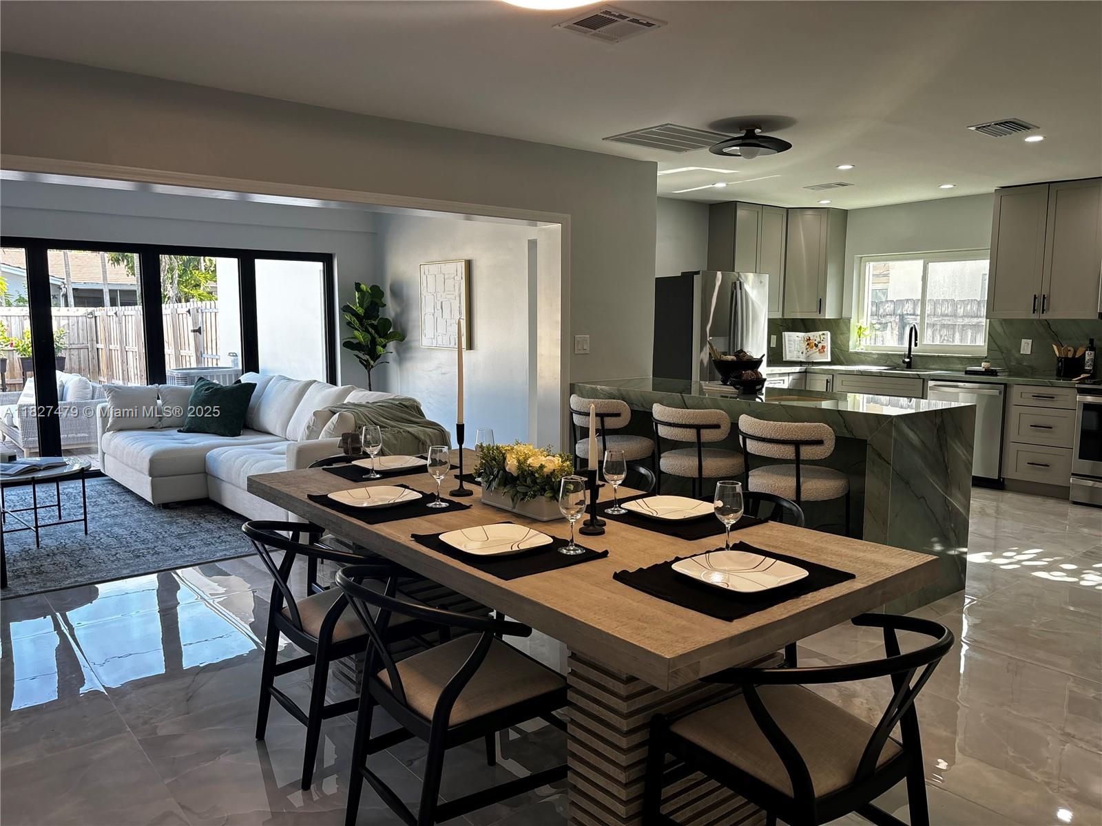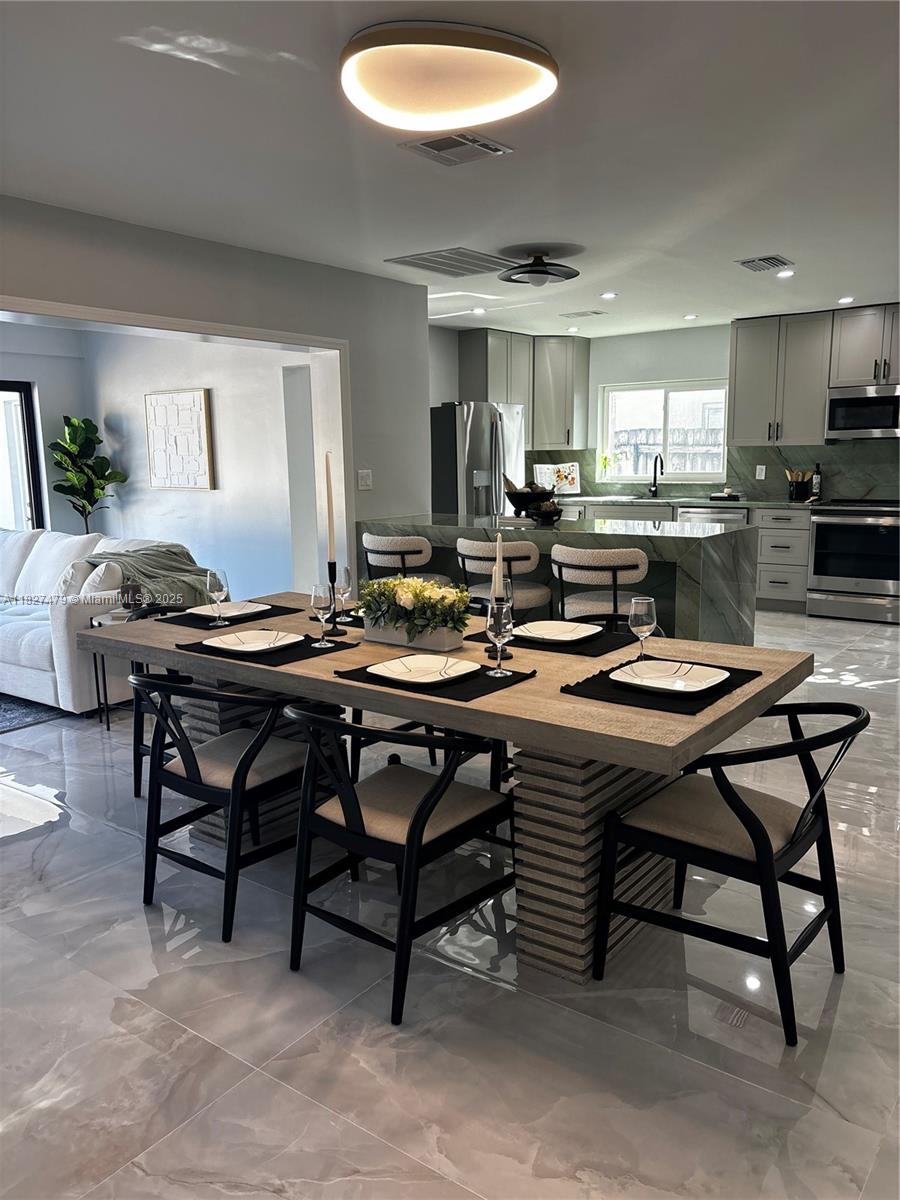 Welcome to 1424 Adams St — a beautifully updated 2-bed, 2-bath home in coveted Hollywood Lakes neighborhood. This stylish single-story offers 1,362 sq ft of thoughtfully designed space with porcelain tile floors, quartzite countertops, smart toilets and a carrara marble sink in the primary bath. The kitchen features brand-new GE stainless appliances and a new washer and dryer. Enjoy a bright Florida room opening to a private, fenced backyard—great for entertaining. Includes rear garage and driveway parking for two cars provide flexibility and convenience. Just 1.9 miles to Hollywood Beach, near downtown, Aventura Mall, and FLL airport. Walk to Jefferson Park with courts, playgrounds, and more. This move-in-ready gem blends comfort, style, and location!
