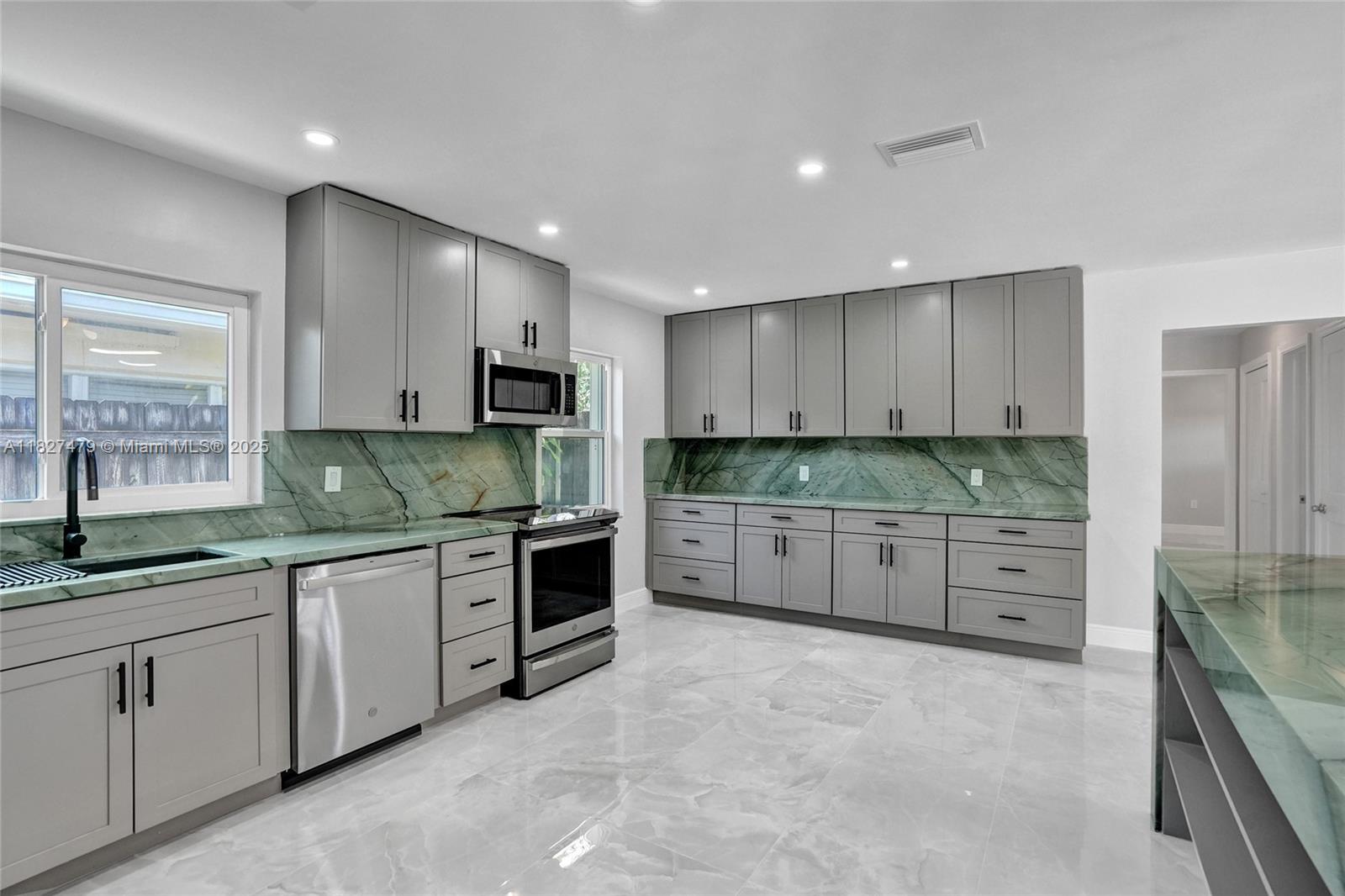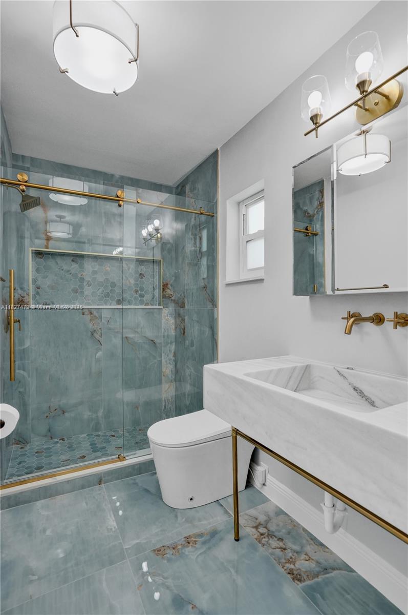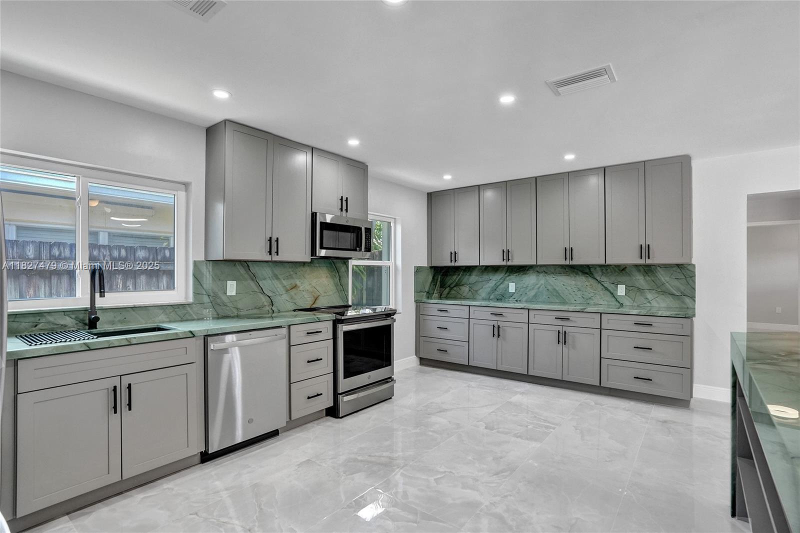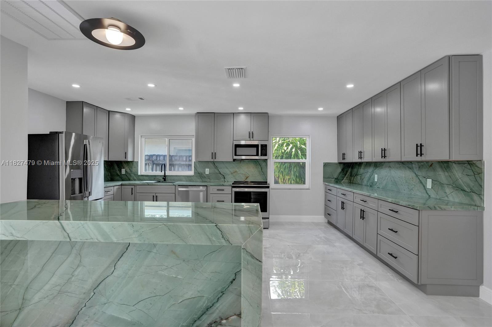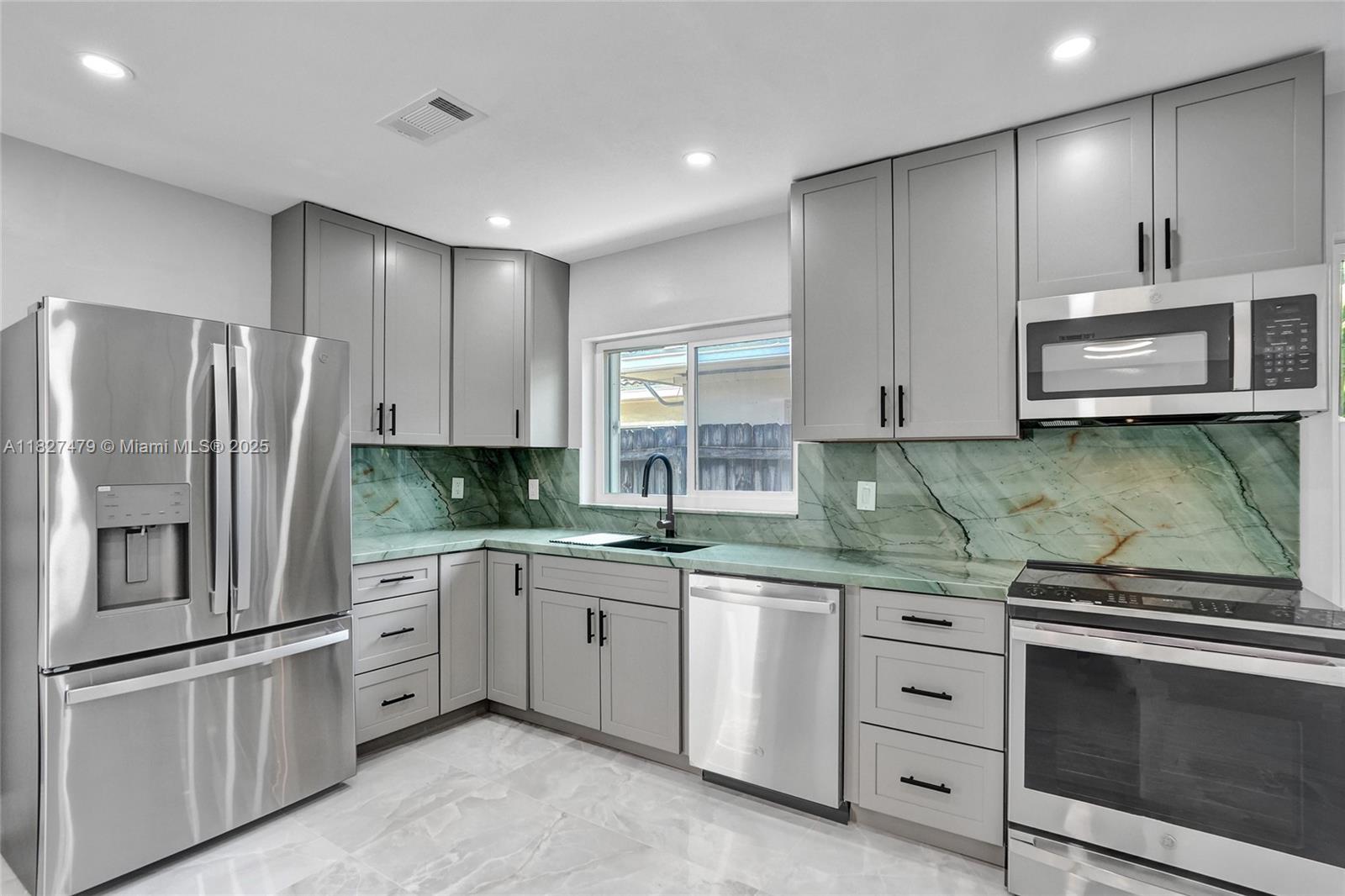 Welcome to 1424 Adams St — a beautifully updated 2-bed, 2-bath home in coveted Hollywood Lakes neighborhood. This stylish single-story offers 1,362 sq ft of thoughtfully designed space with porcelain tile floors, quartzite countertops, smart toilets and a carrara marble sink in the primary bath. The kitchen features brand-new GE stainless appliances and a new washer and dryer. Enjoy a bright Florida room opening to a private, fenced backyard—great for entertaining. Includes rear garage and driveway parking for two cars provide flexibility and convenience. Just 1.9 miles to Hollywood Beach, near downtown, Aventura Mall, and FLL airport. Walk to Jefferson Park with courts, playgrounds, and more. This move-in-ready gem blends comfort, style, and location!