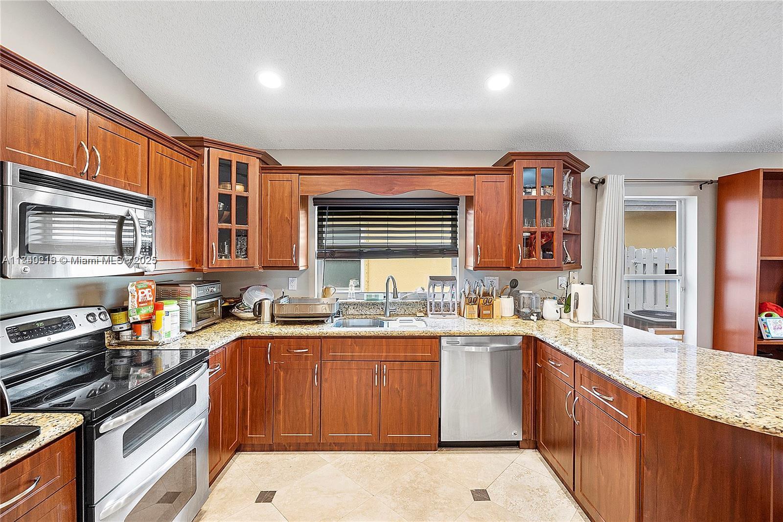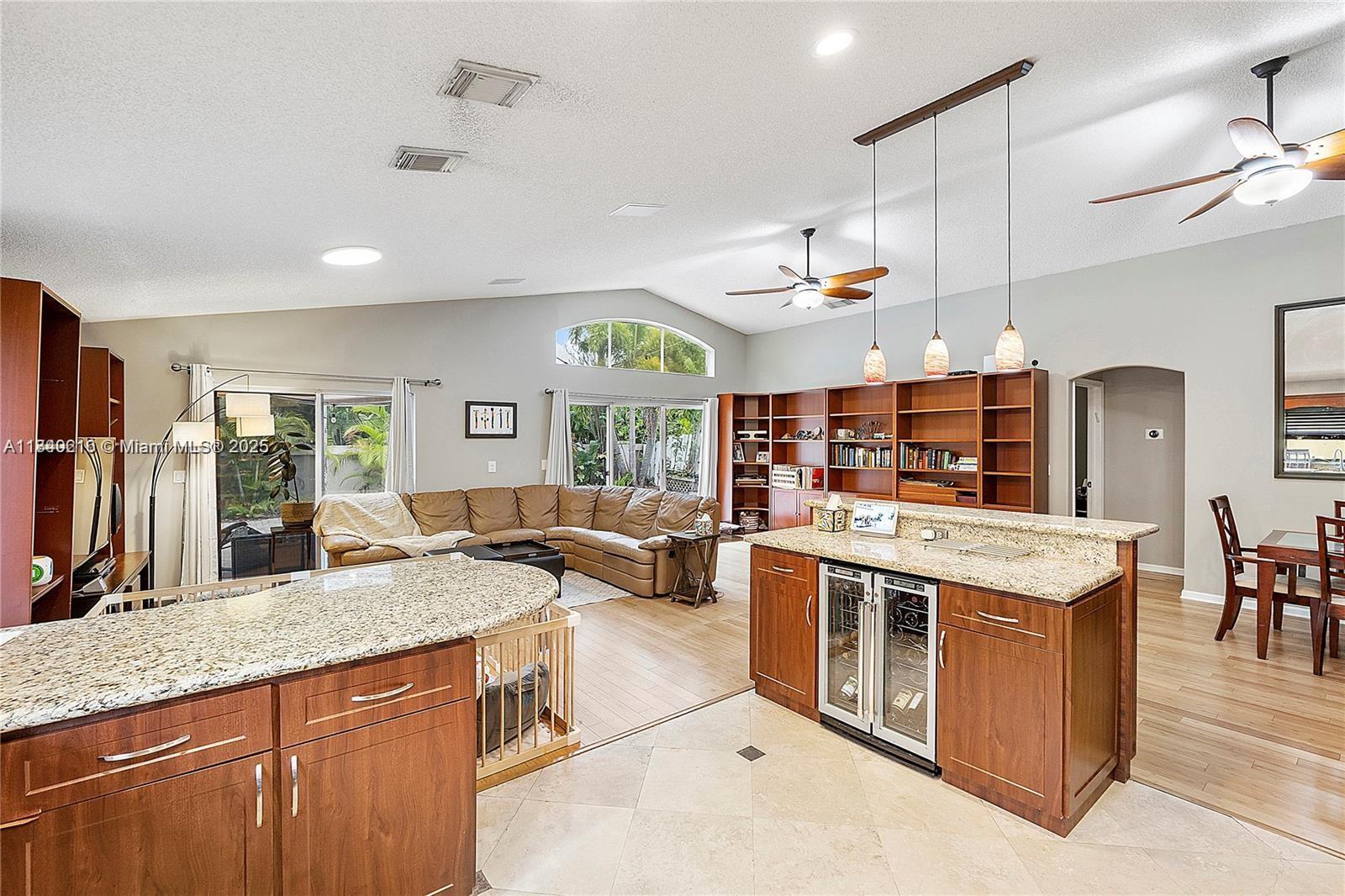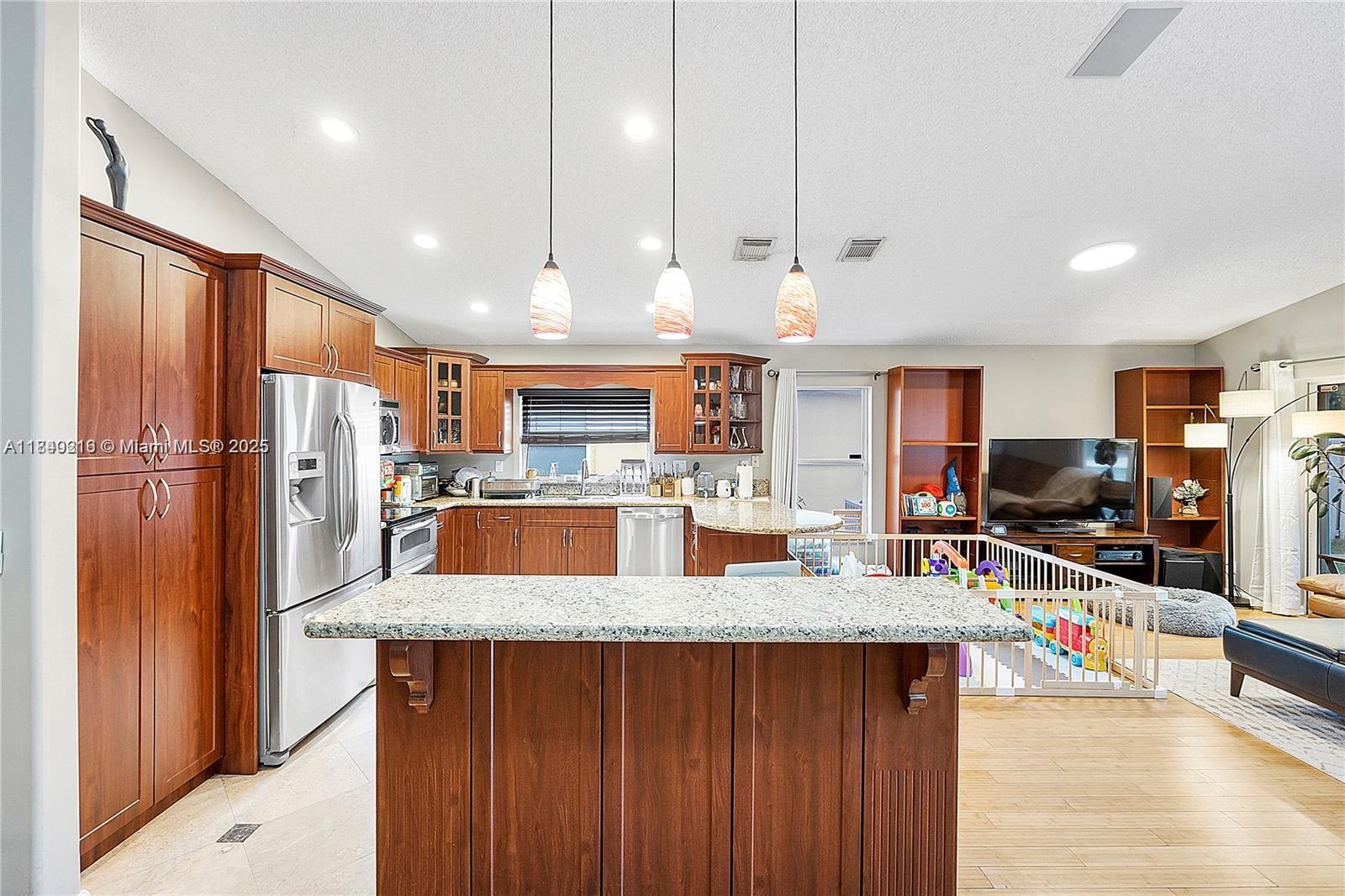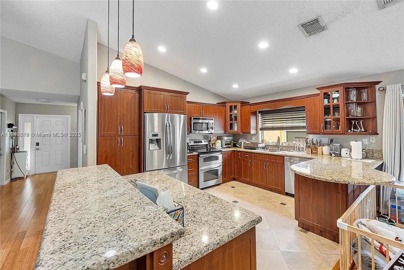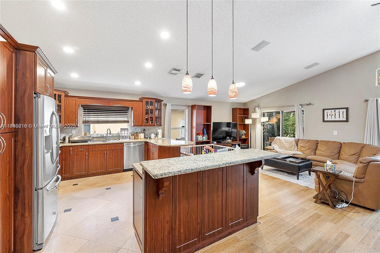 Discover this 3 bed/2 bath charming pool home nestled in the exclusive Banyan Oakridge Gated Community in Hollywood. Offering a spacious, open floor plan with beautiful bamboo flooring throughout, this home is designed for modern living. The updated kitchen features stainless steel appl., a wine cooler and granite countertops. The luxurious master bath boasts travertine finishes, a large frameless glass shower, and a convenient built-in dresser. Step outside to your private backyard oasis, complete with a sparkling pool, ideal for relaxation or hosting gatherings. This home is located within walking distance to worship houses. The community offers security, tennis courts, basketball courts, and playground. - Also for lease MLS #A11799619