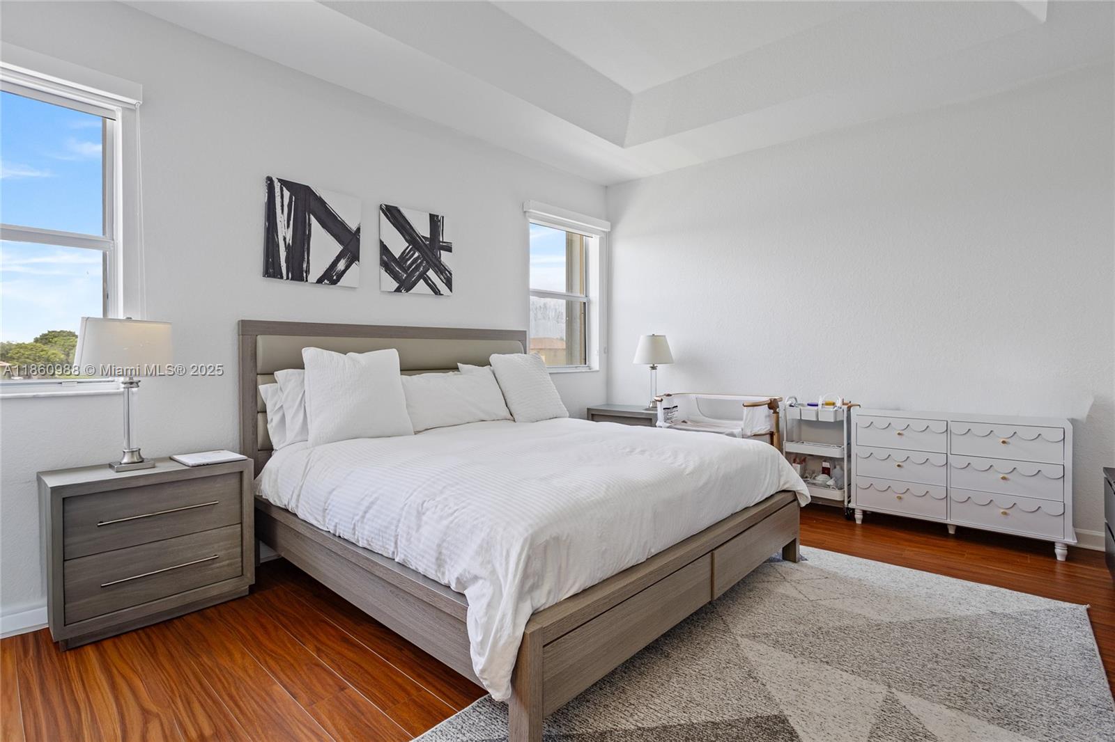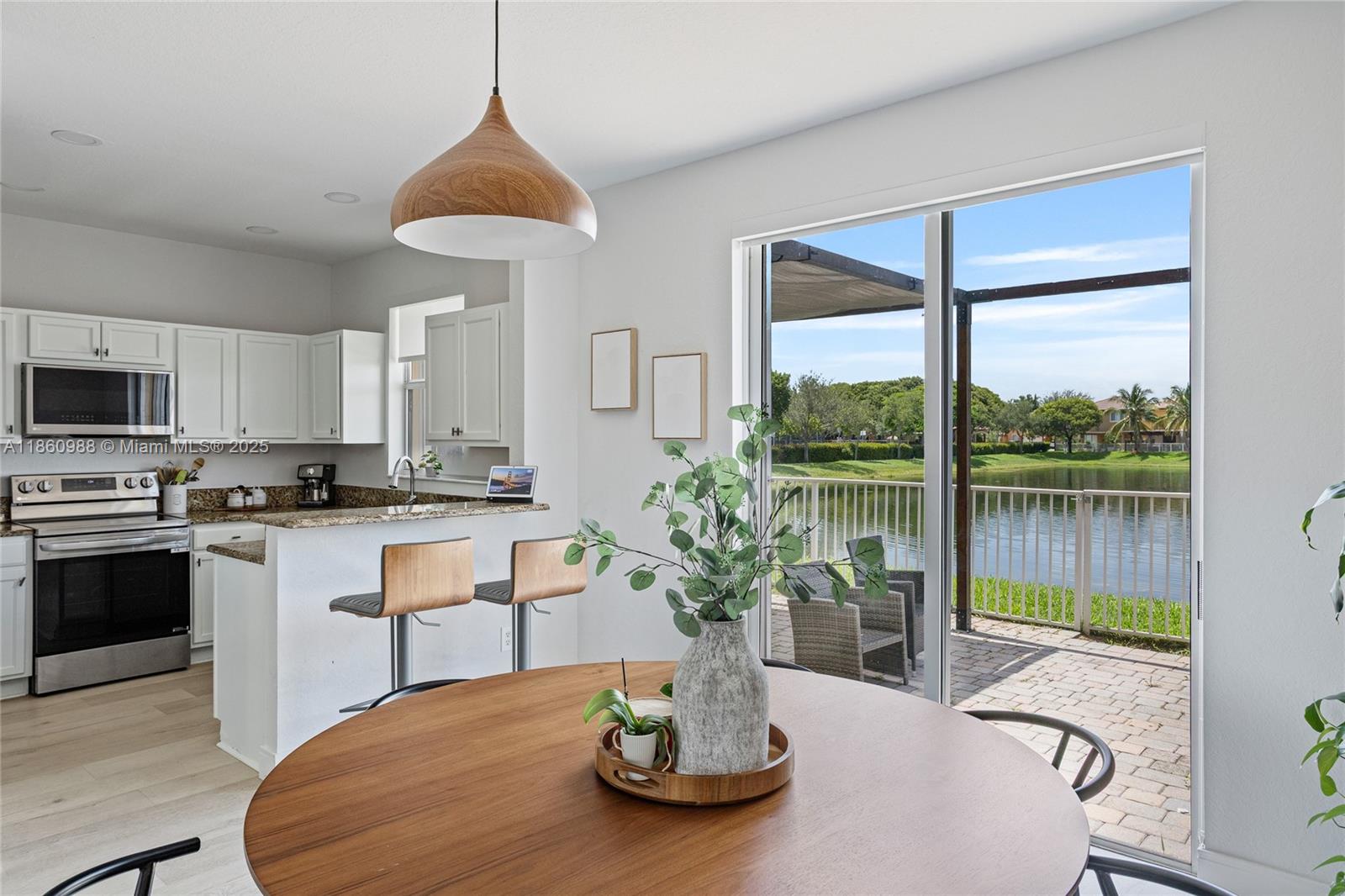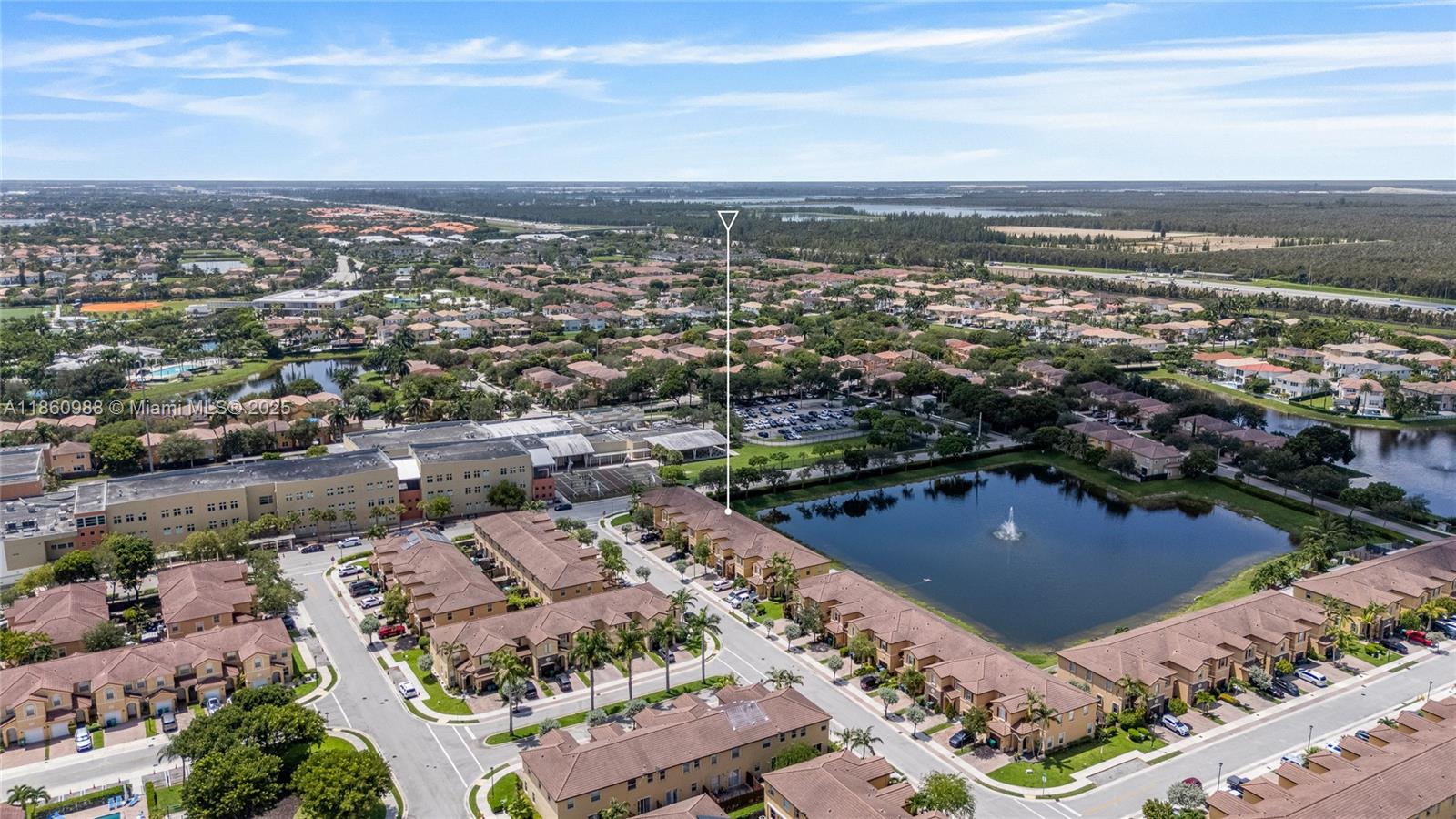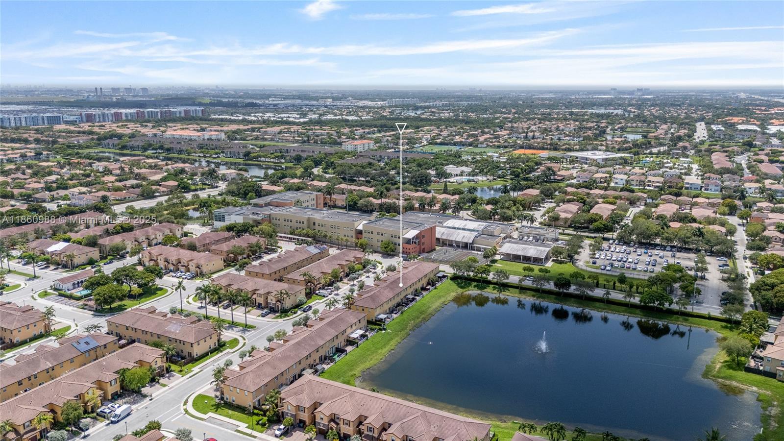 Beautifull Townhome in the Santorini community. Featuring 3 bedrooms & 2.5 bathrooms with 1,650sqft under AC, 1 car garage and two parking space at the driveway, spectacular lake view conveniently located and guest parking. Having your own private backyard with lake view, washer and dryer included. Located right next to Rolando Espinoza Elementary School and the Islands at Doral Clubhouse. Includes amenities like tennis courts, pool, jacuzzi, Gym, basketball courts and more.