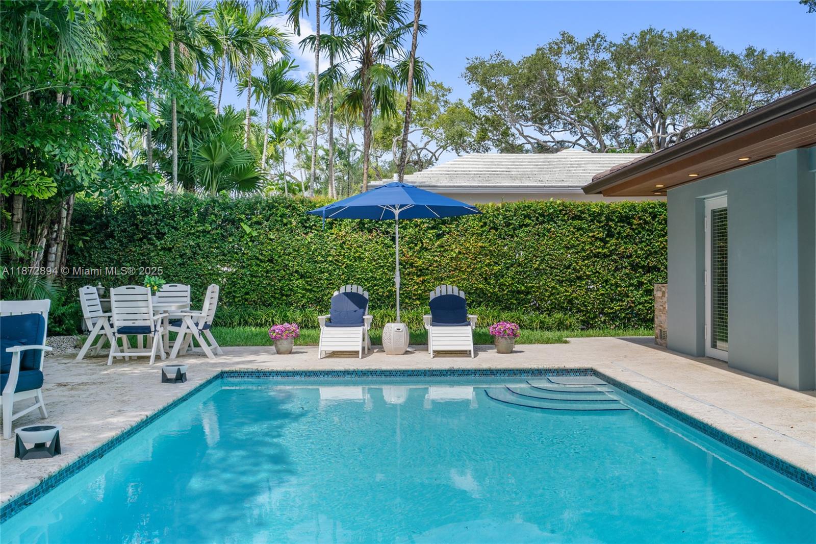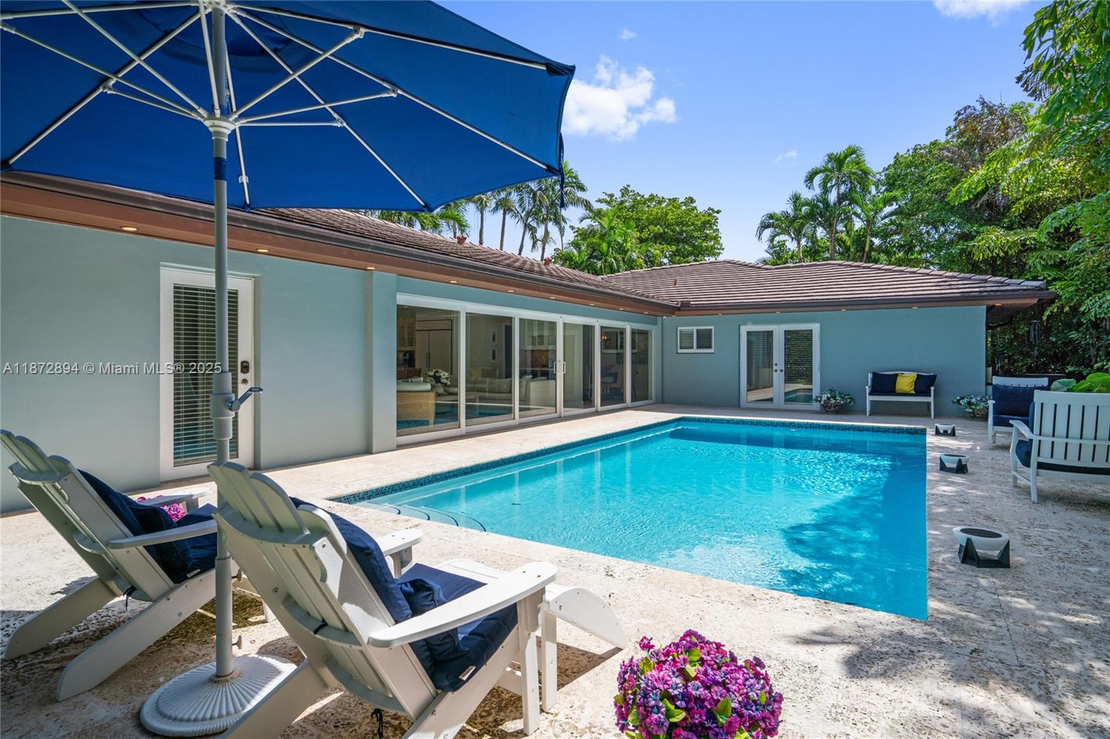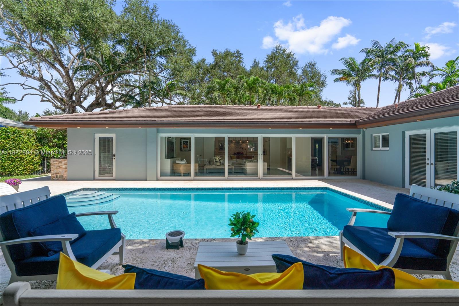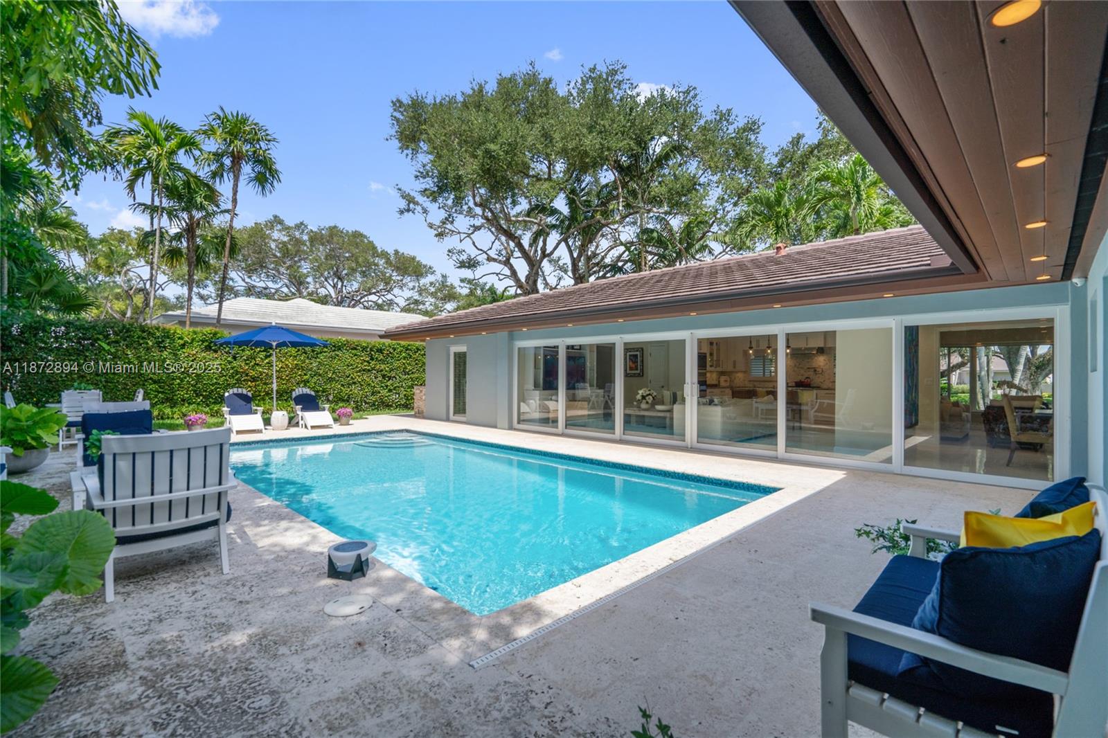 Completely renovated 4BR/4BA plus den/office pool home on a 10,000 SF lot in the prestigious Coral Gables Country Club community close to UM. Features include a gourmet kitchen with Wolf appliances, indoor wet bar w/ dual wine coolers, Generac backup generator, 2 new AC units, and a brand-new pool water heater. Spacious living areas flow seamlessly to the outdoor kitchen, pool, and patio shaded by tropical landscaping, ideal for entertaining. The two-car garage is equipped with Tesla chargers. Minutes from both the Biltmore Hotel & Riviera Country Club with golf membership options available. Rare opportunity to own on one of Coral Gable's most exclusive blocks.