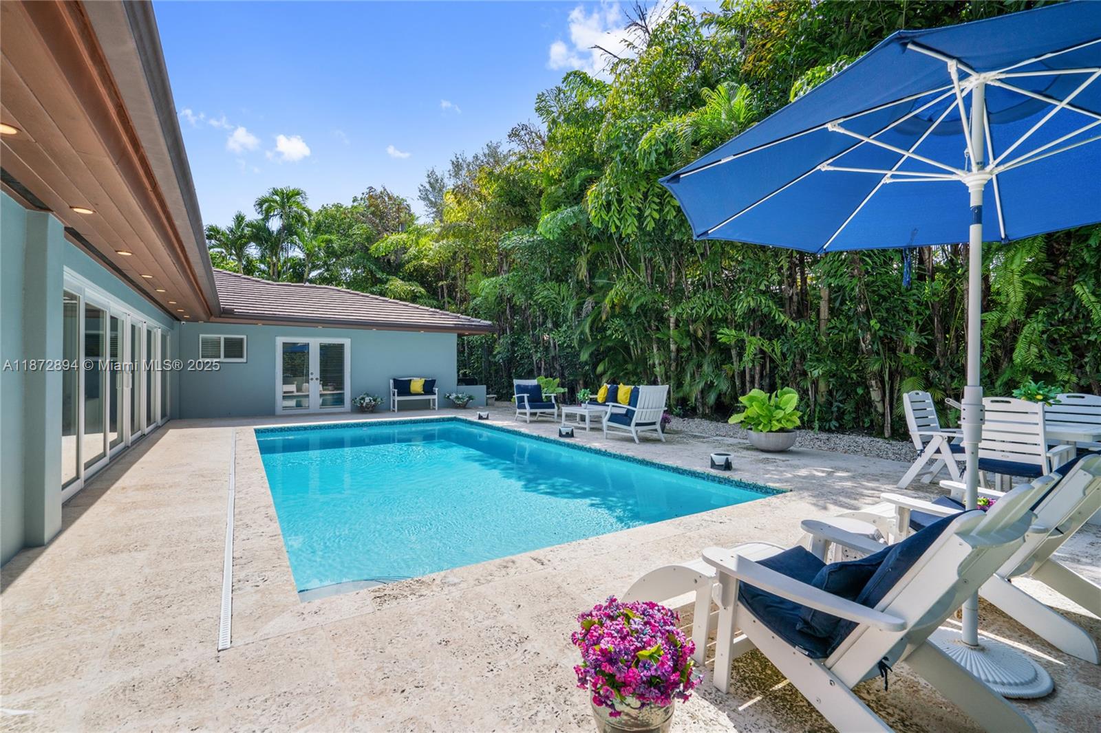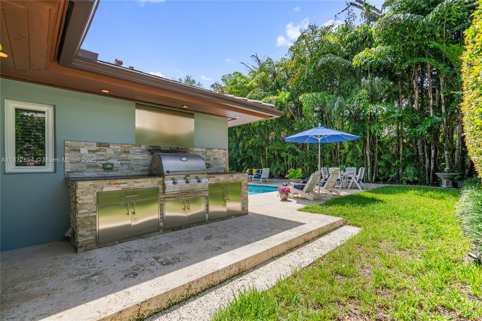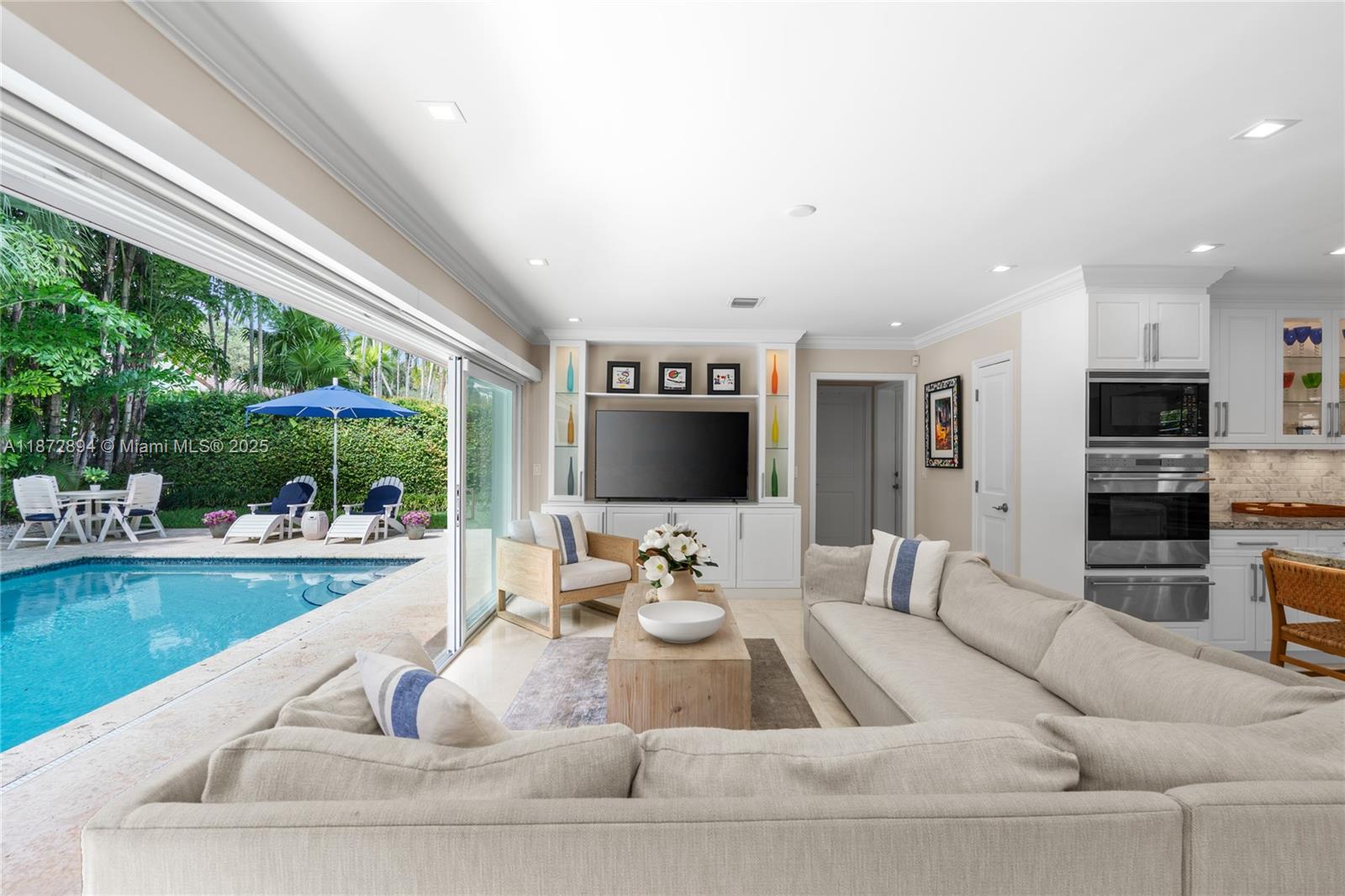 Completely renovated 4BR/4BA plus den/office pool home on a 10,000 SF lot in the prestigious Coral Gables Country Club community close to UM. Features include a gourmet kitchen with Wolf appliances, indoor wet bar w/ dual wine coolers, Generac backup generator, 2 new AC units, and a brand-new pool water heater. Spacious living areas flow seamlessly to the outdoor kitchen, pool, and patio shaded by tropical landscaping, ideal for entertaining. The two-car garage is equipped with Tesla chargers. Minutes from both the Biltmore Hotel & Riviera Country Club with golf membership options available. Rare opportunity to own on one of Coral Gable's most exclusive blocks.
