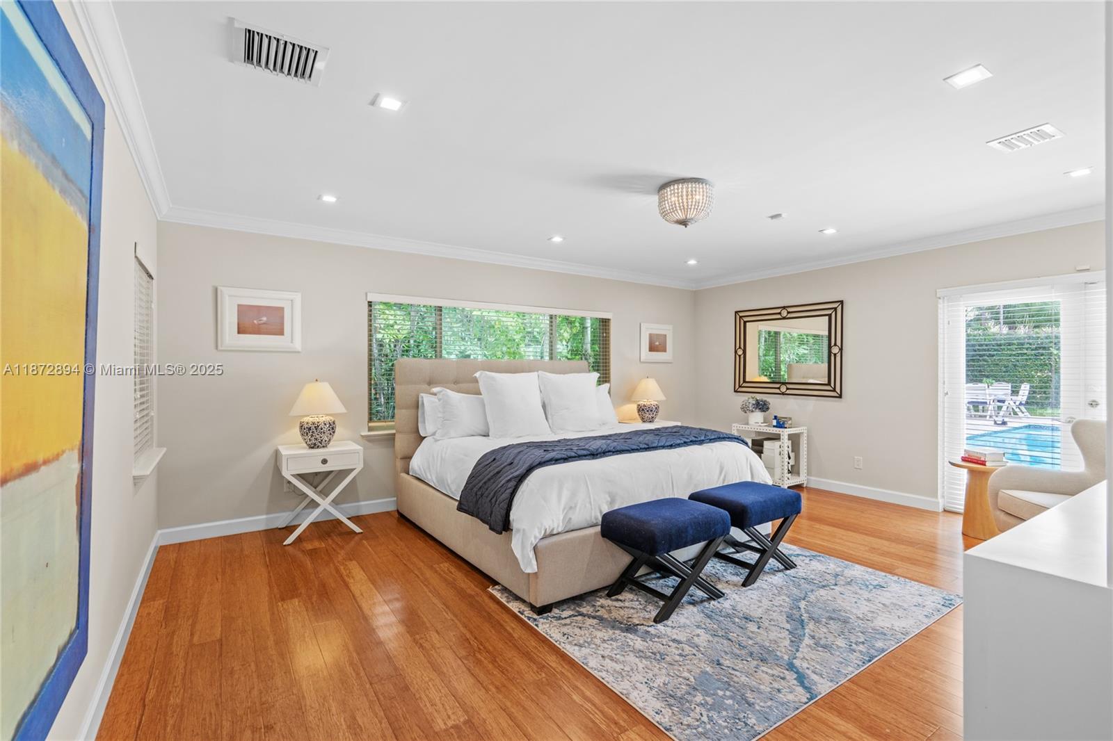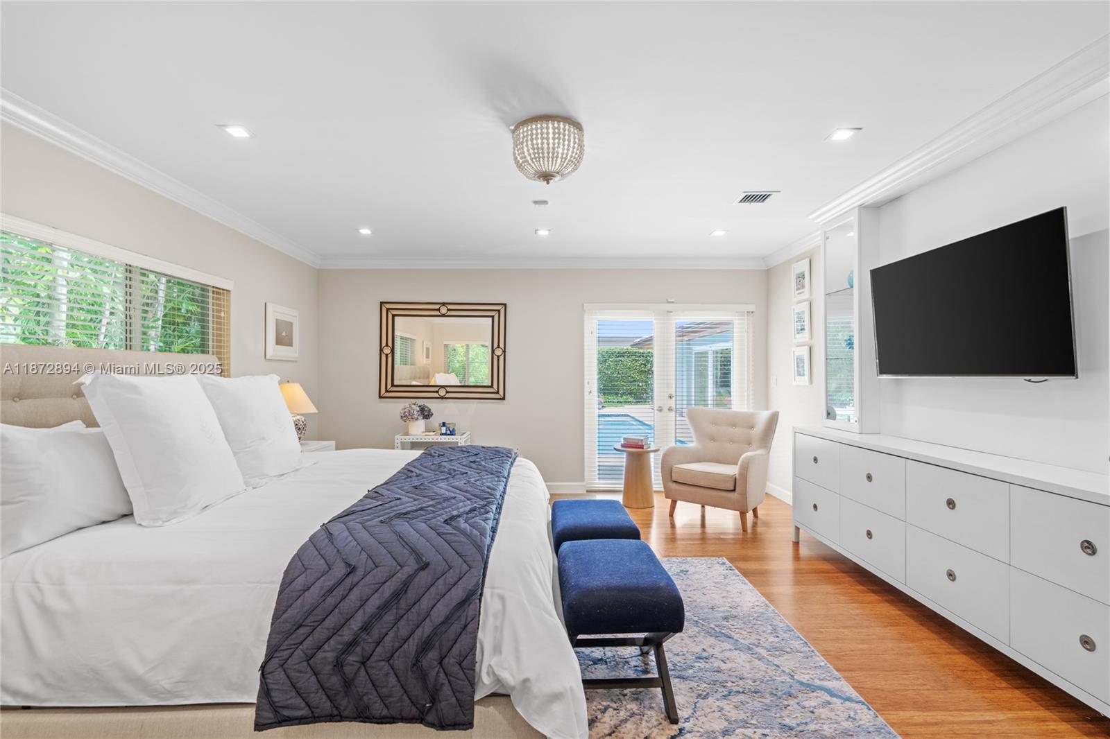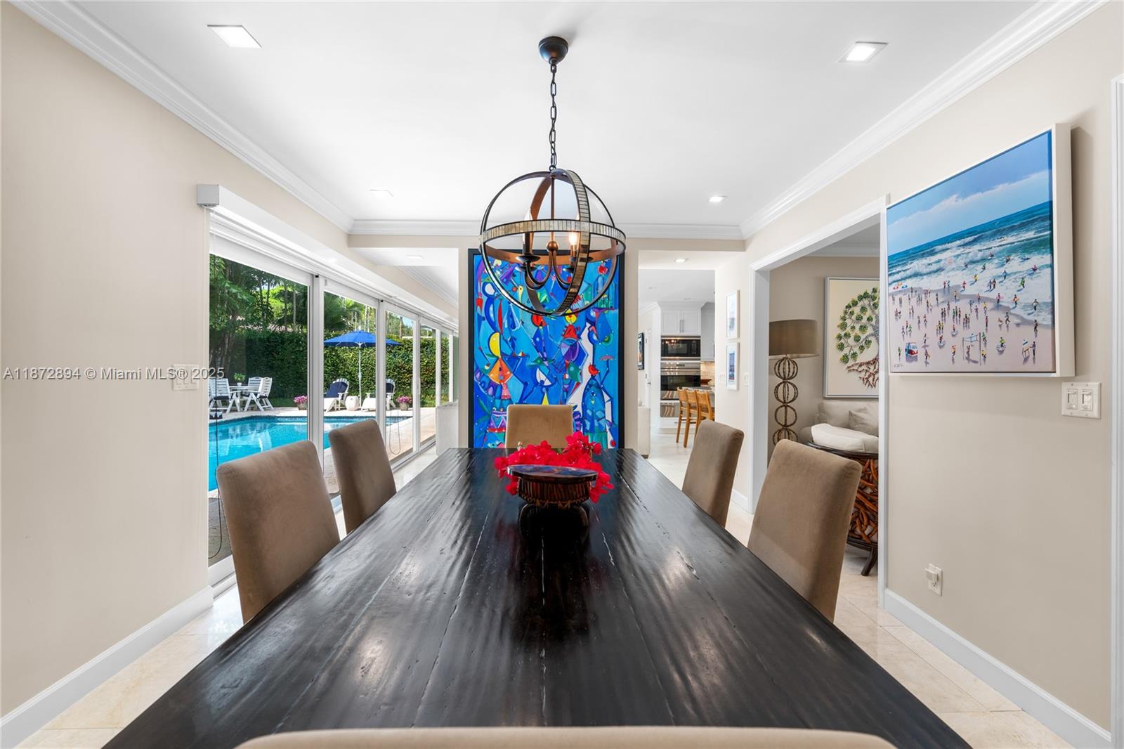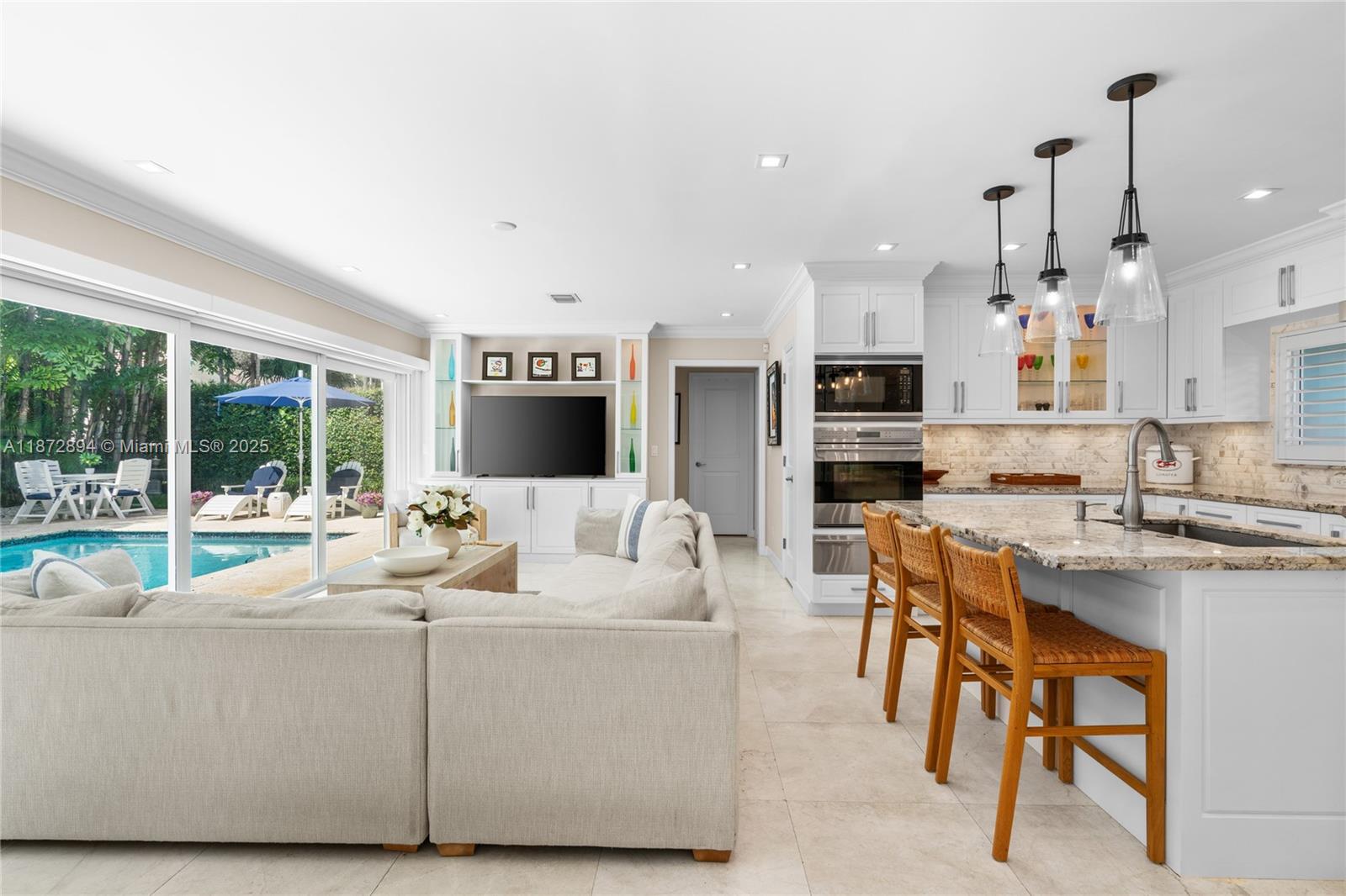 Completely renovated 4BR/4BA plus den/office pool home on a 10,000 SF lot in the prestigious Coral Gables Country Club community close to UM. Features include a gourmet kitchen with Wolf appliances, indoor wet bar w/ dual wine coolers, Generac backup generator, 2 new AC units, and a brand-new pool water heater. Spacious living areas flow seamlessly to the outdoor kitchen, pool, and patio shaded by tropical landscaping, ideal for entertaining. The two-car garage is equipped with Tesla chargers. Minutes from both the Biltmore Hotel & Riviera Country Club with golf membership options available. Rare opportunity to own on one of Coral Gable's most exclusive blocks.